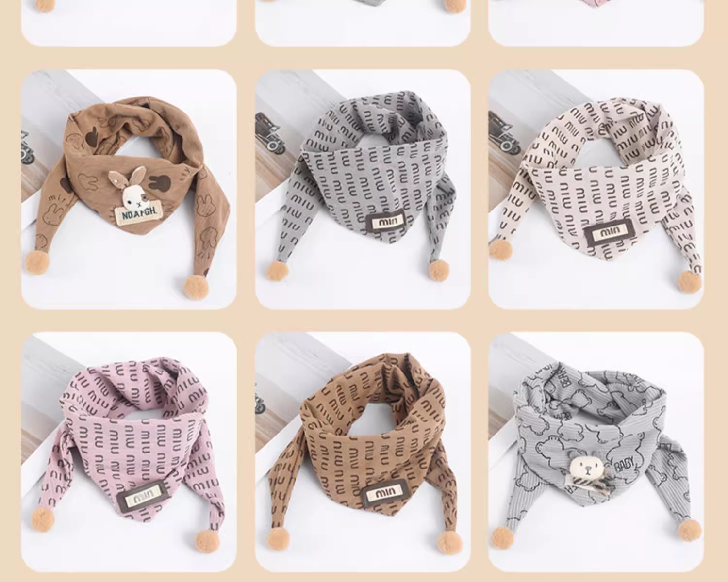• MIU 트라이앵글 스카프 - 베이지, 5개월~6세 권장