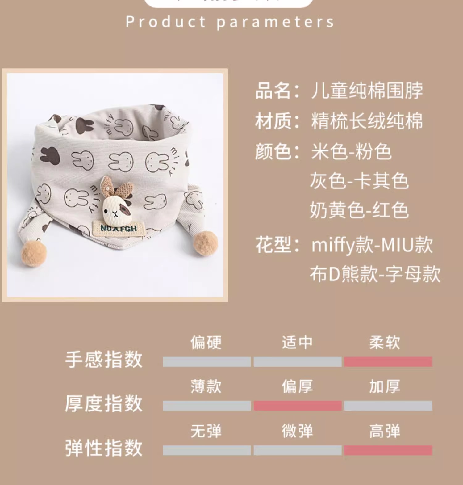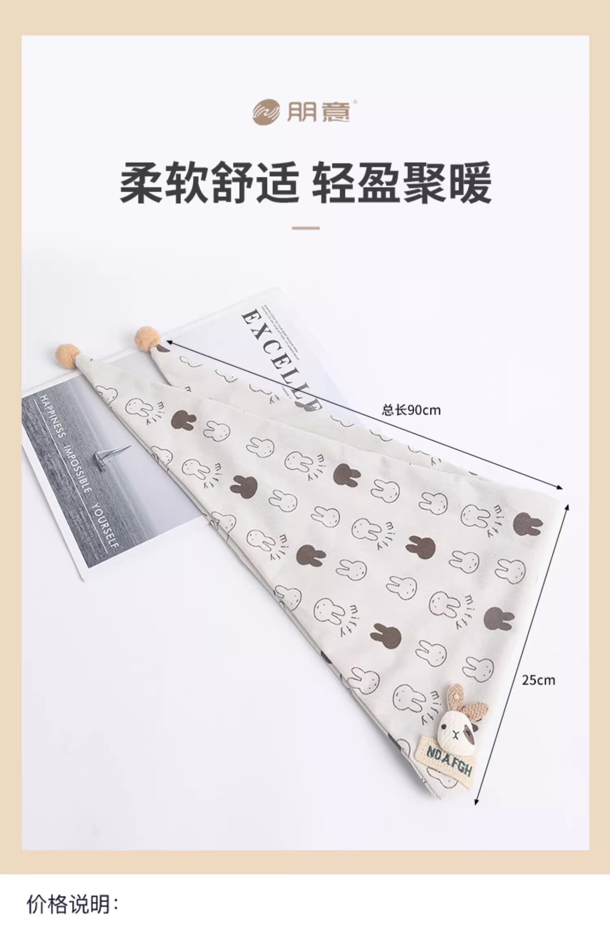 • 미피래빗 트라이앵글 스카프 - 베이지, 5개월~6세 권장