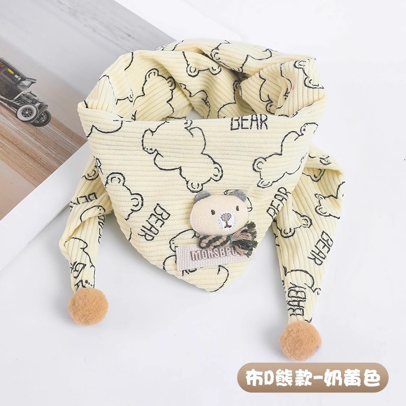 • 패브릭 D 베어 트라이앵글 스카프 - 크림 옐로우, 5개월 ~ 6세 권장