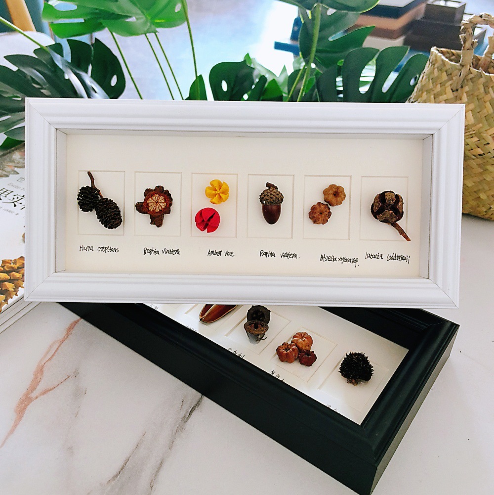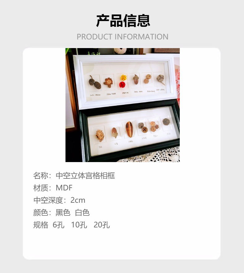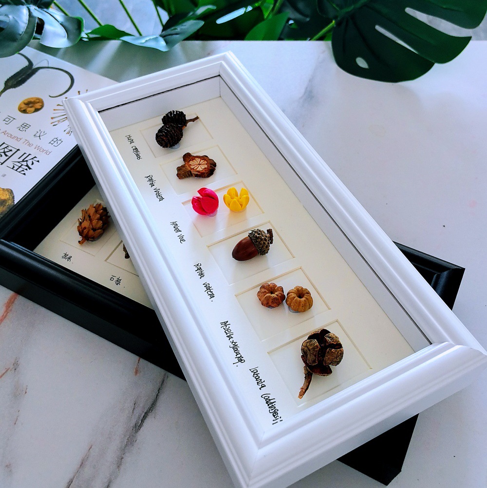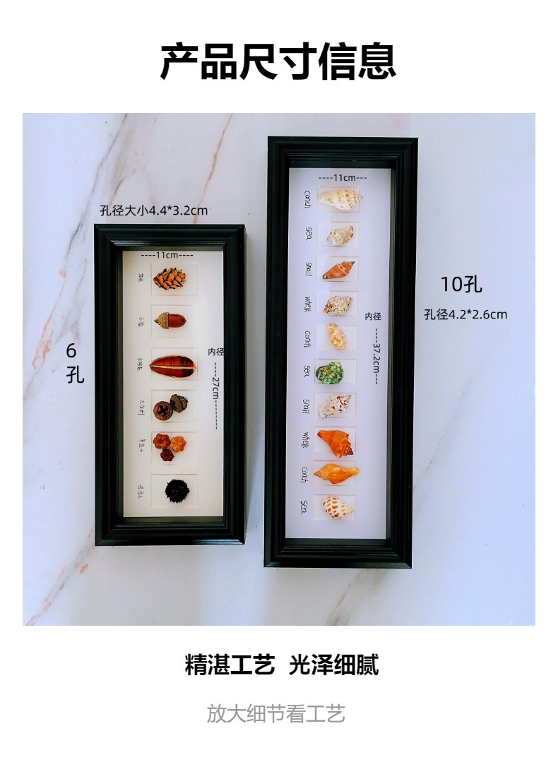 北欧木质相框手工DIY10宫格6孔贝壳昆虫植物果实标本中空摆台画框