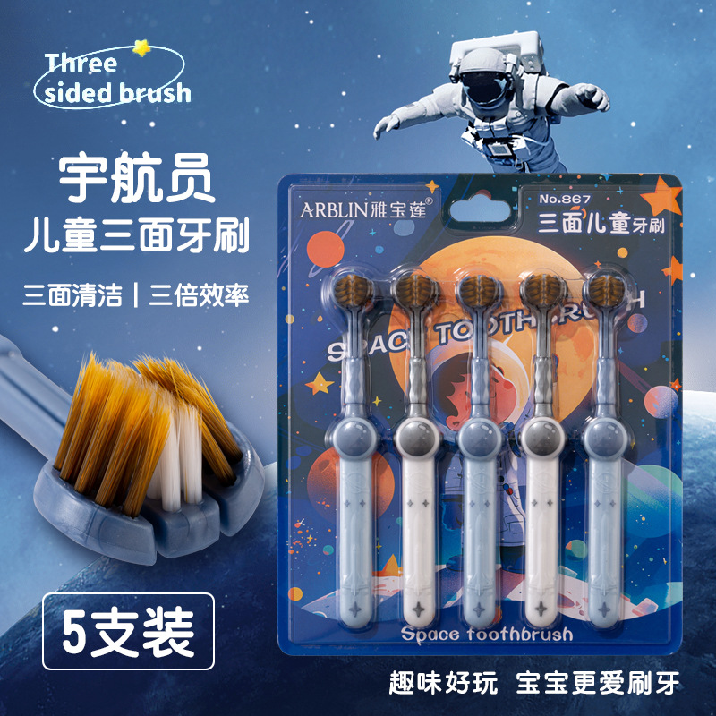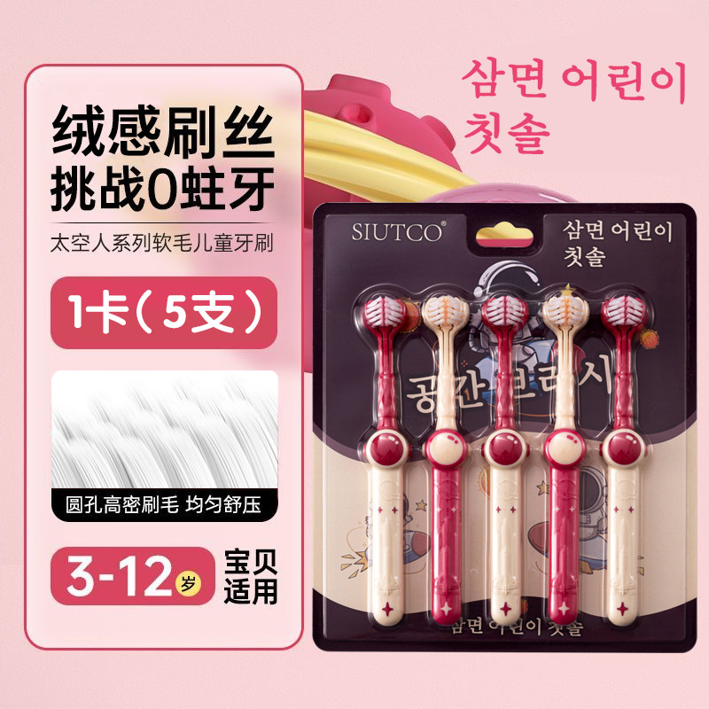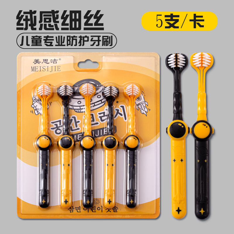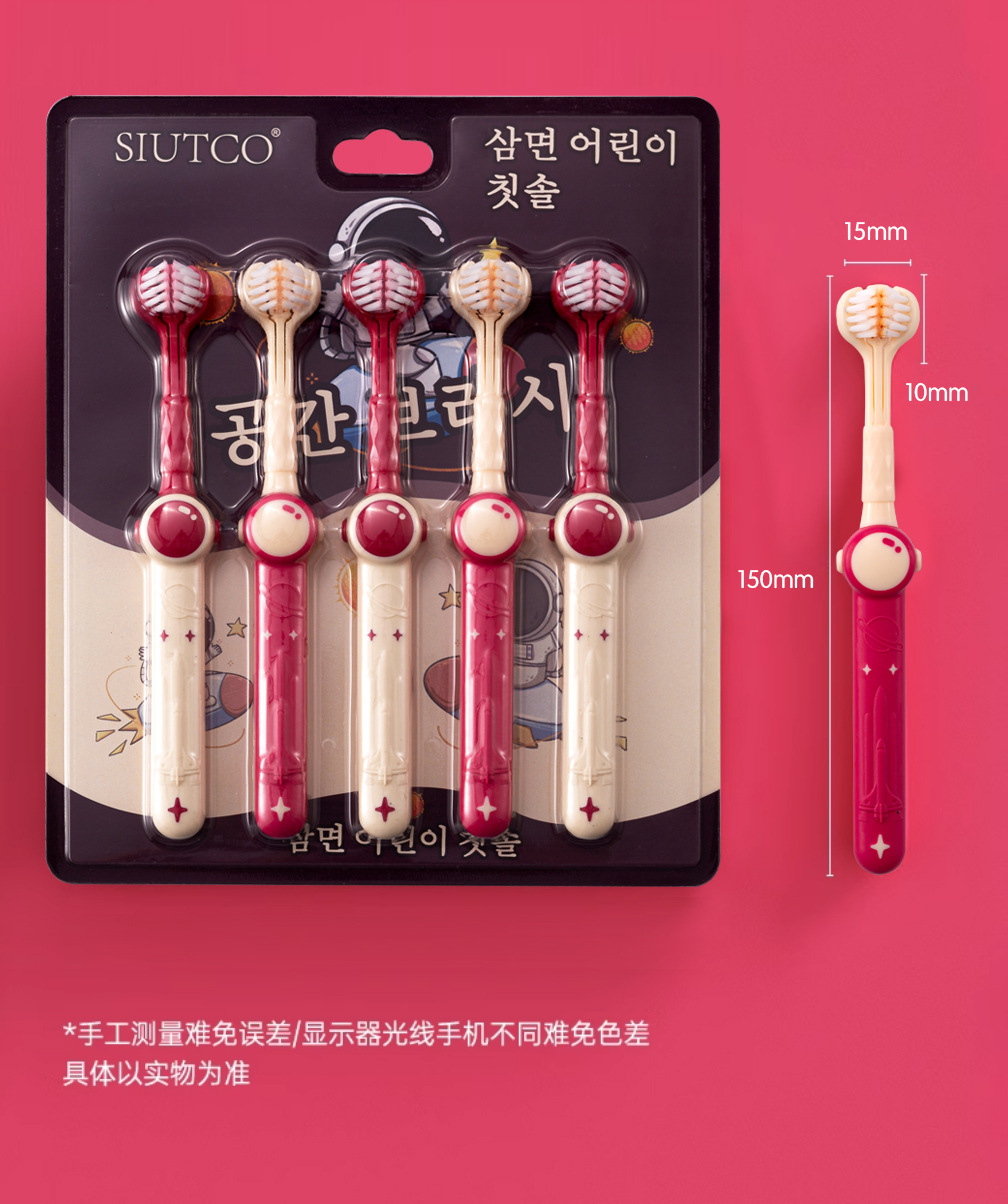 Shan Mu Ping 공간 어린이 3 면 칫솔 부드러운 헤어 가정용 교정 칫솔 도매 3-12 세 아기스토어 가기