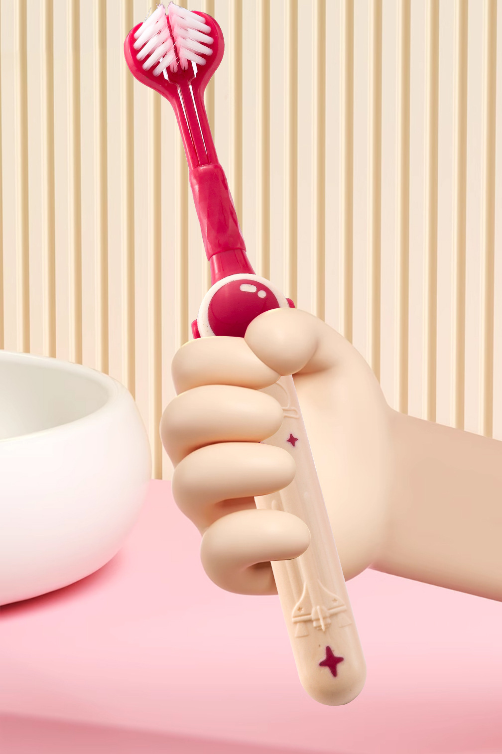 Shan Mu Ping 공간 어린이 3 면 칫솔 부드러운 헤어 가정용 교정 칫솔 도매 3-12 세 아기