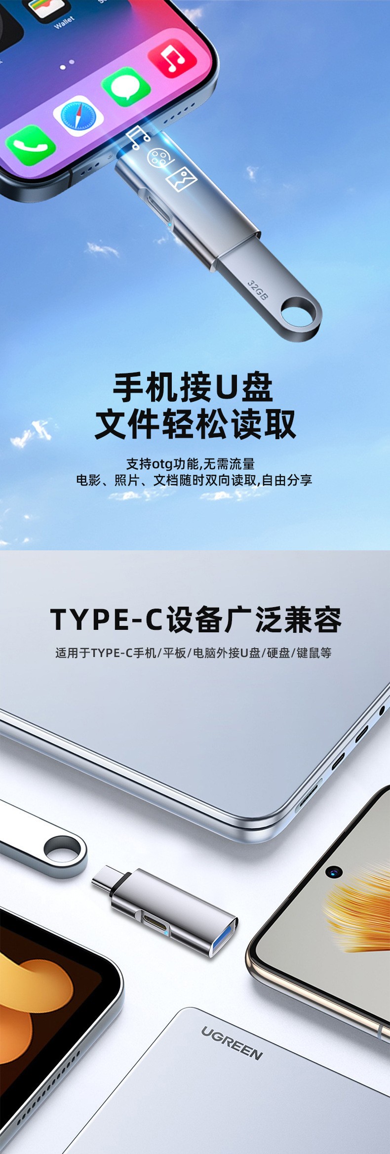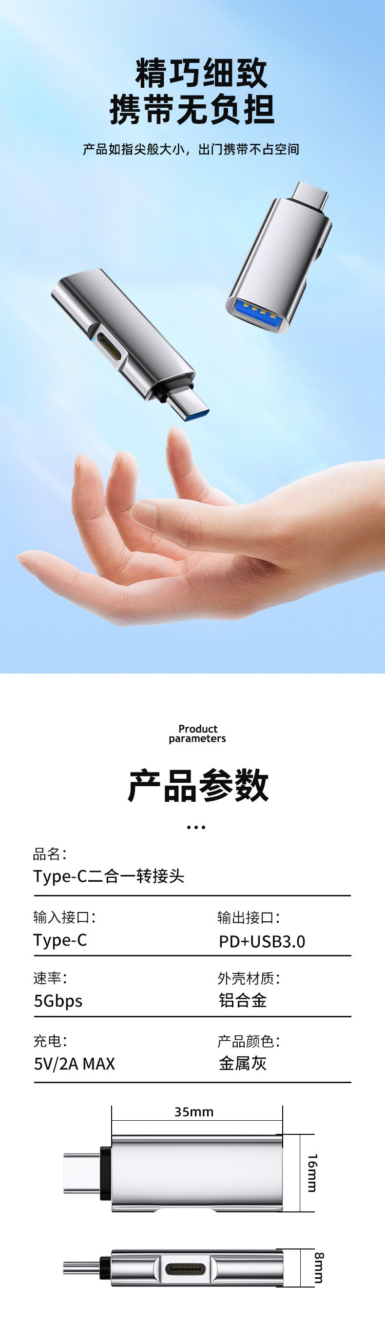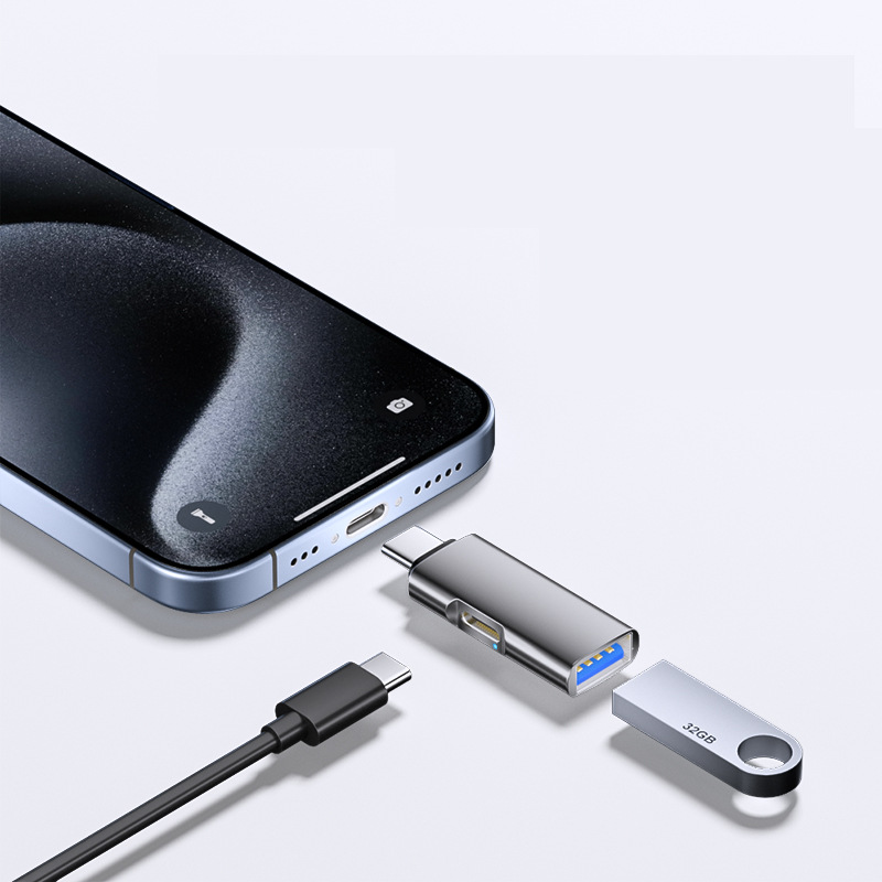• TYPE-C - USB3.0+t-c 충전 OTG 이중 목적 어댑터 타원형(알루미늄 합금 소재 회색)
