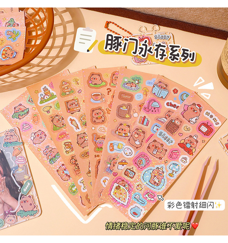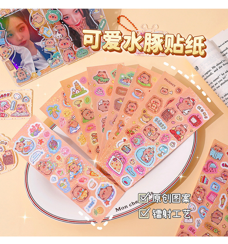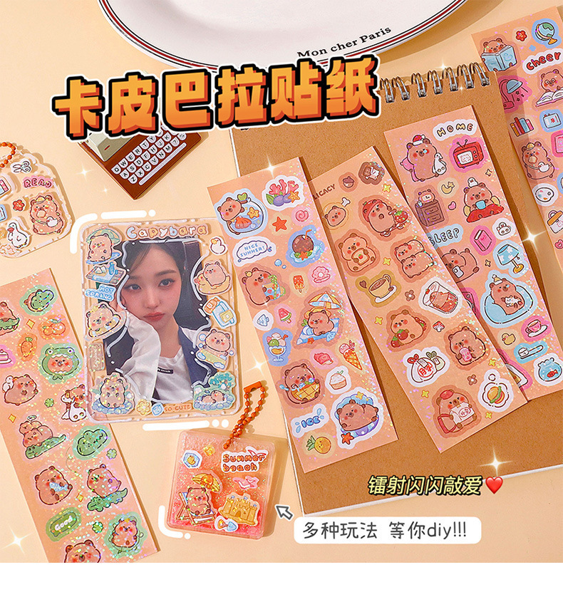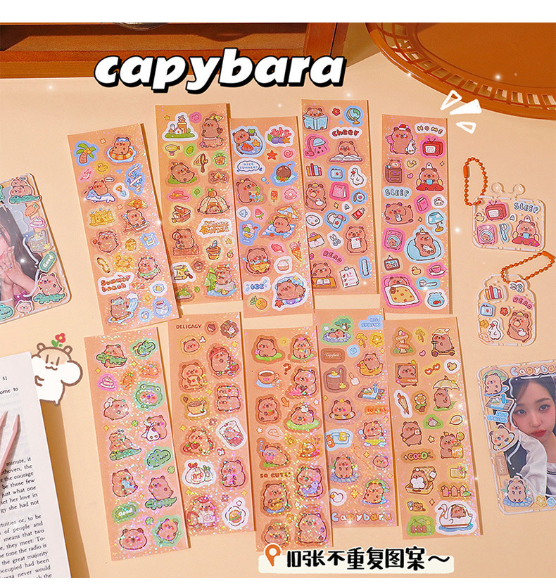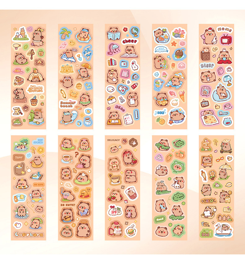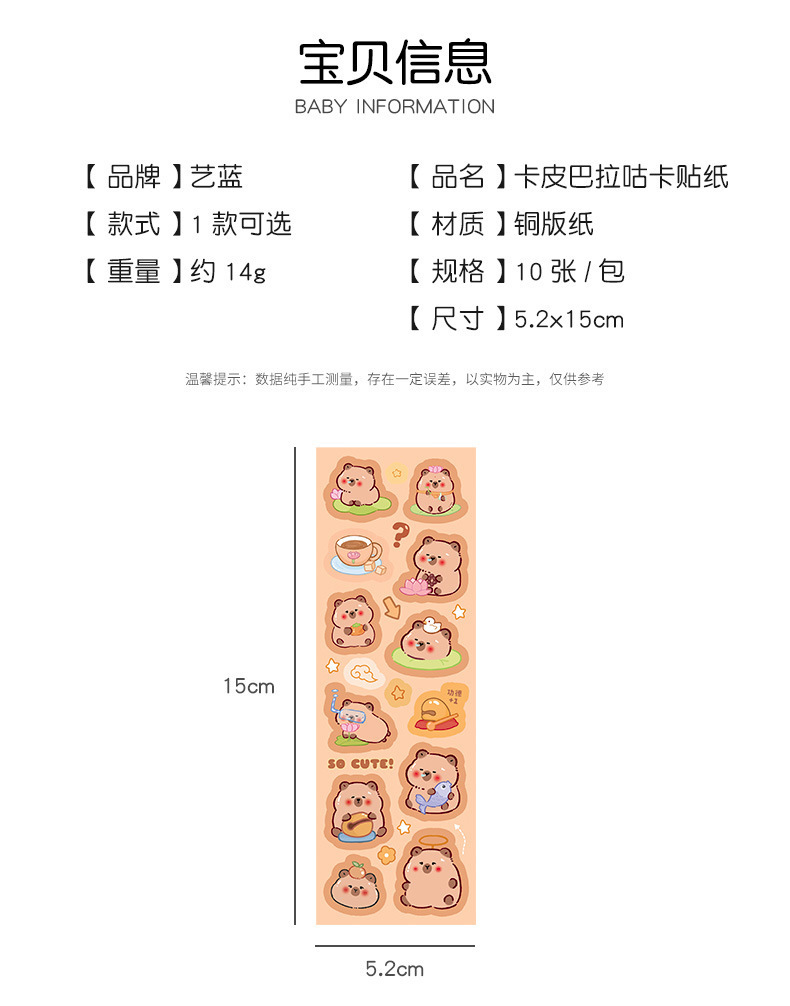 카피 발라 구 카드 스티커 귀여운 카피 바라 손 계정 스티커 어린이 DIY 스티커 애완 동물 방수 물 컵 스티커 도매