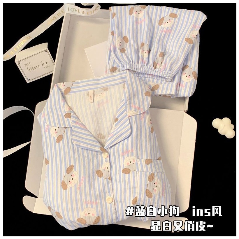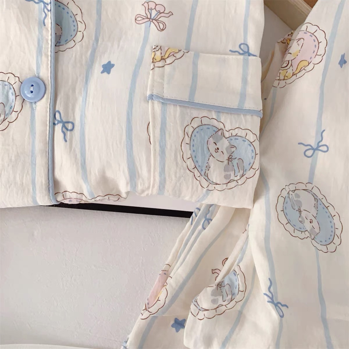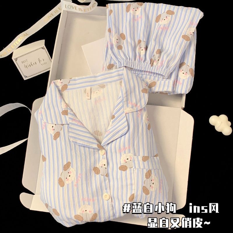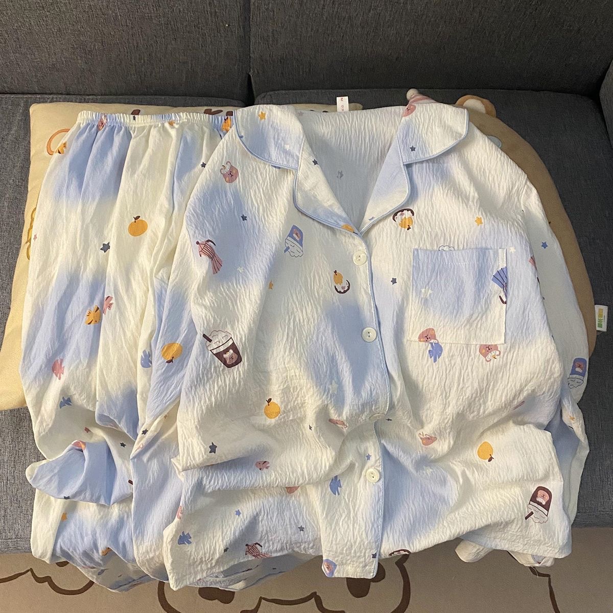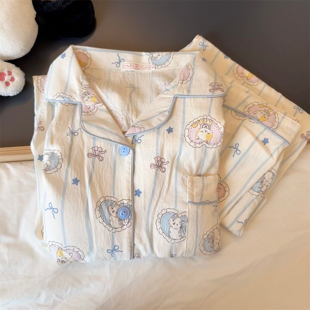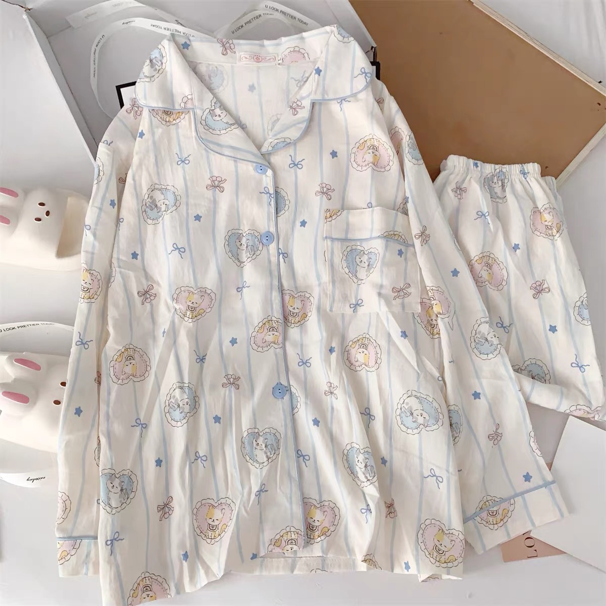 클라우드 코튼 파자마 여성용 긴팔 바지 봄과 가을 파란색과 흰색 케이크 달콤한 슈퍼 소프트 인터넷 인기 홈 의류 세트 아우터웨어스토어 가기