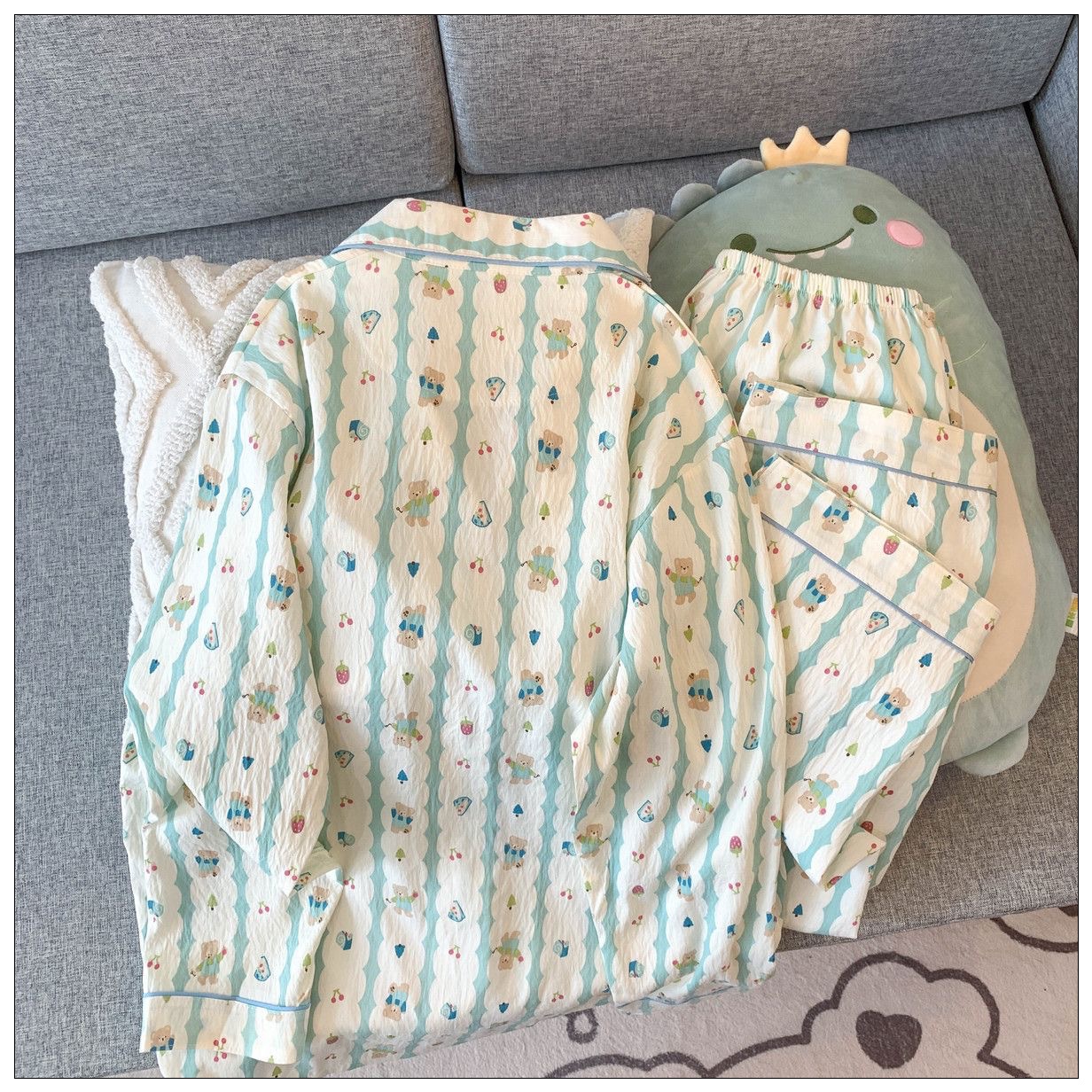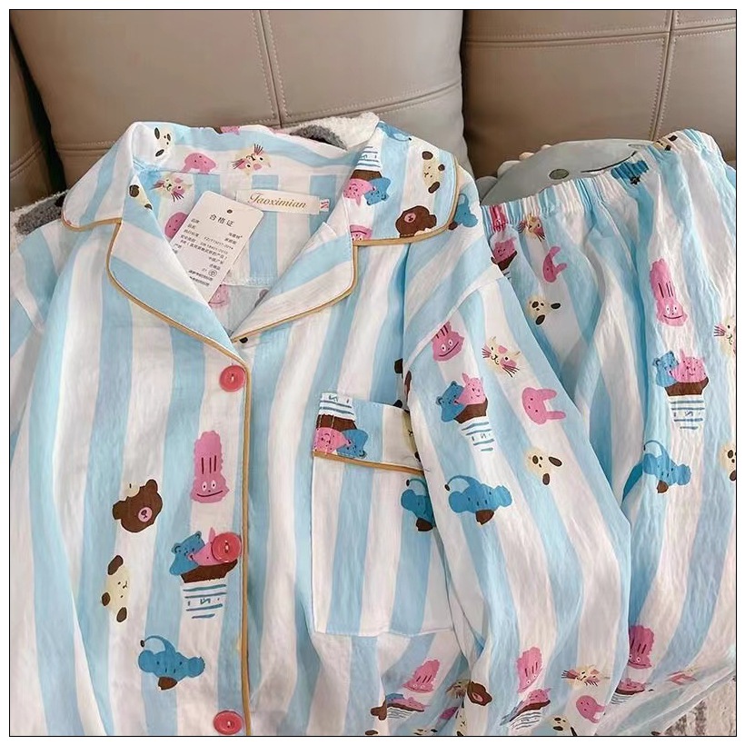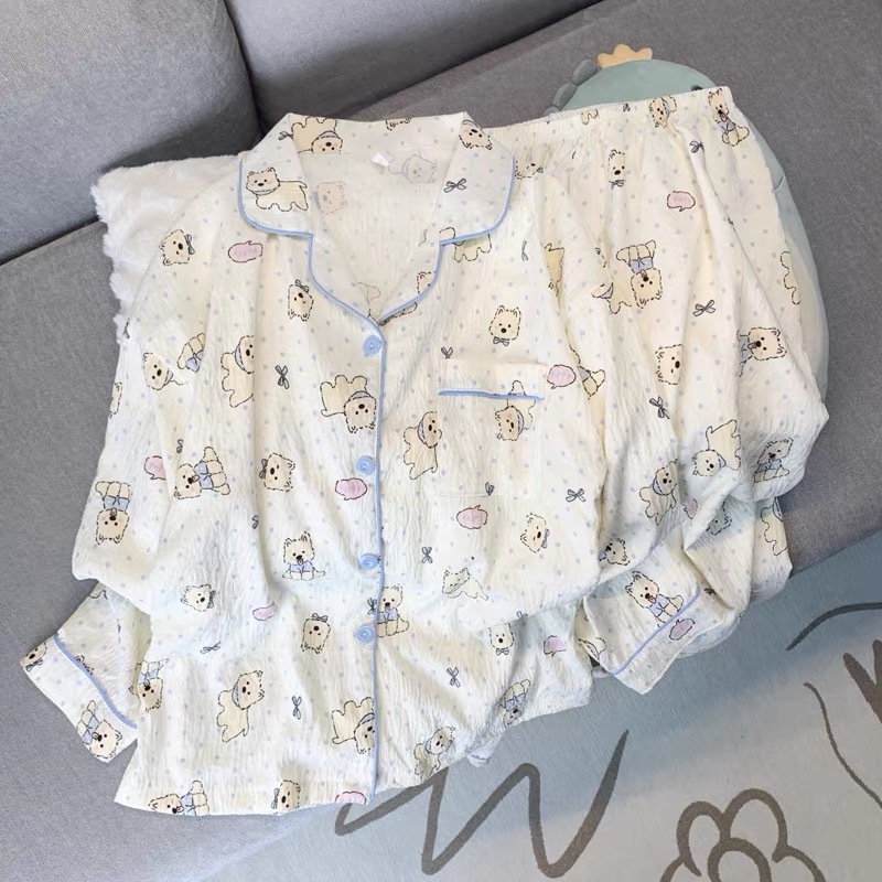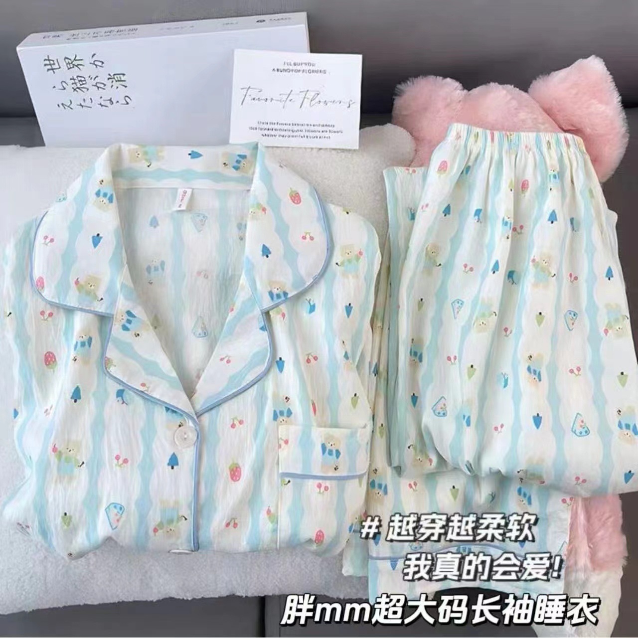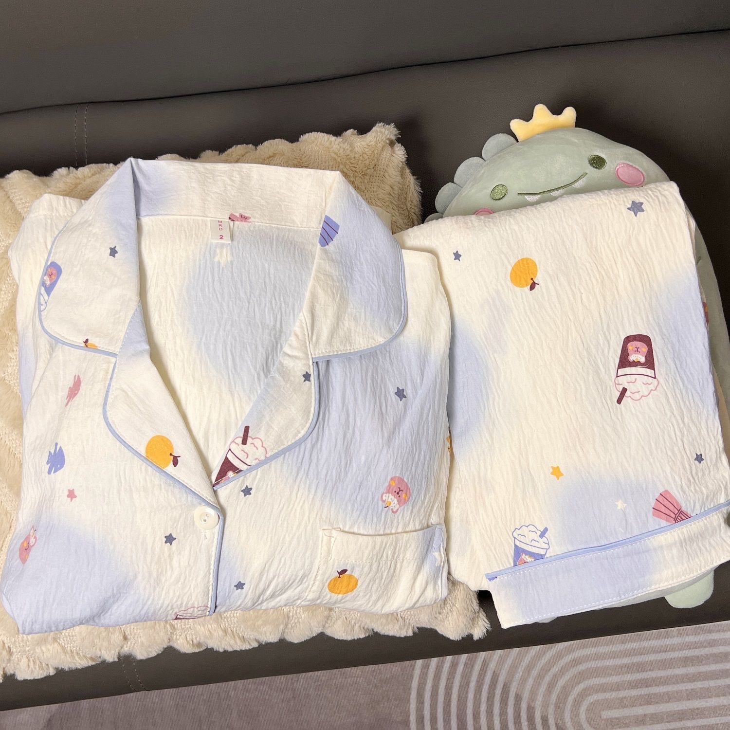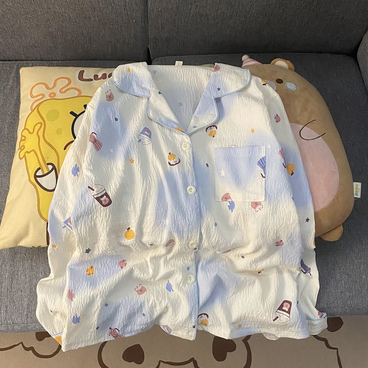 클라우드 코튼 파자마 여성용 긴팔 바지 봄과 가을 파란색과 흰색 케이크 달콤한 슈퍼 소프트 인터넷 인기 홈 의류 세트 아우터웨어스토어 가기