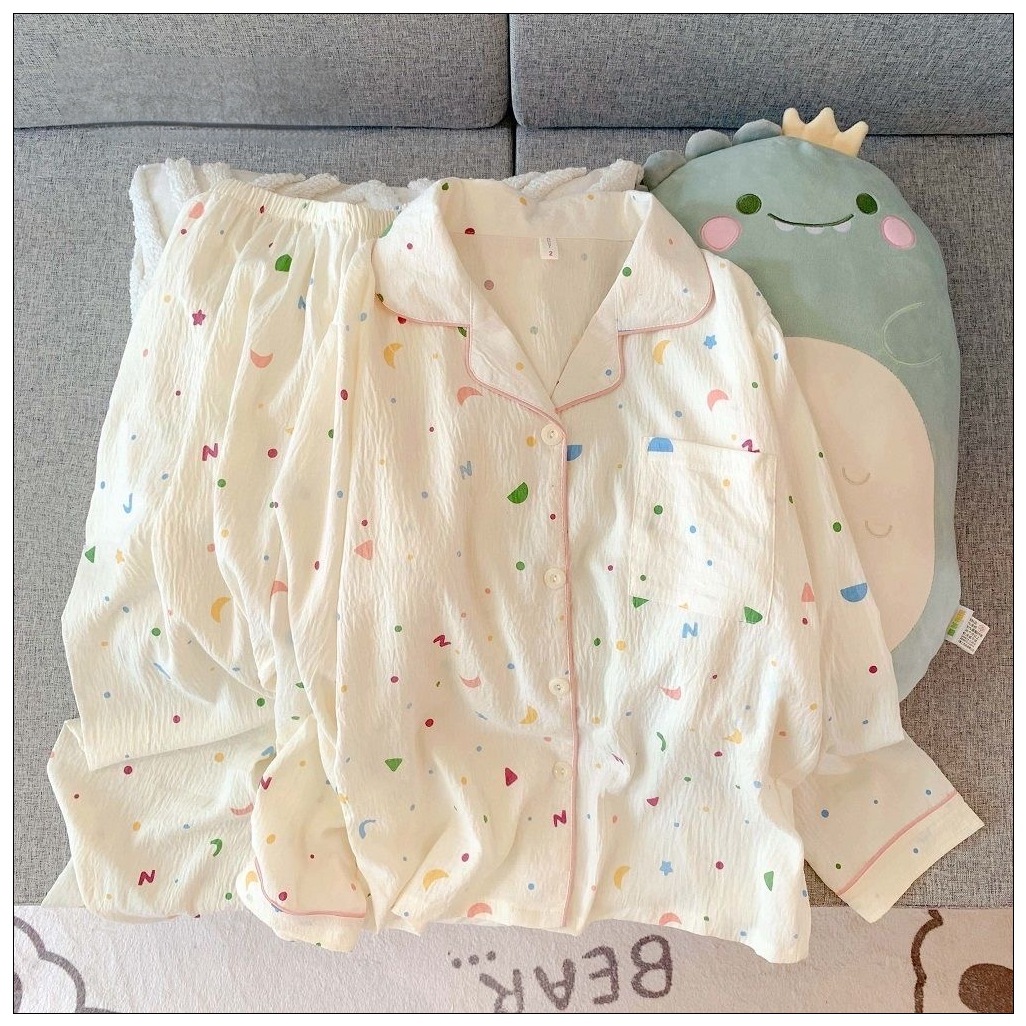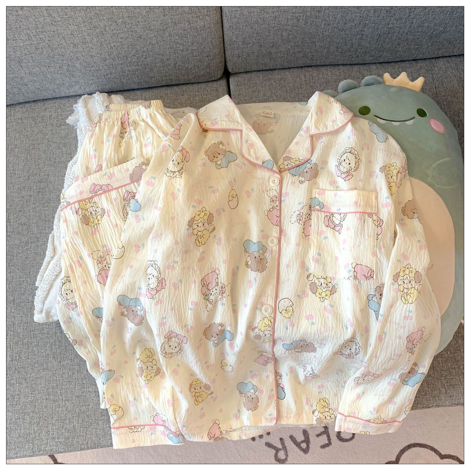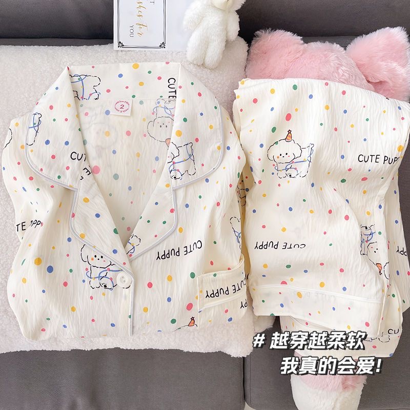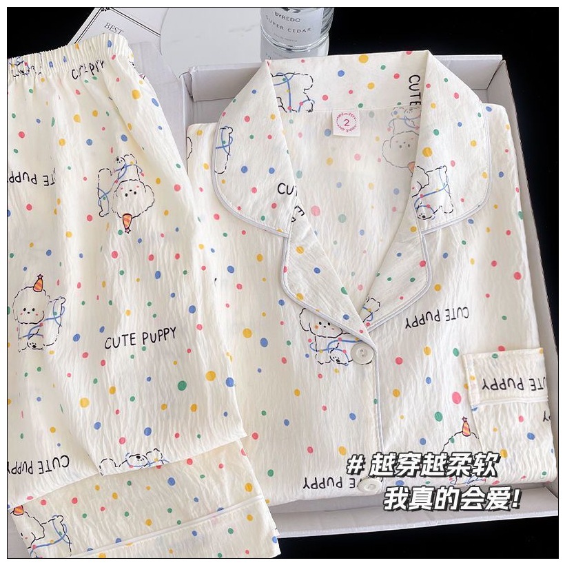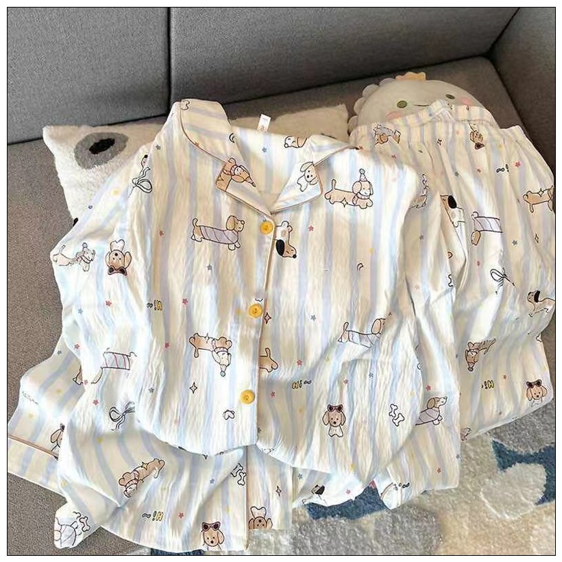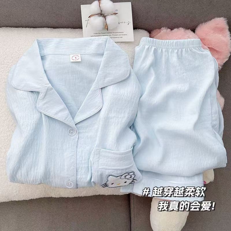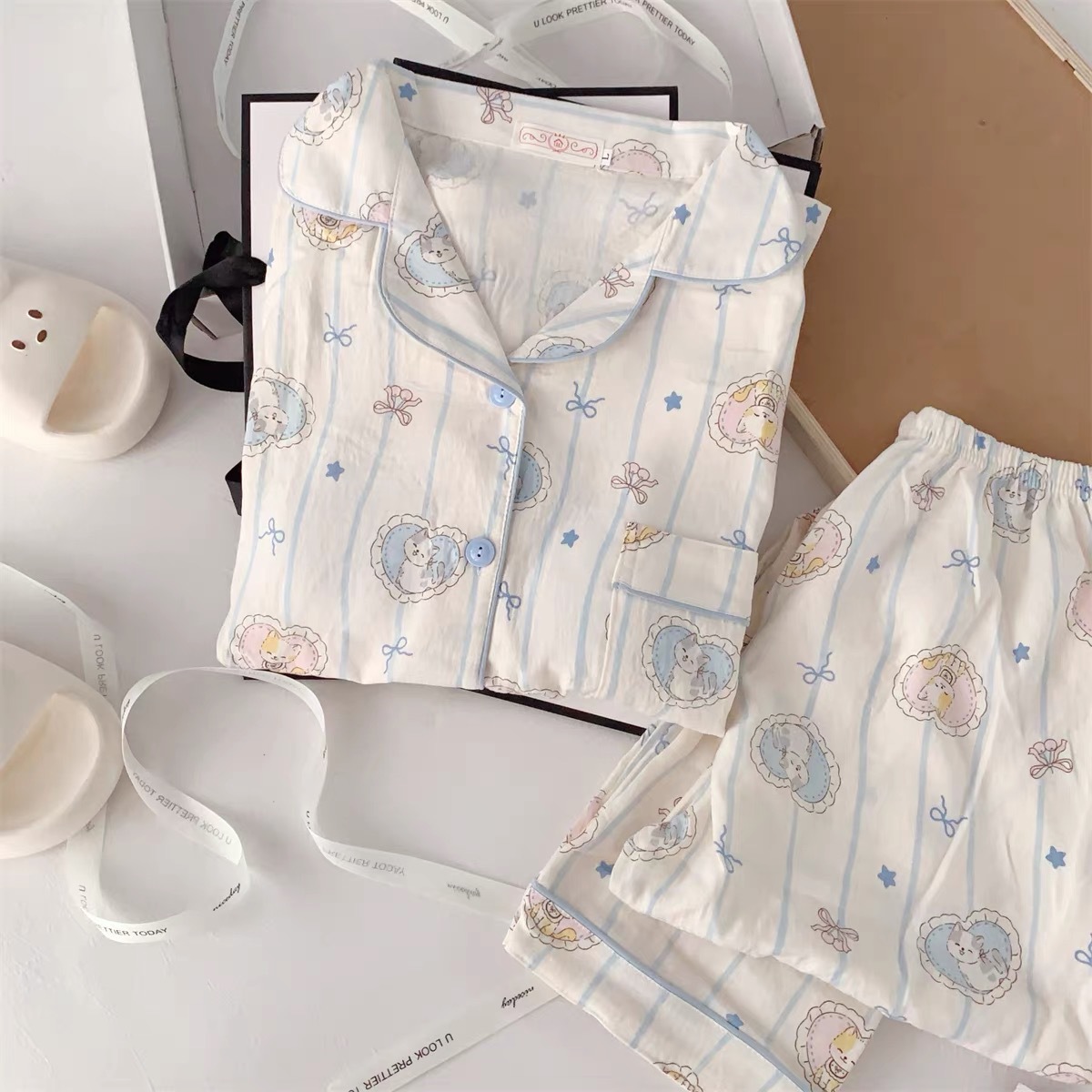 클라우드 코튼 파자마 여성용 긴팔 바지 봄과 가을 파란색과 흰색 케이크 달콤한 슈퍼 소프트 인터넷 인기 홈 의류 세트 아우터웨어스토어 가기