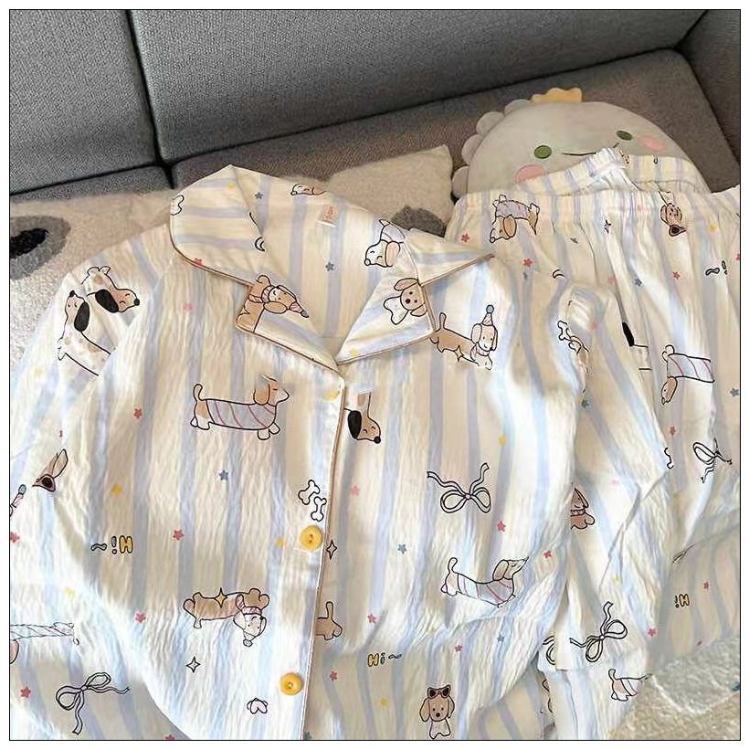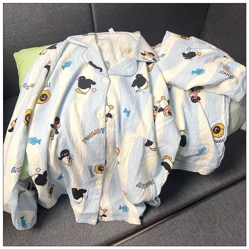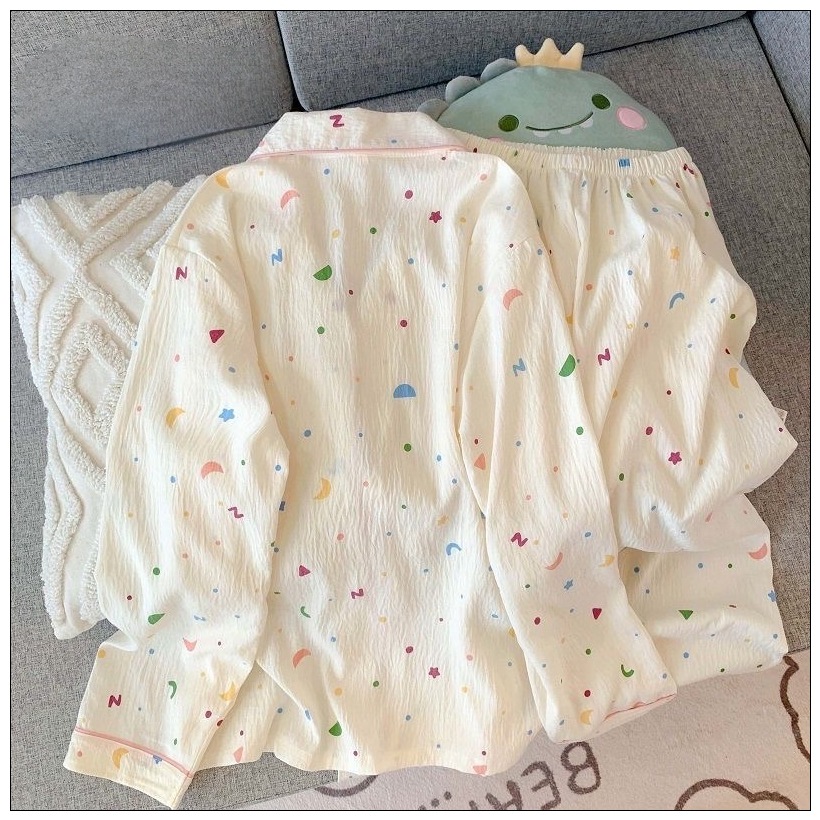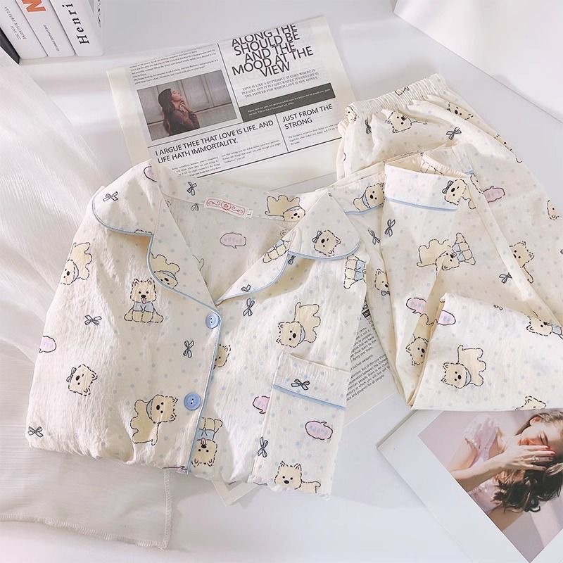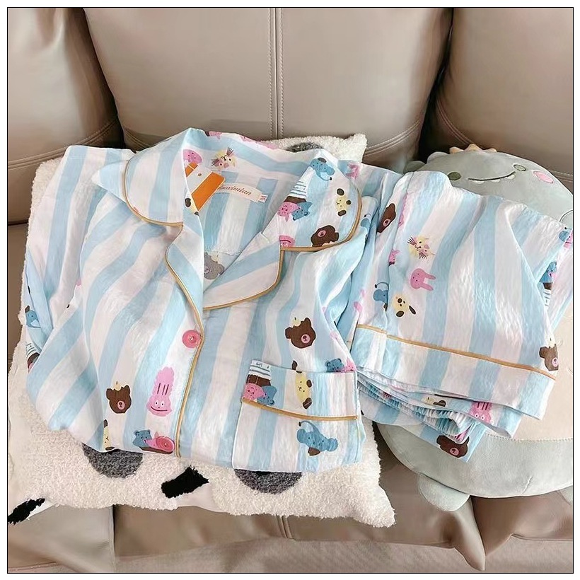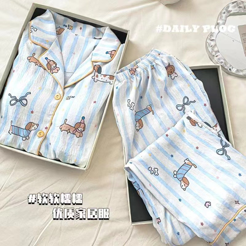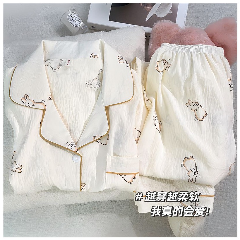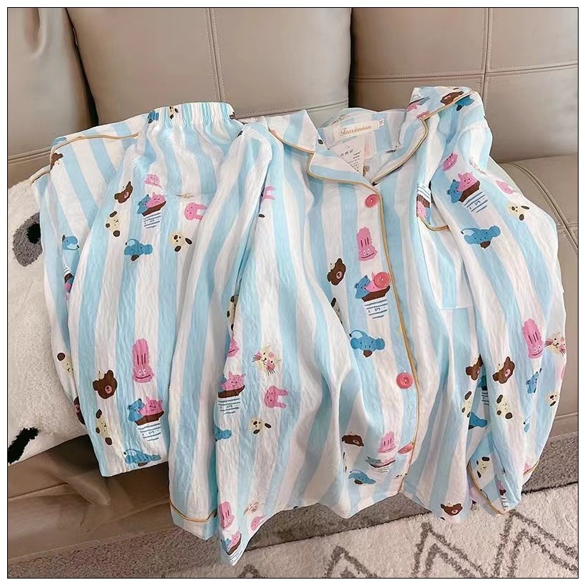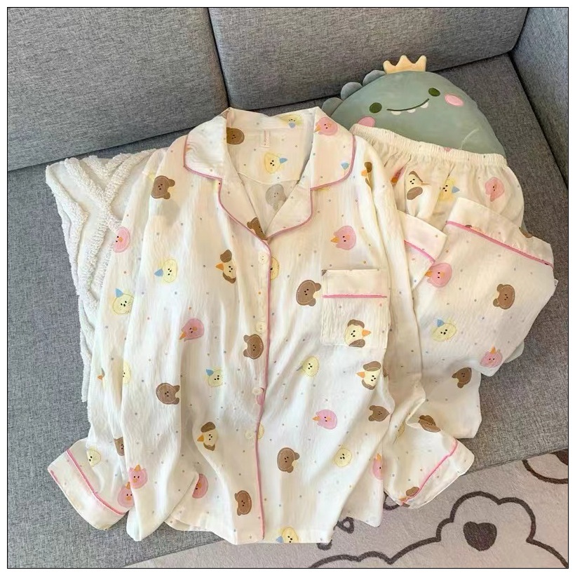 클라우드 코튼 파자마 여성용 긴팔 바지 봄과 가을 파란색과 흰색 케이크 달콤한 슈퍼 소프트 인터넷 인기 홈 의류 세트 아우터웨어스토어 가기