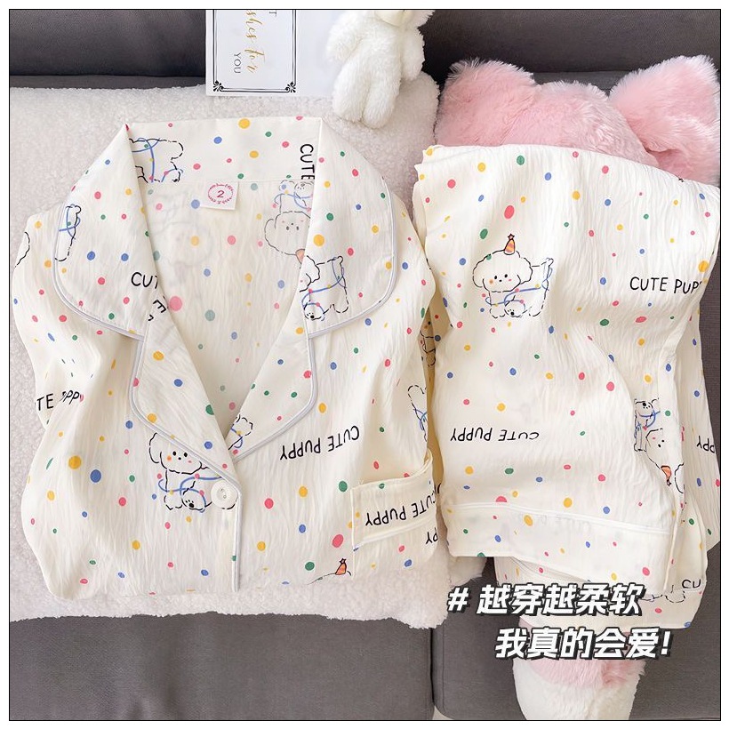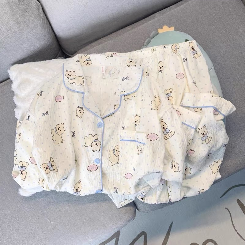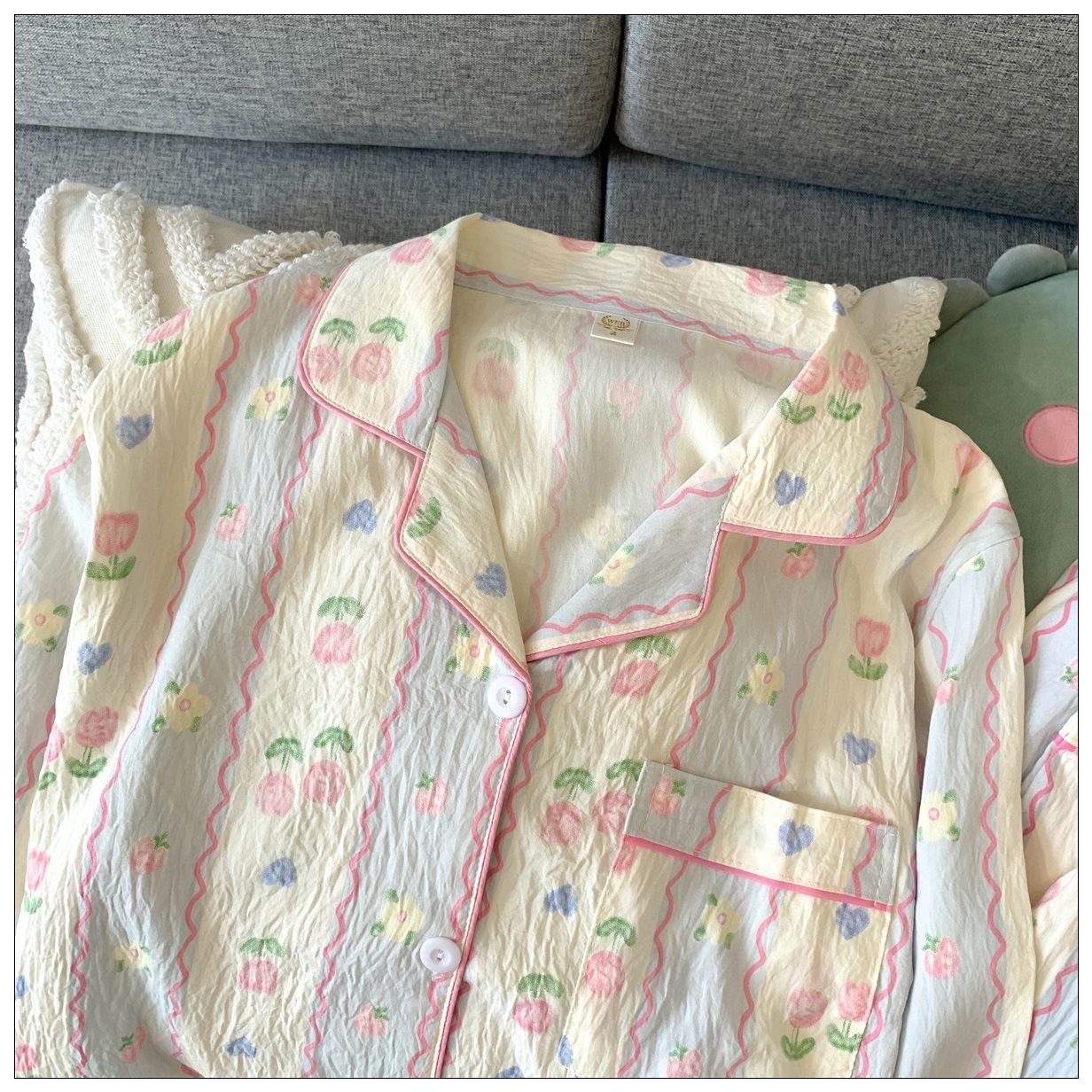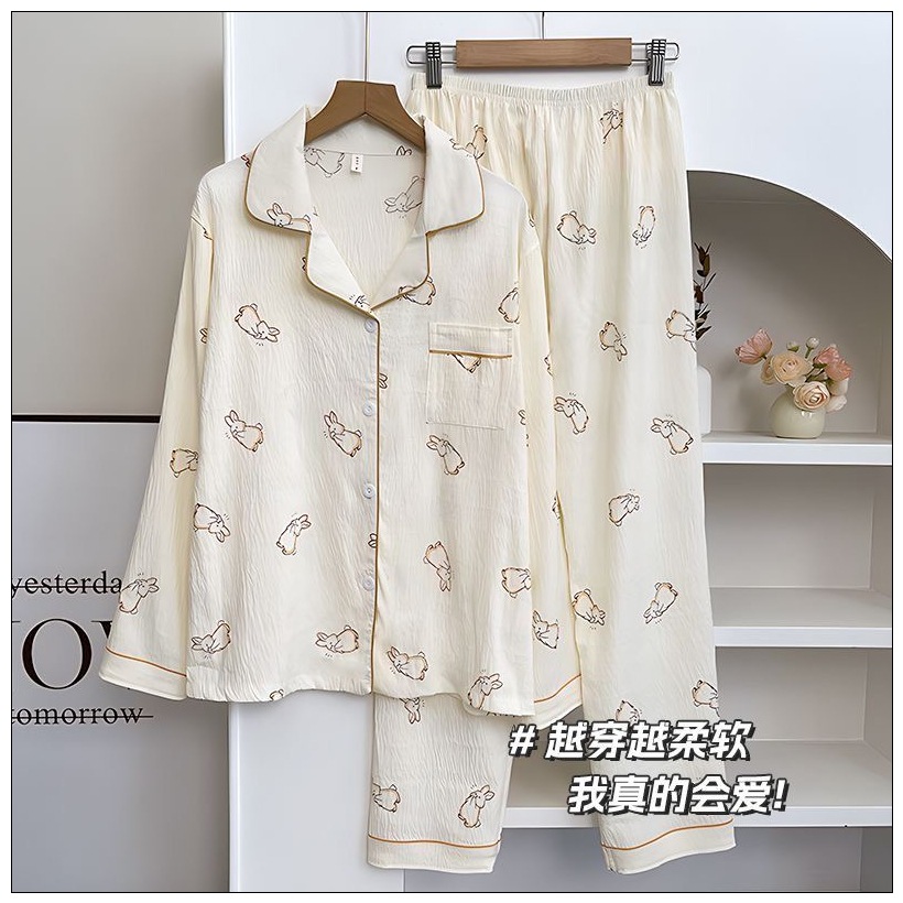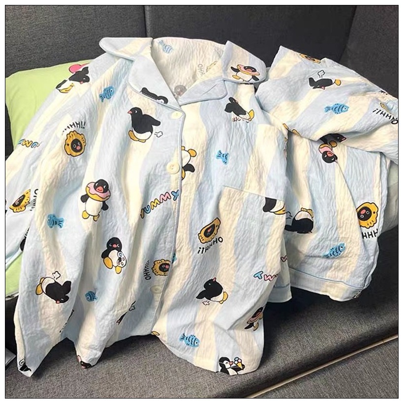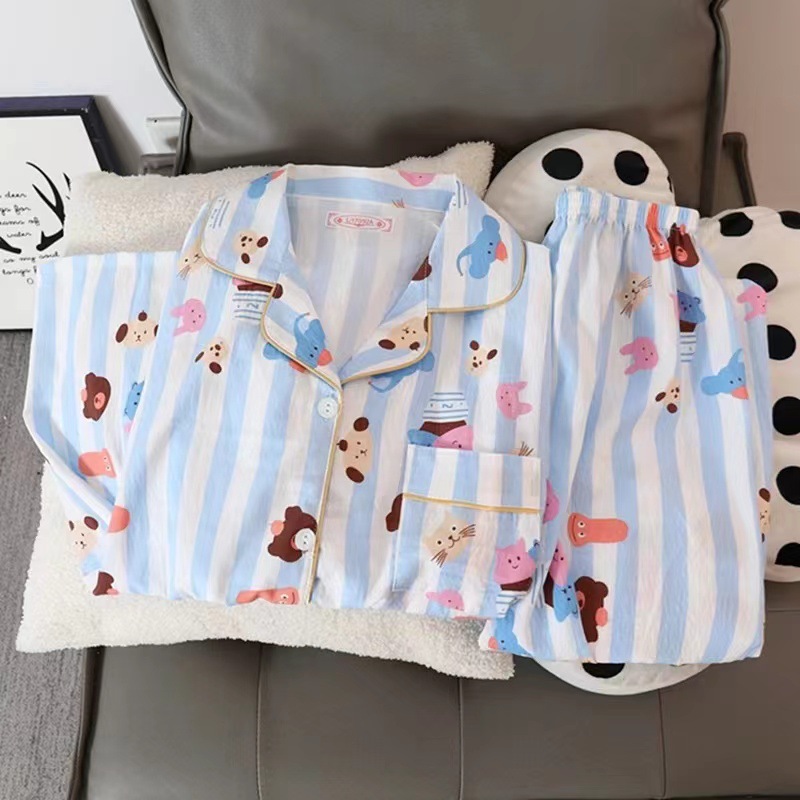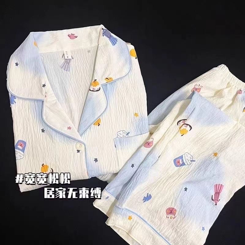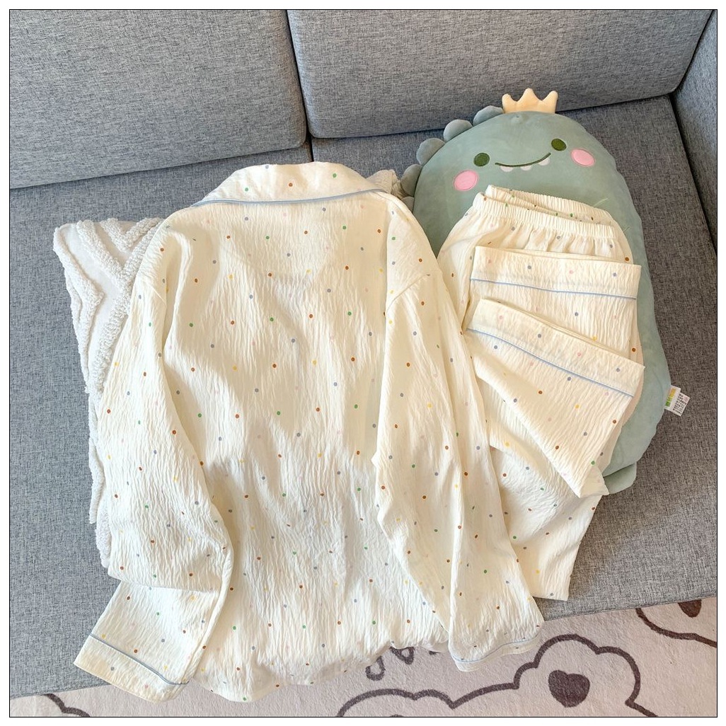 클라우드 코튼 파자마 여성용 긴팔 바지 봄과 가을 파란색과 흰색 케이크 달콤한 슈퍼 소프트 인터넷 인기 홈 의류 세트 아우터웨어스토어 가기