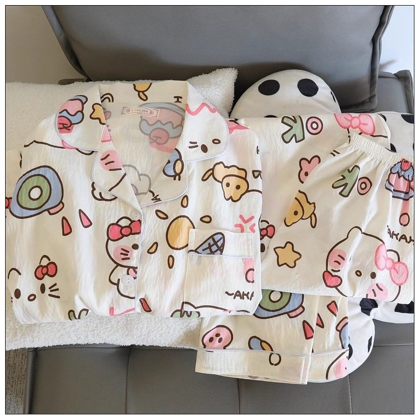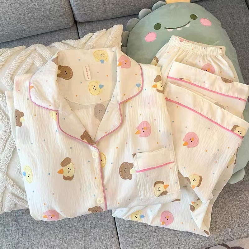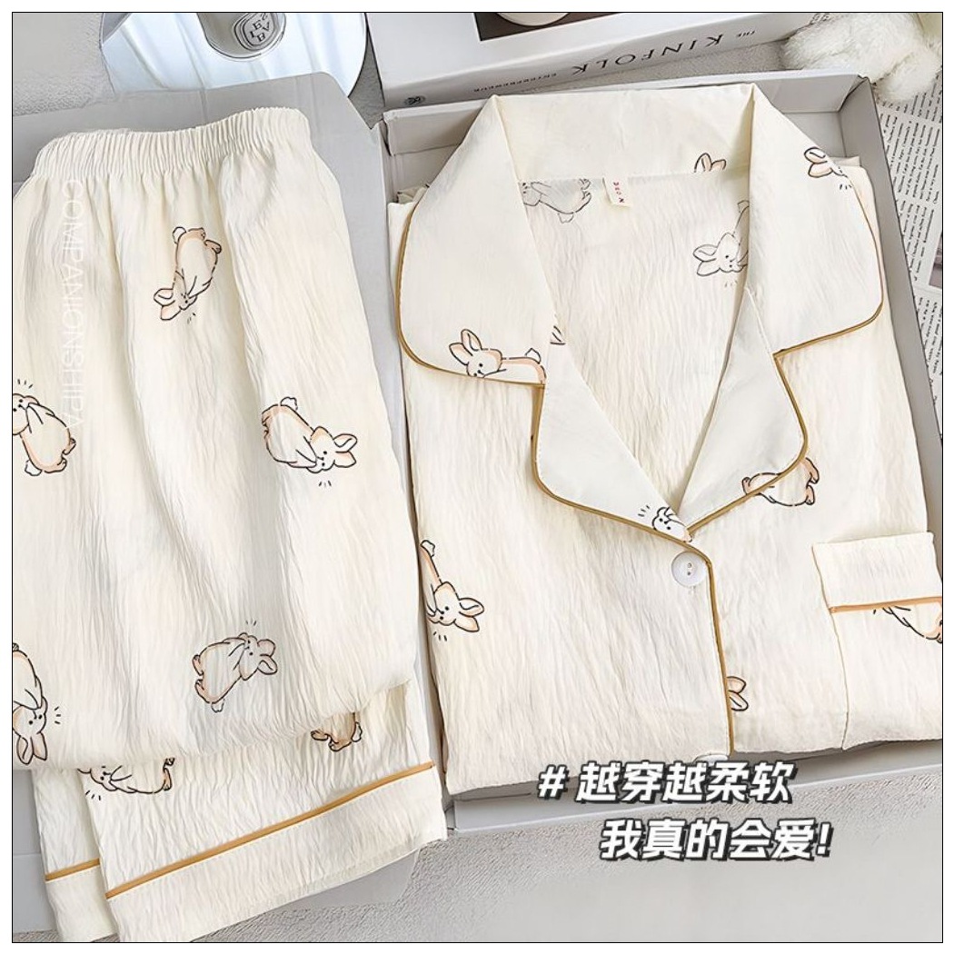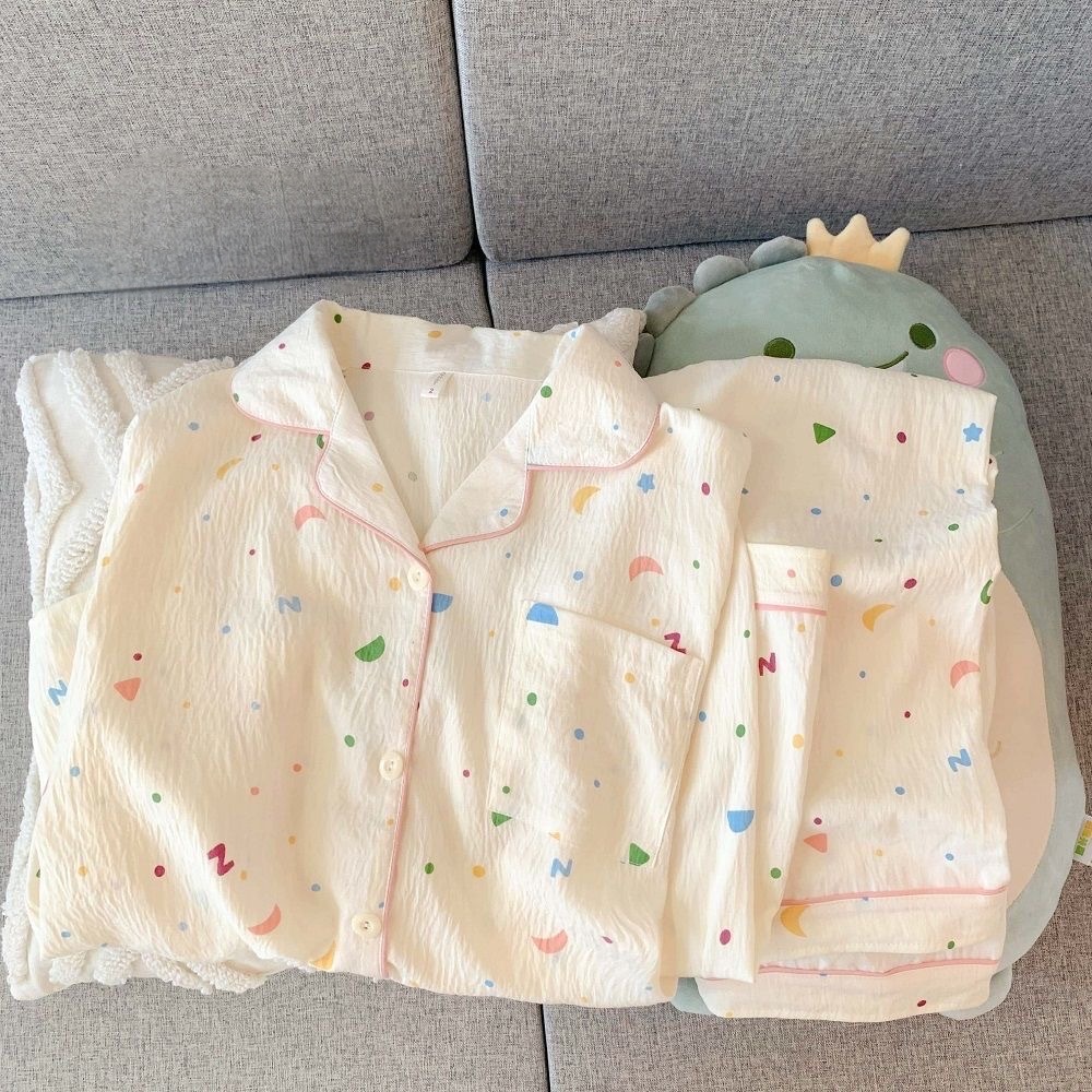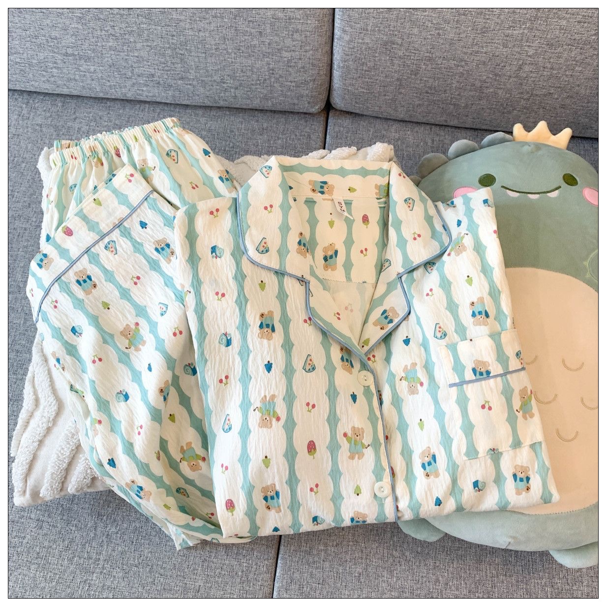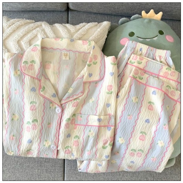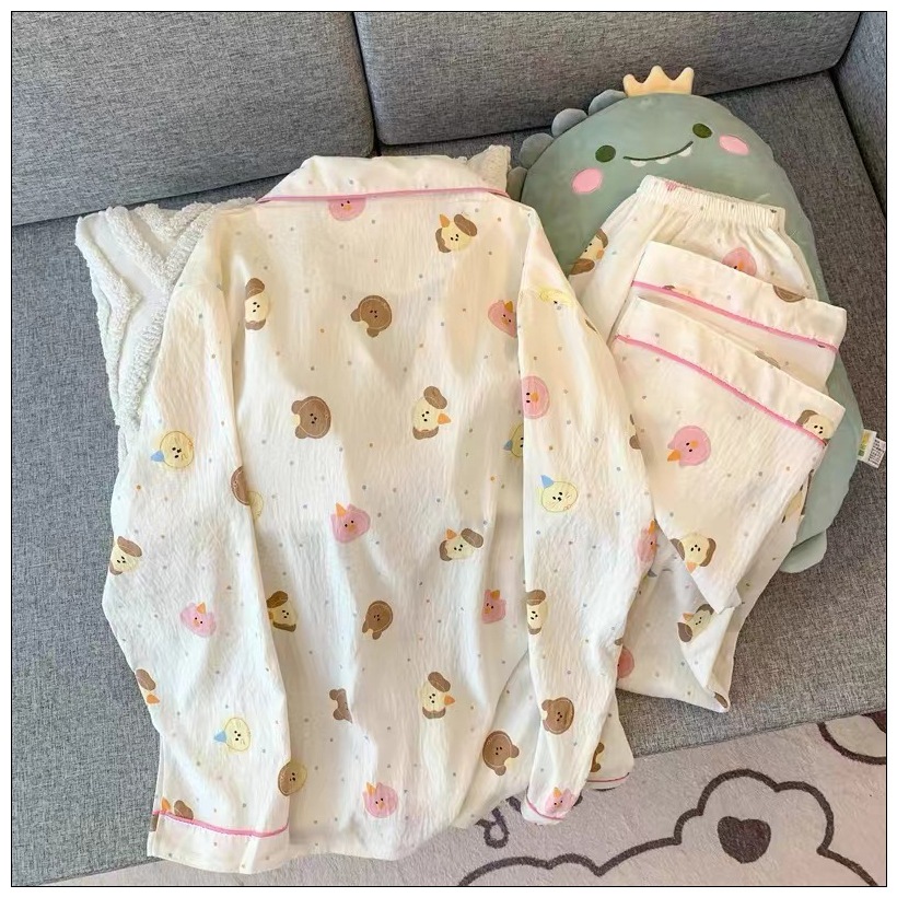 클라우드 코튼 파자마 여성용 긴팔 바지 봄과 가을 파란색과 흰색 케이크 달콤한 슈퍼 소프트 인터넷 인기 홈 의류 세트 아우터웨어스토어 가기