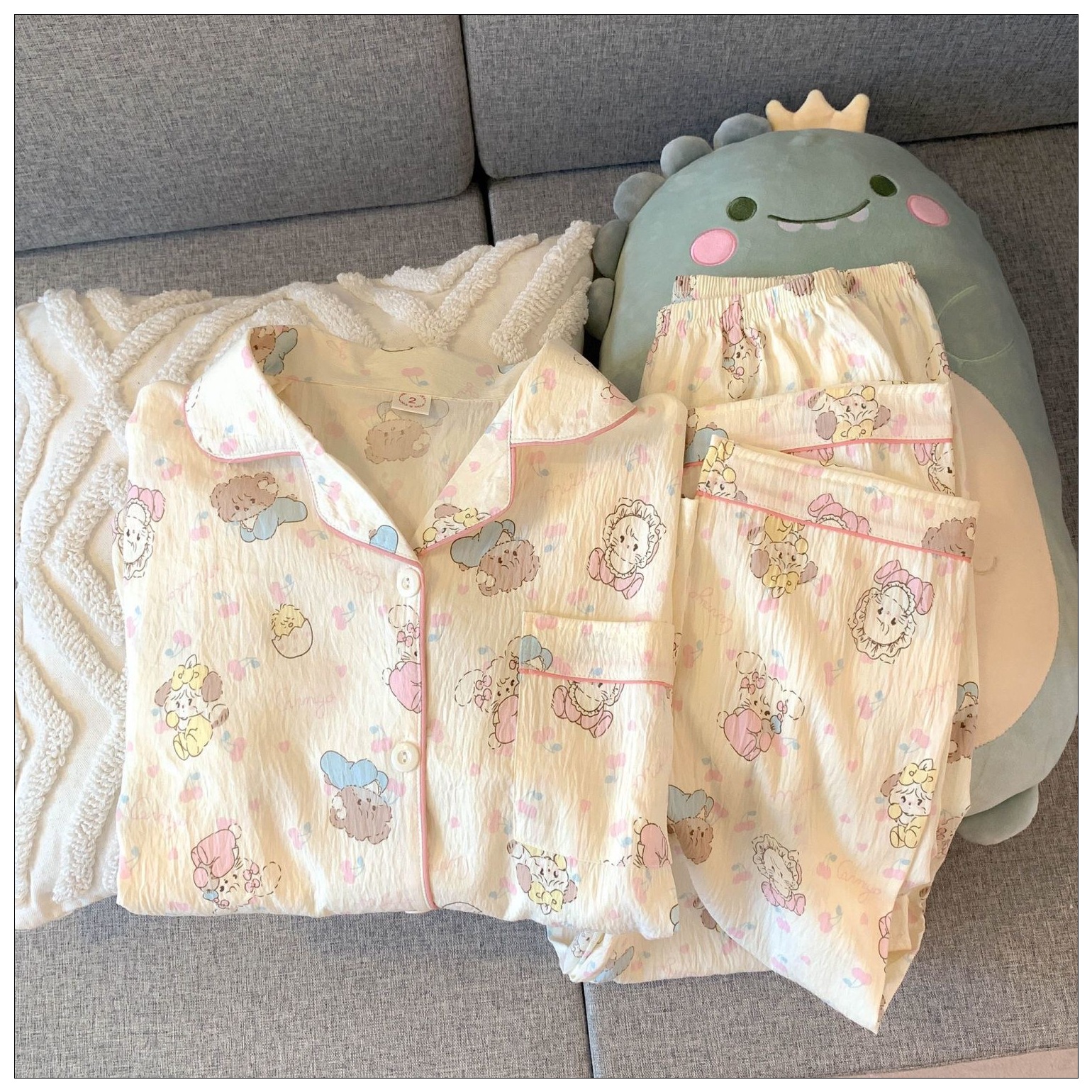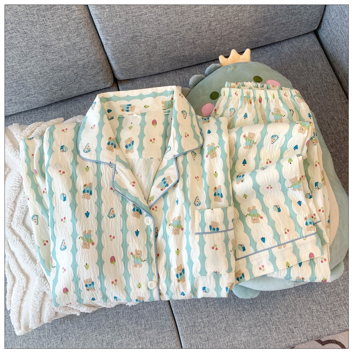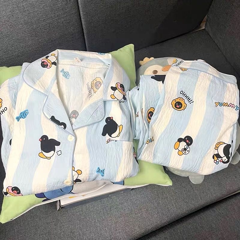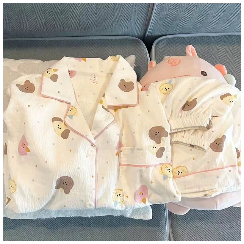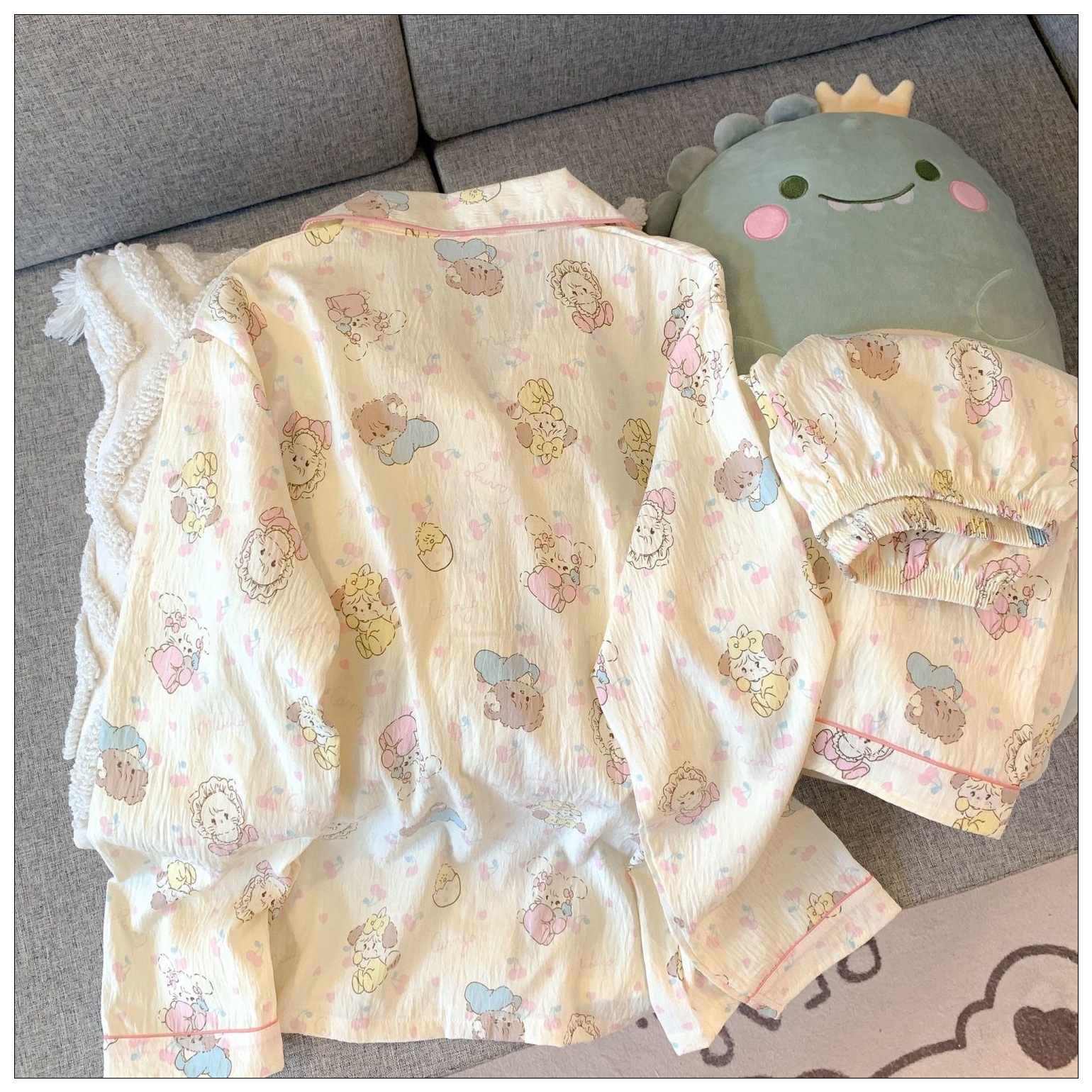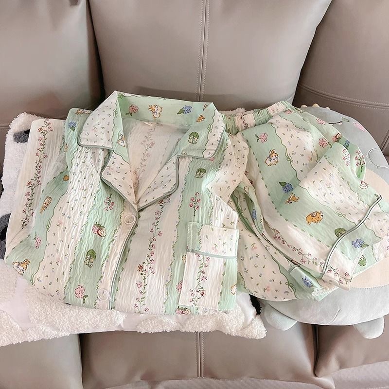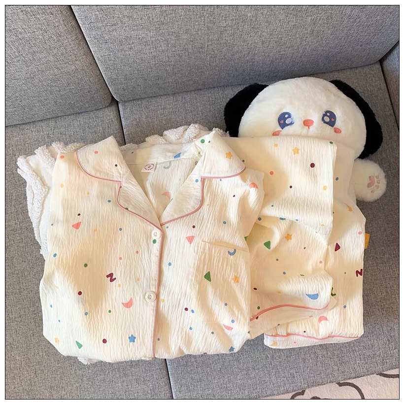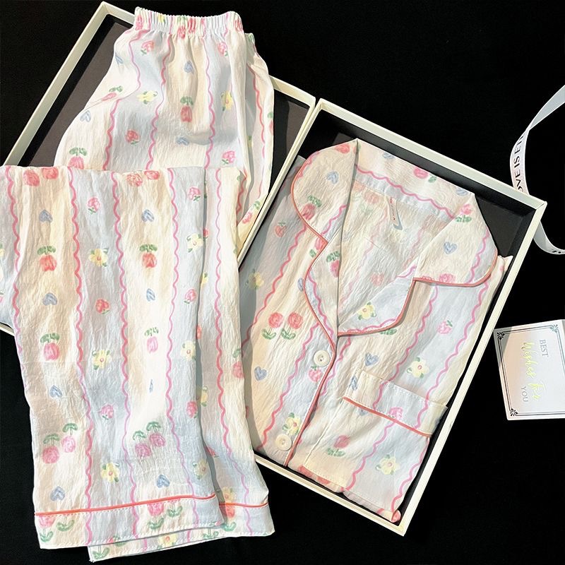 클라우드 코튼 파자마 여성용 긴팔 바지 봄과 가을 파란색과 흰색 케이크 달콤한 슈퍼 소프트 인터넷 인기 홈 의류 세트 아우터웨어스토어 가기
