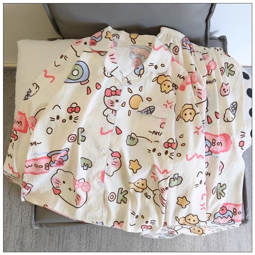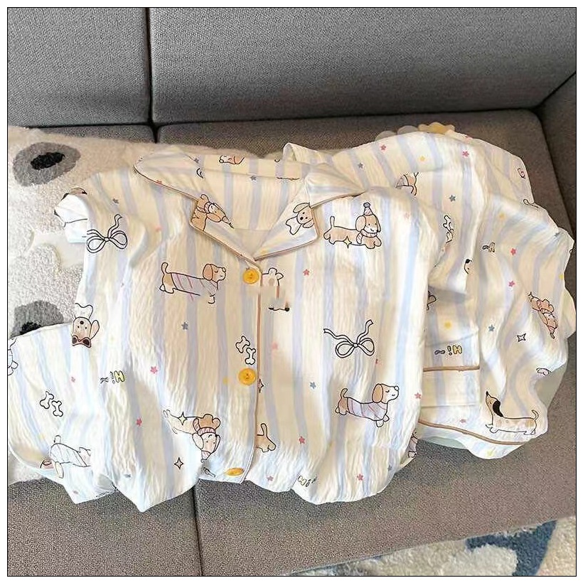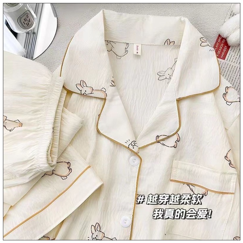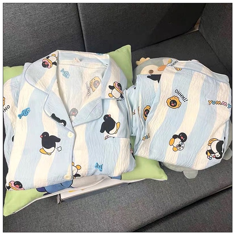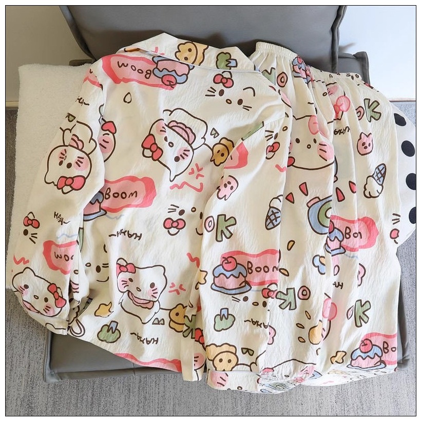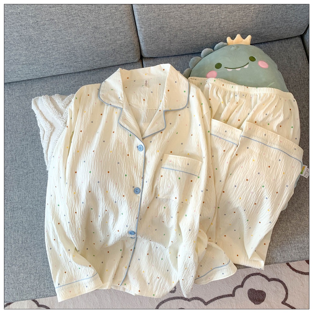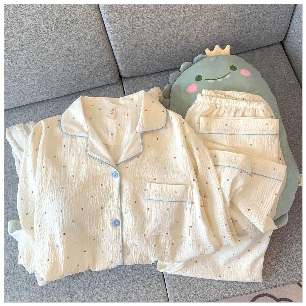 클라우드 코튼 파자마 여성용 긴팔 바지 봄과 가을 파란색과 흰색 케이크 달콤한 슈퍼 소프트 인터넷 인기 홈 의류 세트 아우터웨어스토어 가기