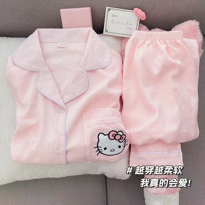 클라우드 코튼 파자마 여성용 긴팔 바지 봄과 가을 파란색과 흰색 케이크 달콤한 슈퍼 소프트 인터넷 인기 홈 의류 세트 아우터웨어