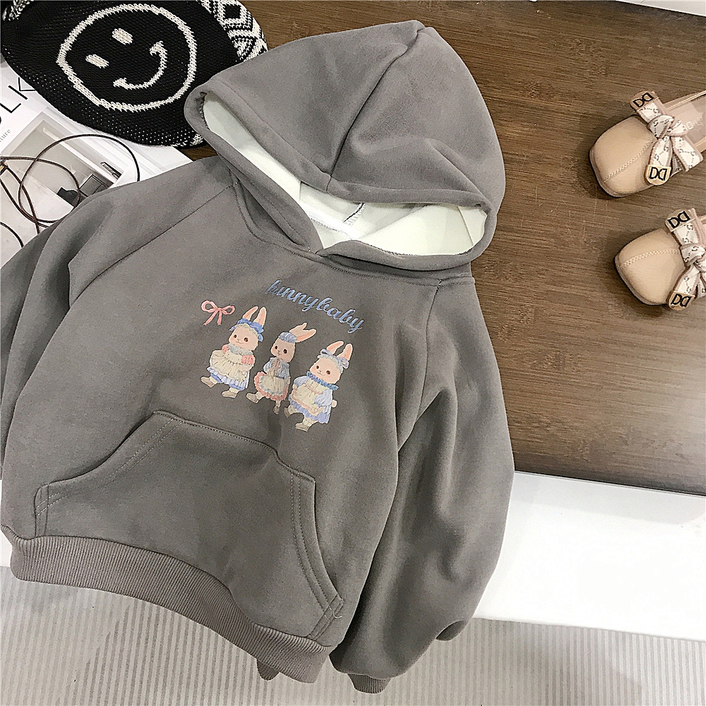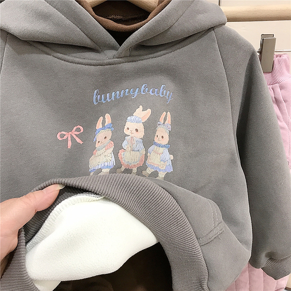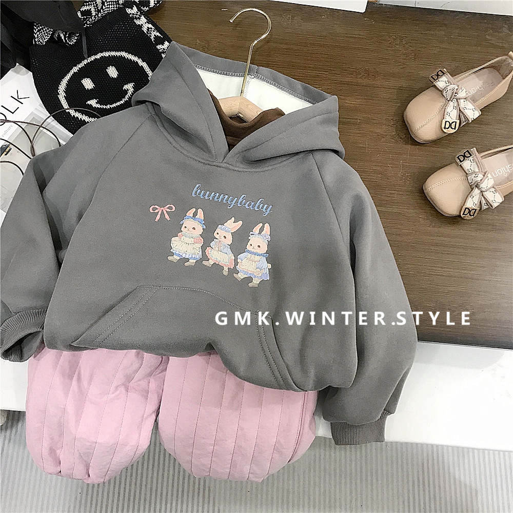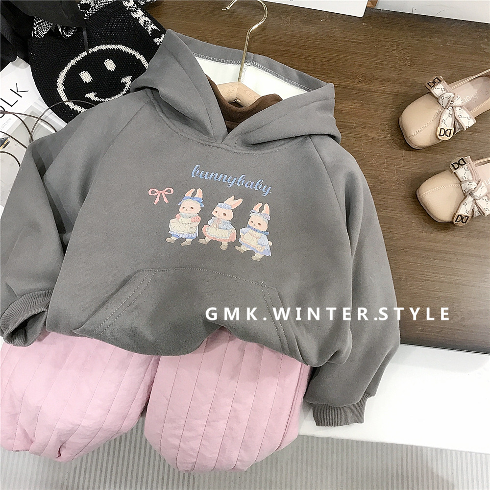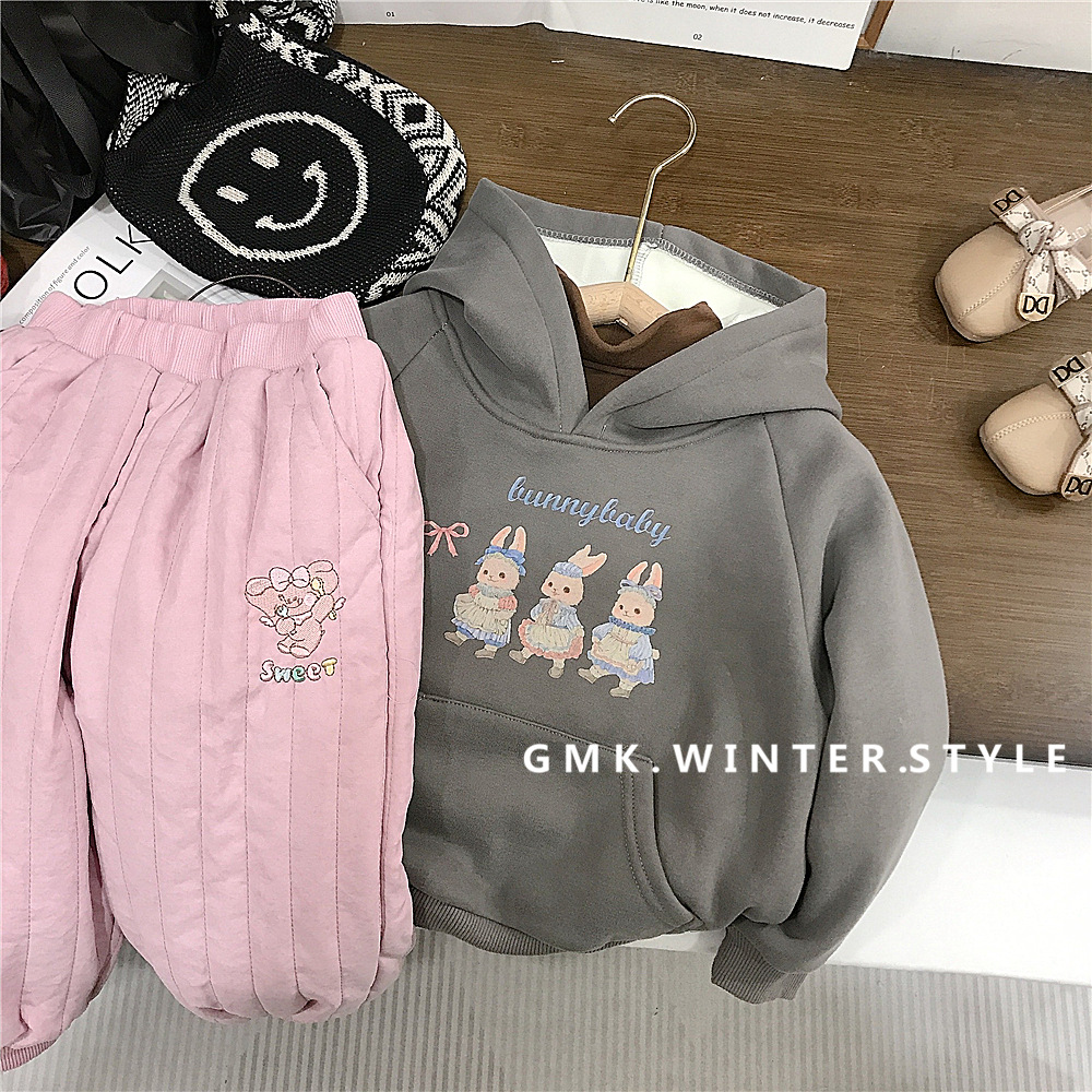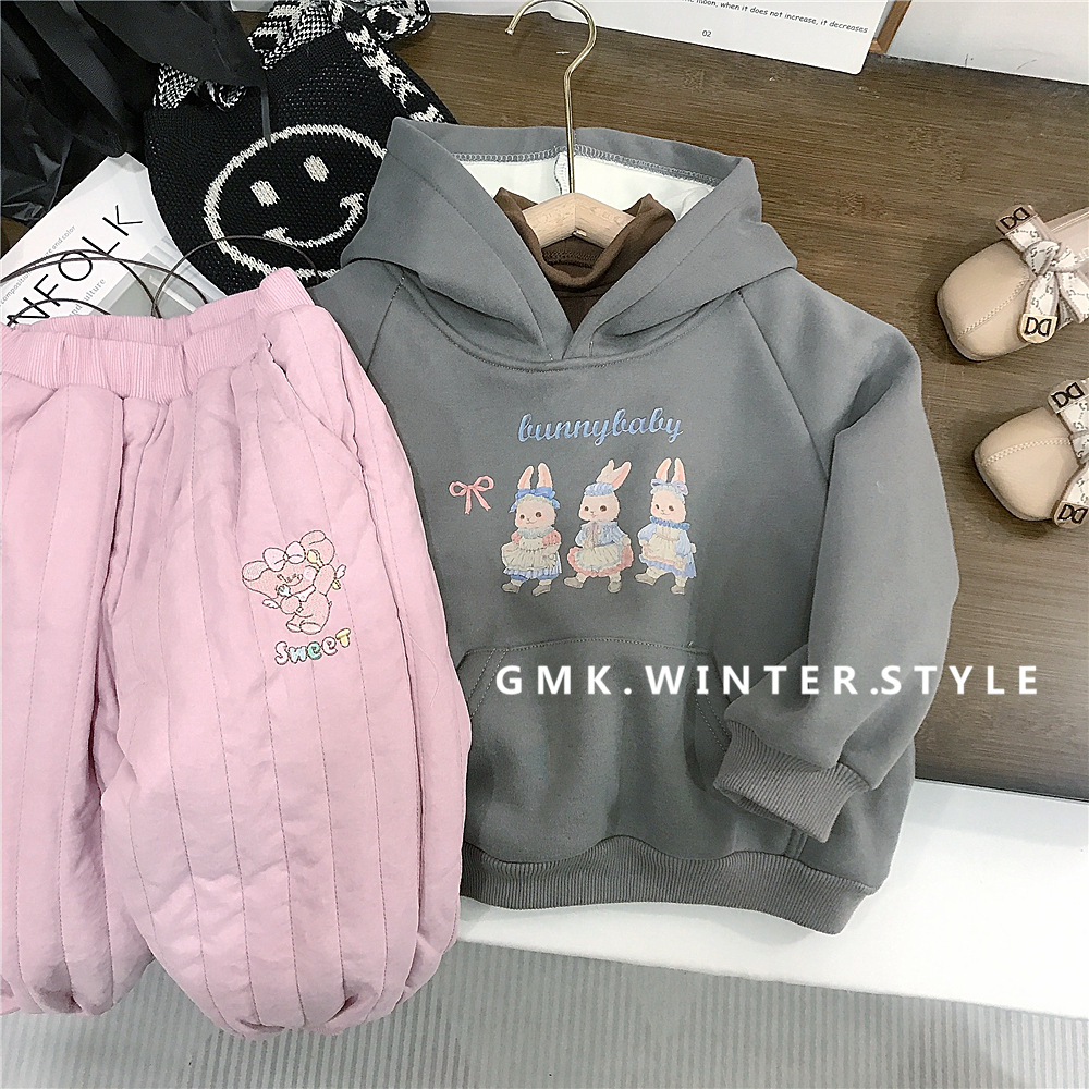 여자 후드 토끼 스웨터 한국 스타일 겨울 기모 탑 핑크 기모 면화 바지 대외 무역을위한 올매치 코 캐주얼 바지스토어 가기