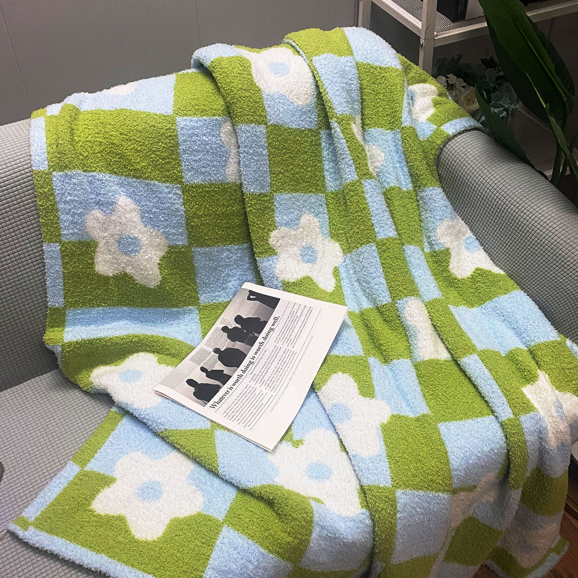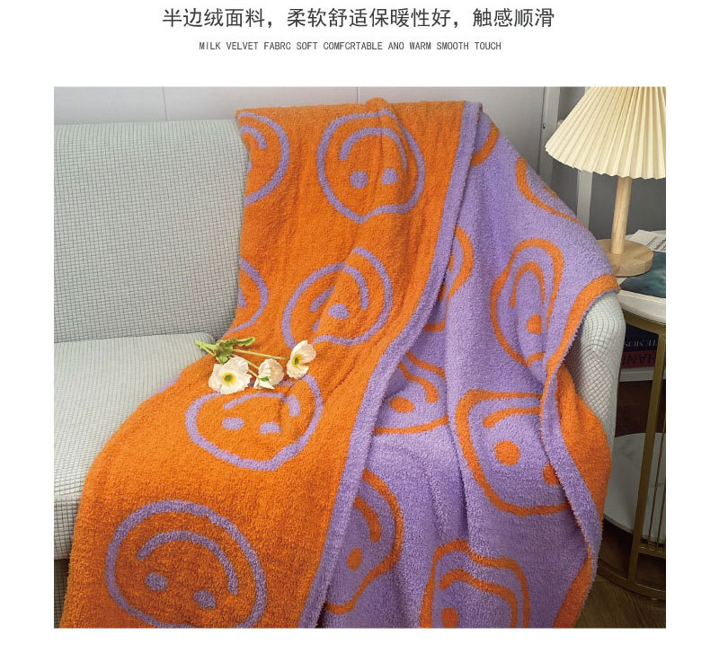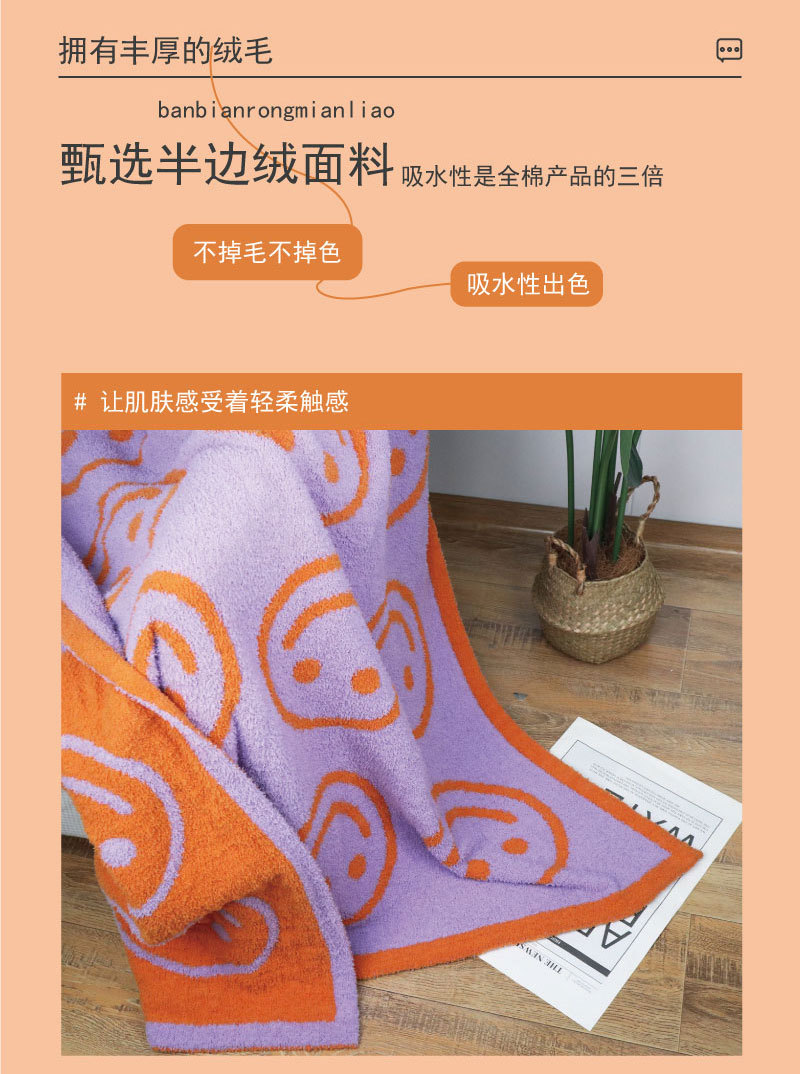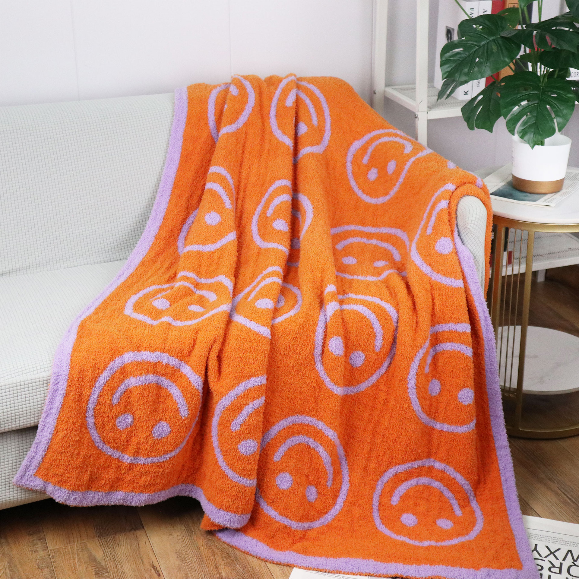 양면 사용 가능한 스마일리 반모직 담요, 따뜻한 소파 낮잠 담요, 니트 담요, 에어컨 방용 숄 담요, 배색스토어 가기