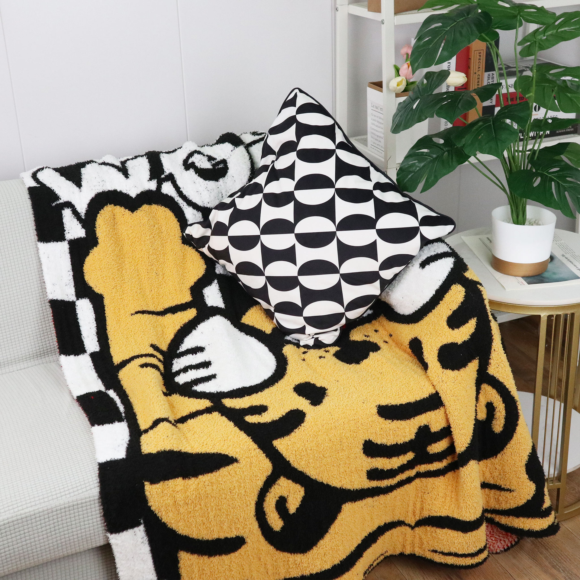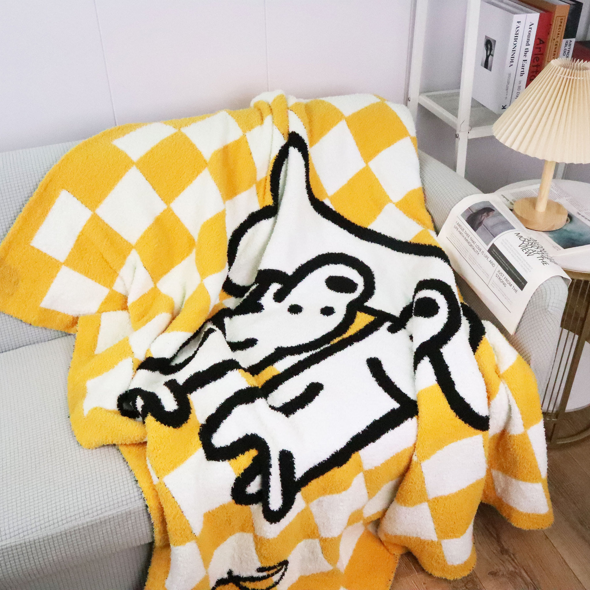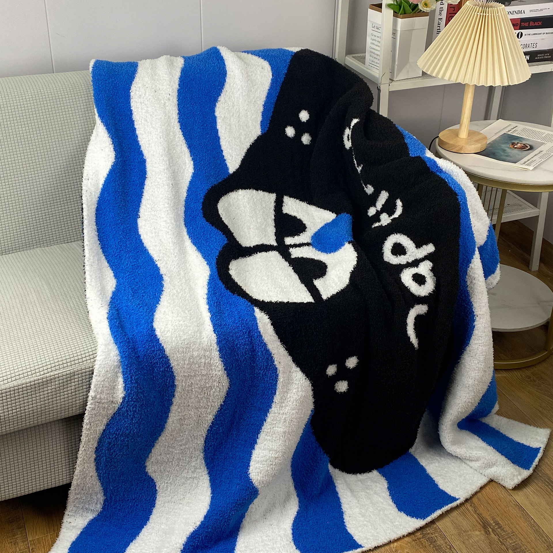 양면 사용 가능한 스마일리 반모직 담요, 따뜻한 소파 낮잠 담요, 니트 담요, 에어컨 방용 숄 담요, 배색스토어 가기