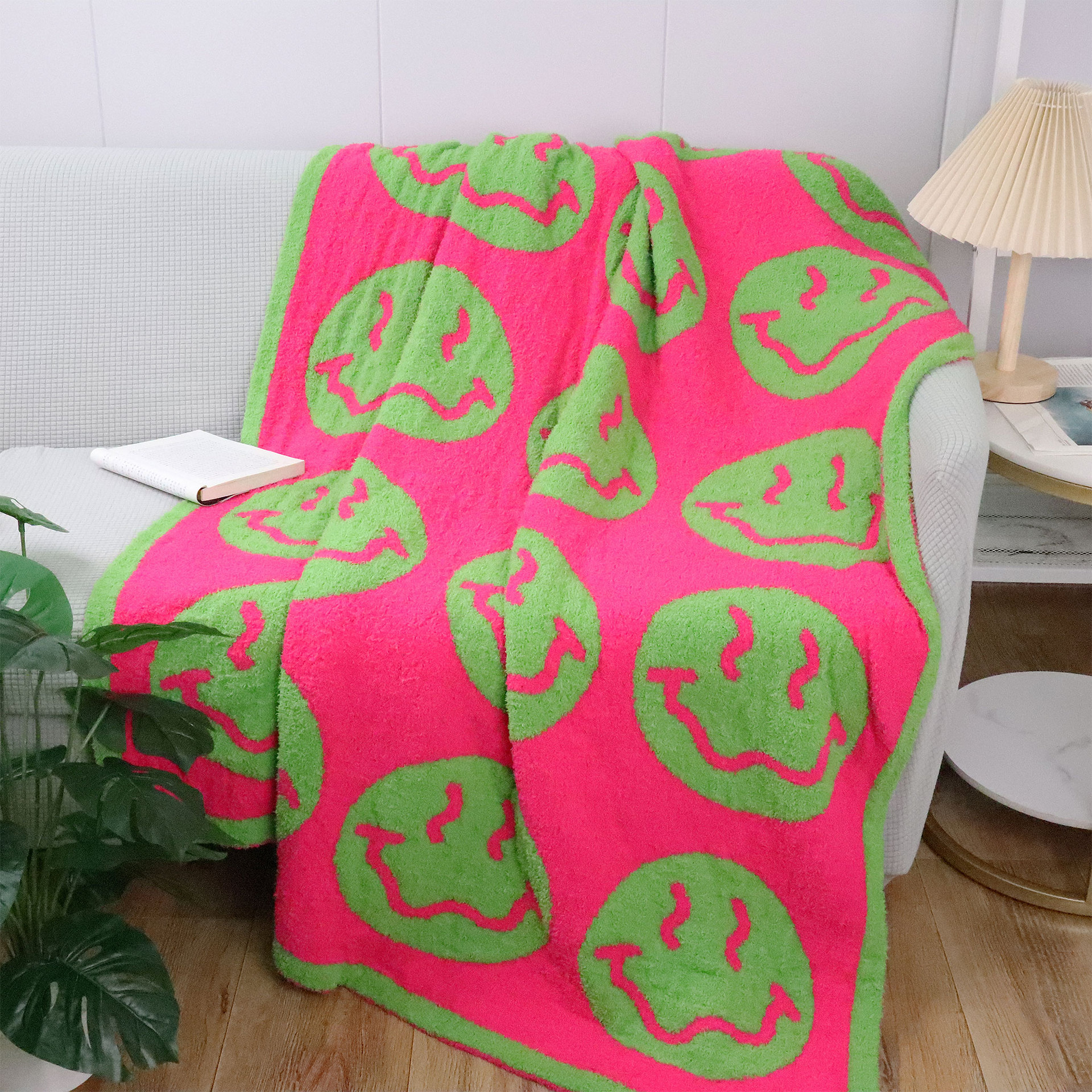 양면 사용 가능한 스마일리 반모직 담요, 따뜻한 소파 낮잠 담요, 니트 담요, 에어컨 방용 숄 담요, 배색