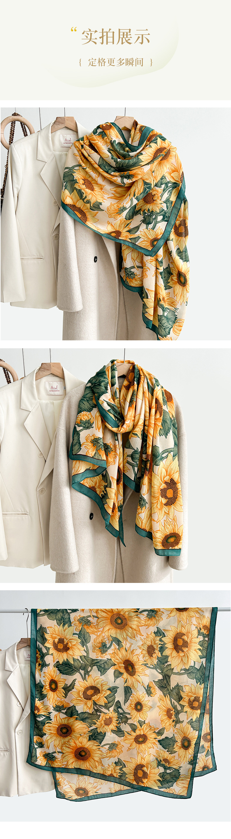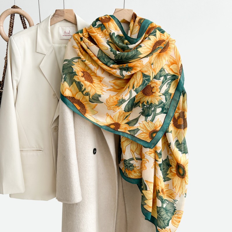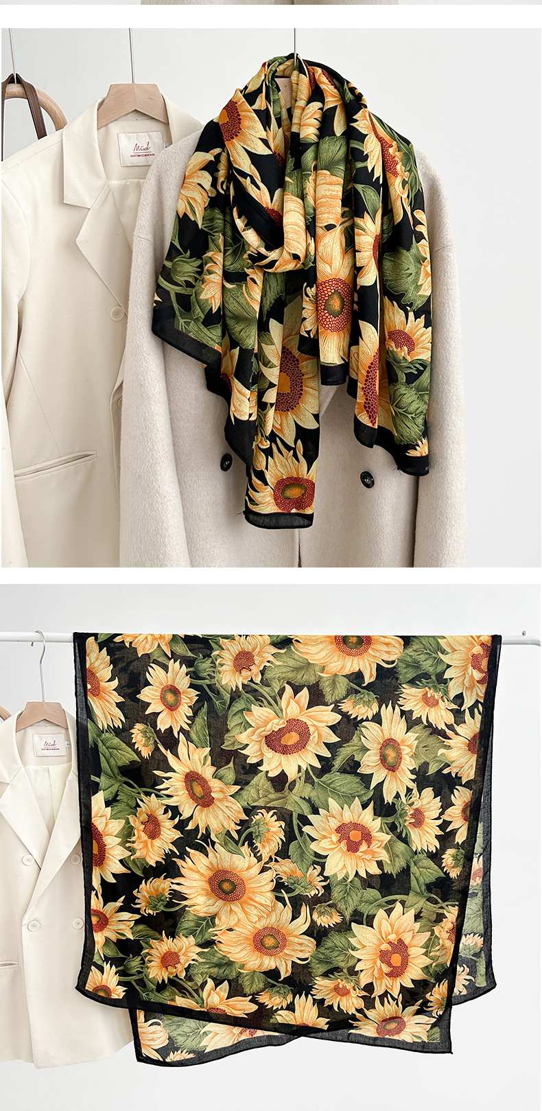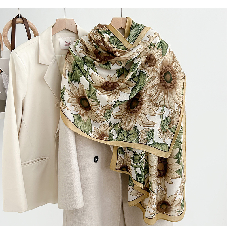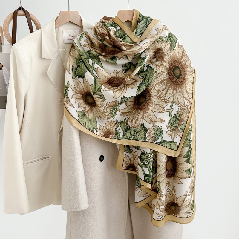 새로운 예술적 신선한 해바라기 인쇄 목도리 90*180 헤링본 긴 스카프 고급 캐시미어 질감 스카프스토어 가기