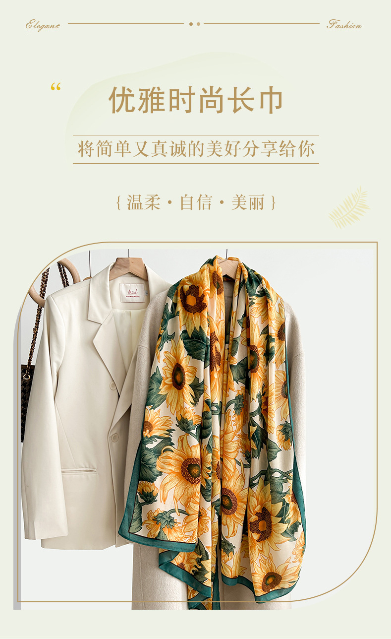새로운 예술적 신선한 해바라기 인쇄 목도리 90*180 헤링본 긴 스카프 고급 캐시미어 질감 스카프
