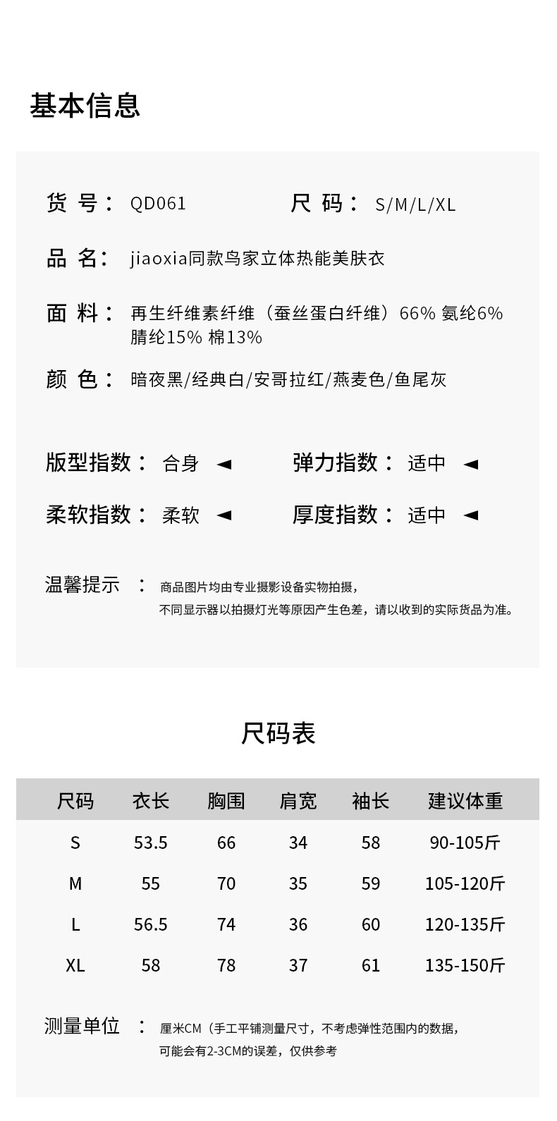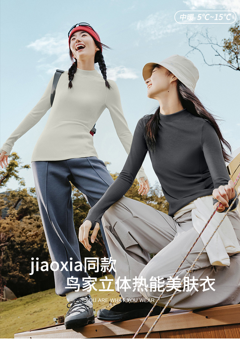 Jiaoxia의 같은 스타일 Niaojia 3차원 열 에너지 피부 미용 의류 여성용 가을 겨울 기본 레이어 고급스토어 가기
