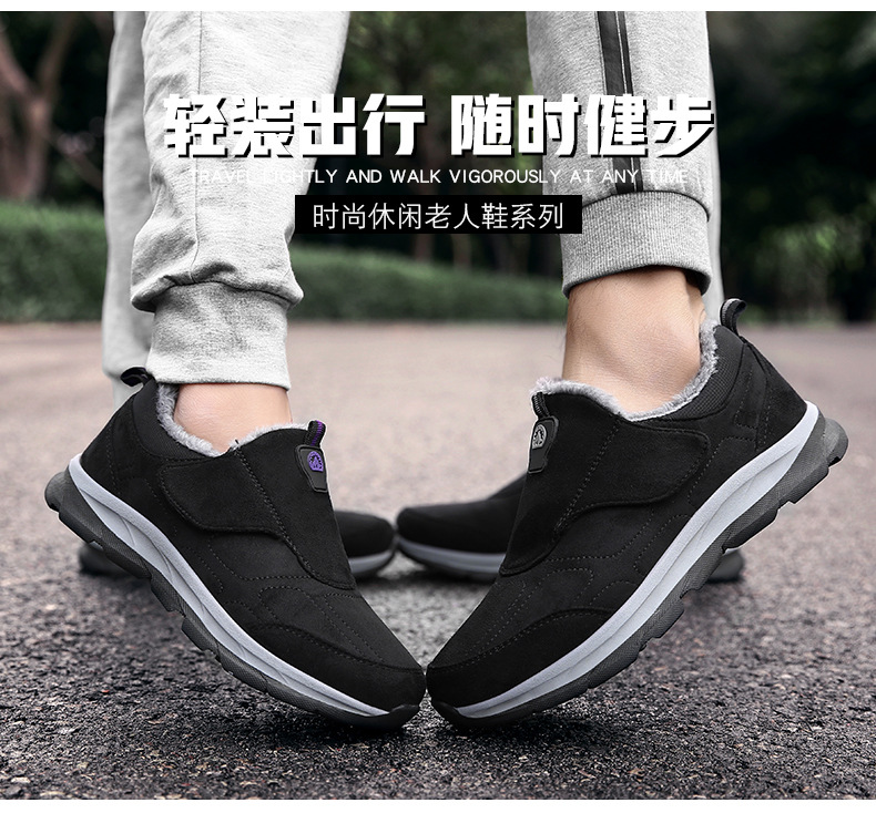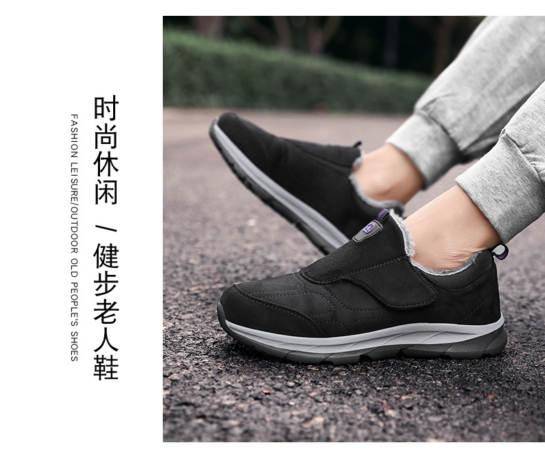 2024 가을과 겨울 플러스 사이즈 노인 면화 기모 운동화 중년 및 노인 캐주얼 신발 후크 및 루프 부드러운 바닥 여성 신발 남성
