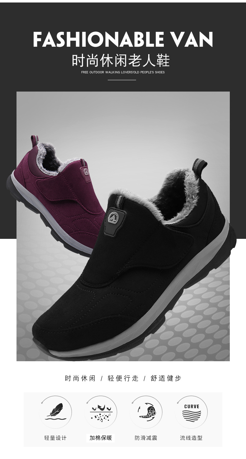 2024 가을과 겨울 플러스 사이즈 노인 면화 기모 운동화 중년 및 노인 캐주얼 신발 후크 및 루프 부드러운 바닥 여성 신발 남성스토어 가기