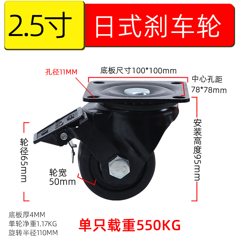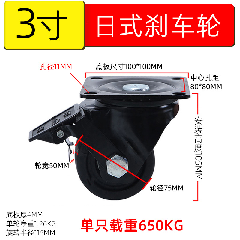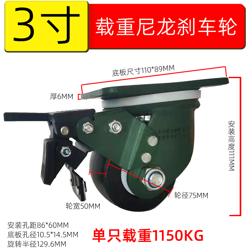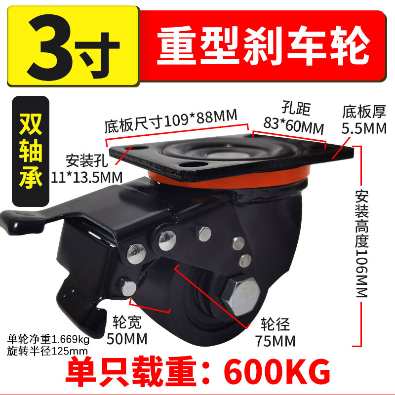 • 3inch 매우 견고한 브레이크 단일 휠 베어링 1150kg