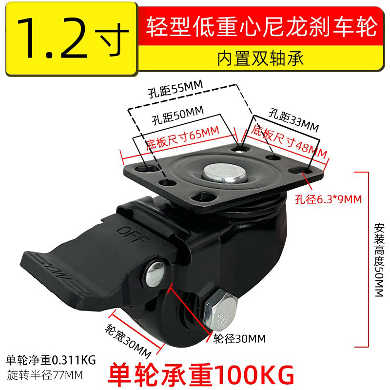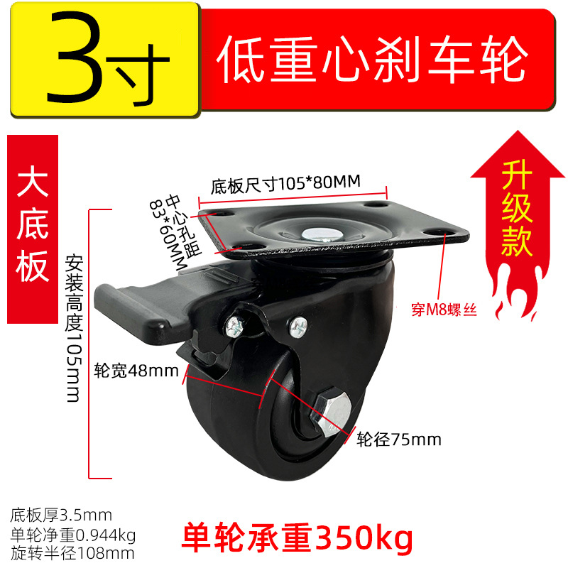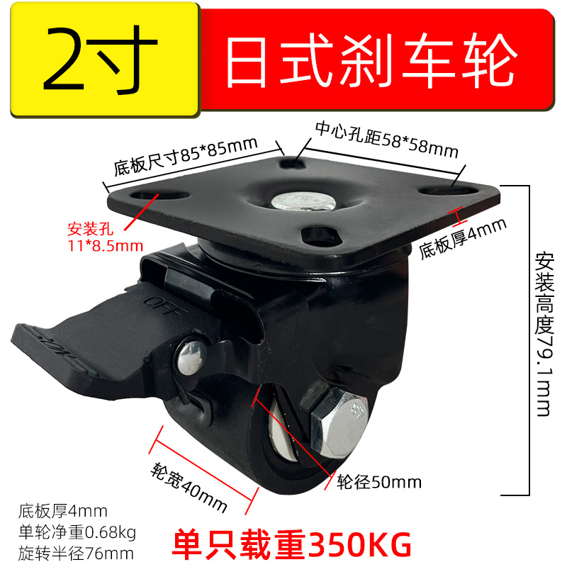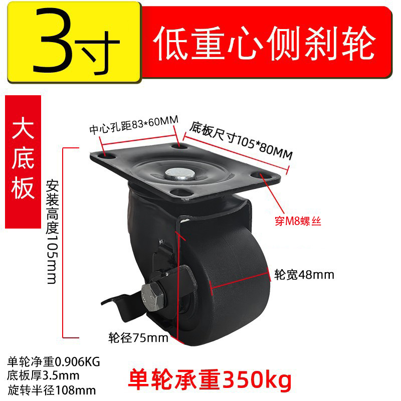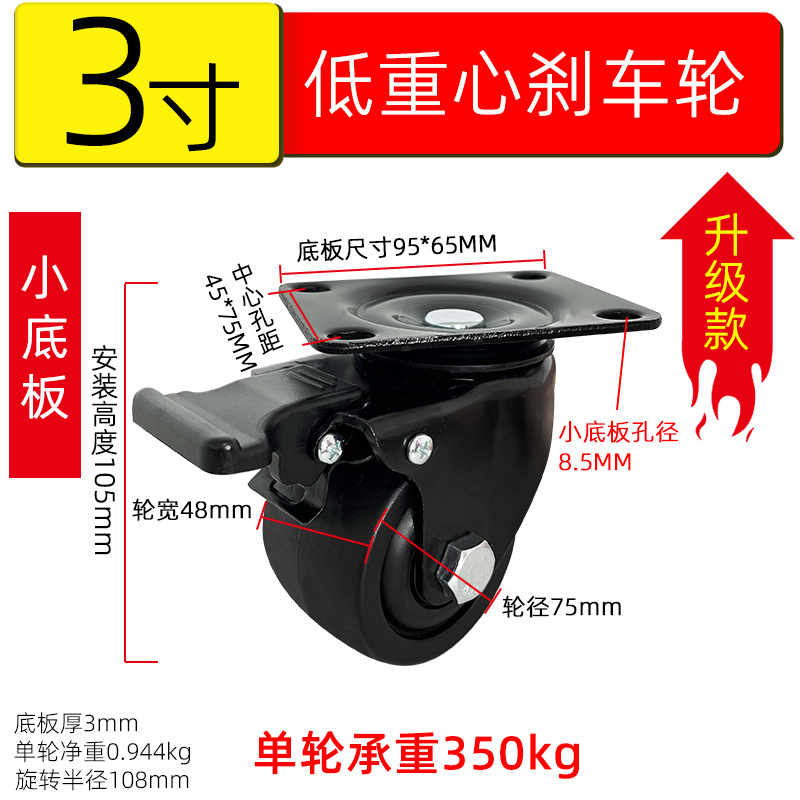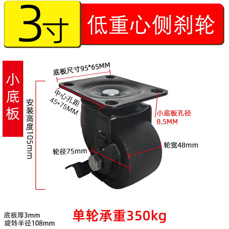 • 3inch 측면 브레이크 소형 베이스 플레이트 단일 휠 베어링 350kg