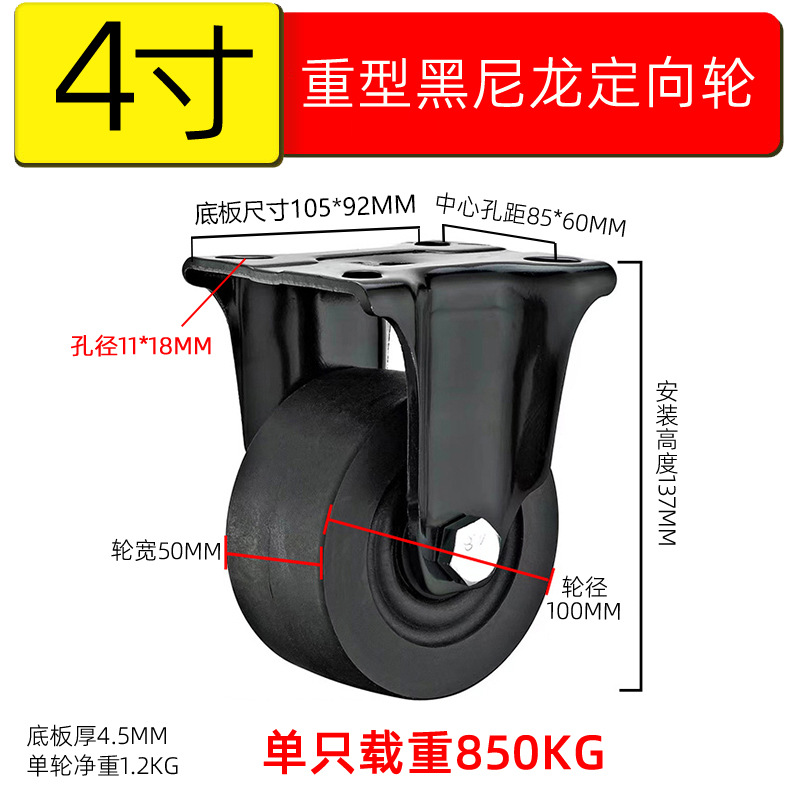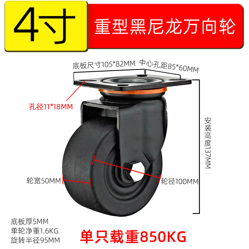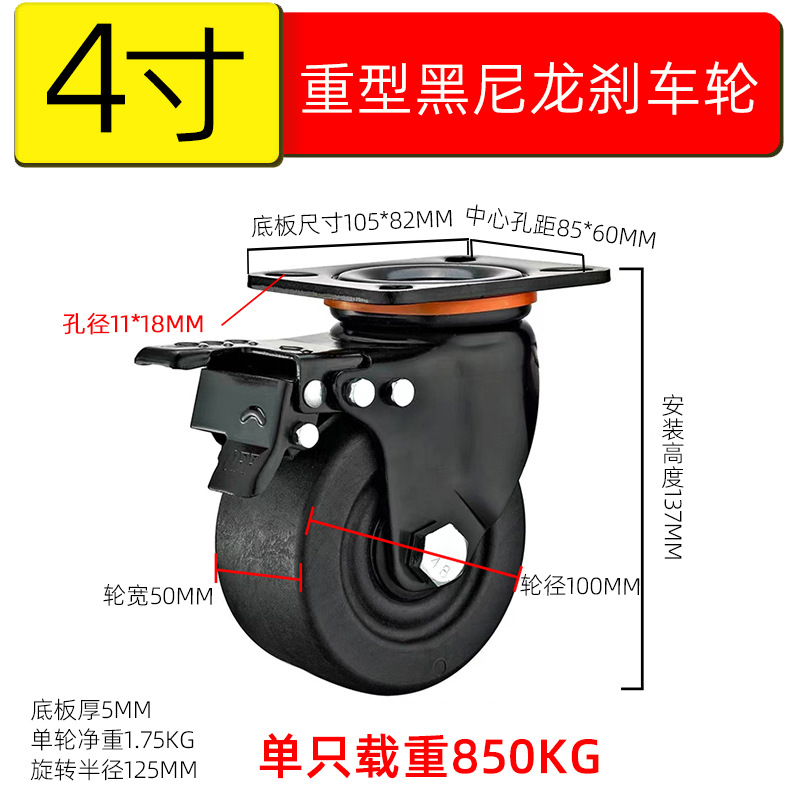 • 4inch 견고한 지향성 단일 휠 베어링 850kg