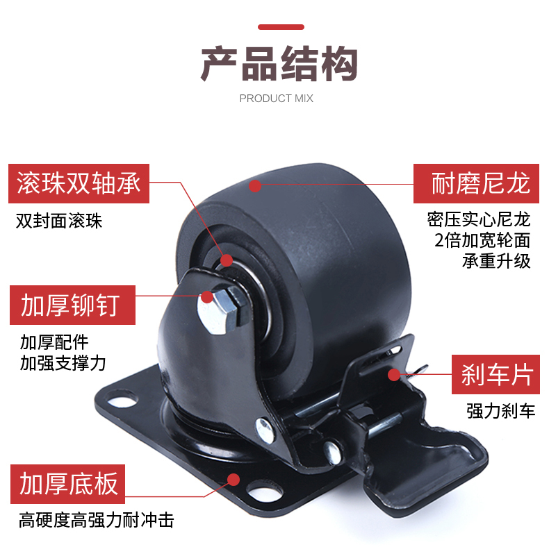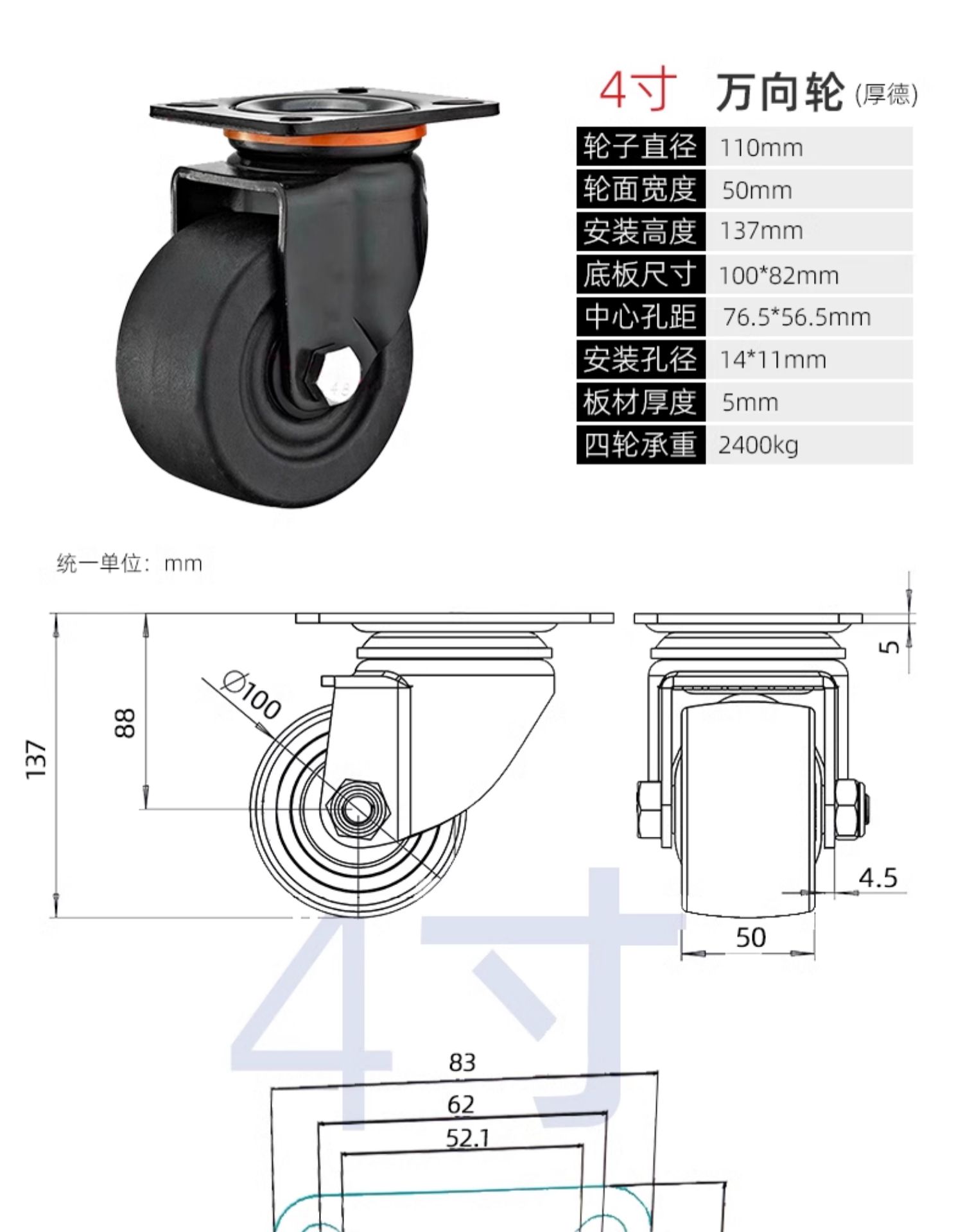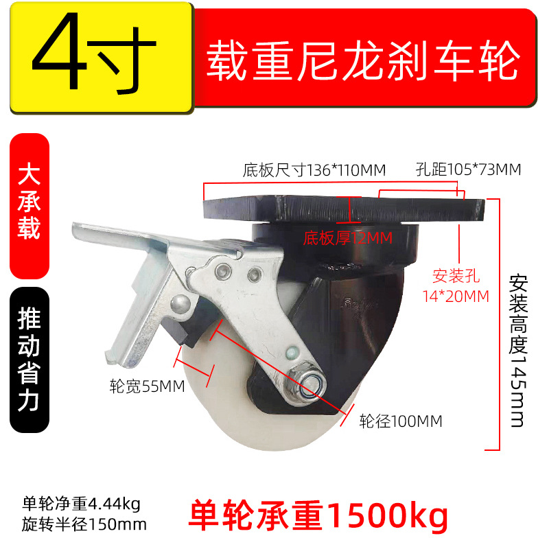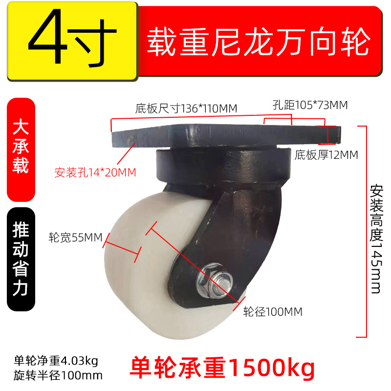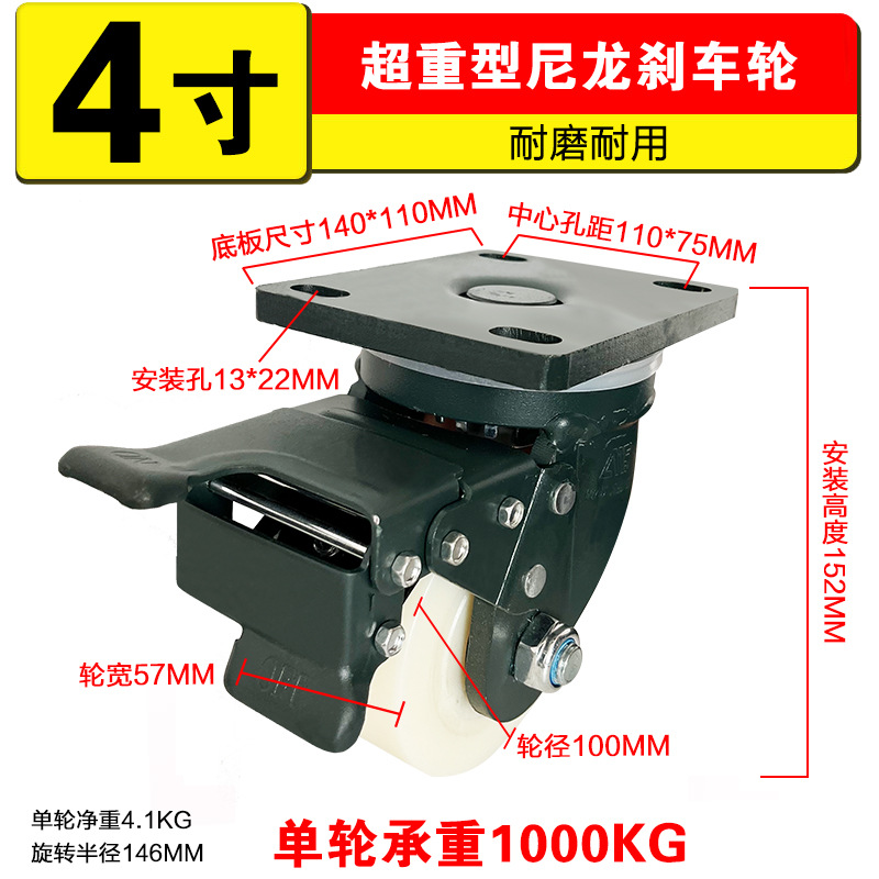 • 4inch 매우 견고한 방향성 단일 휠 베어링 1000kg