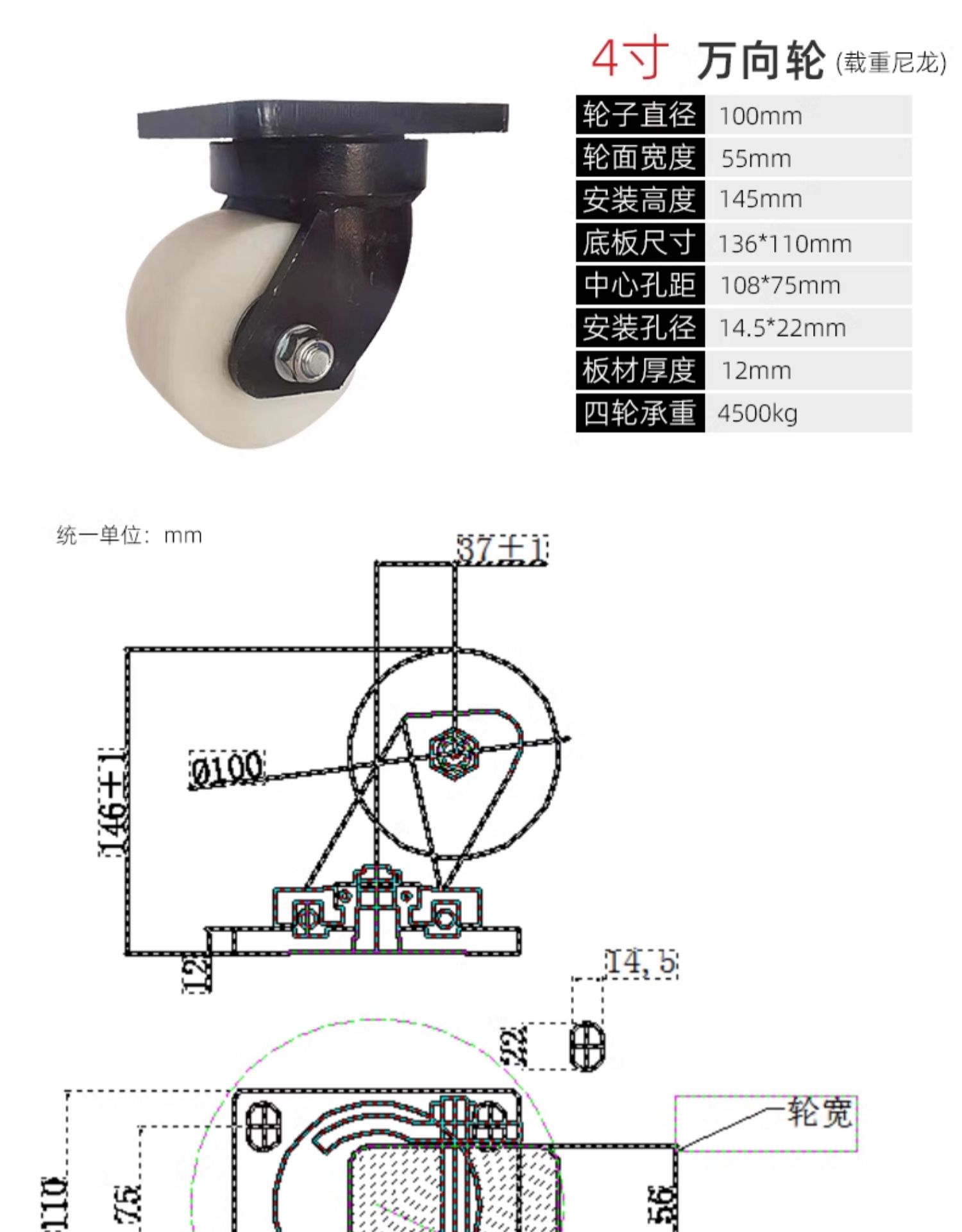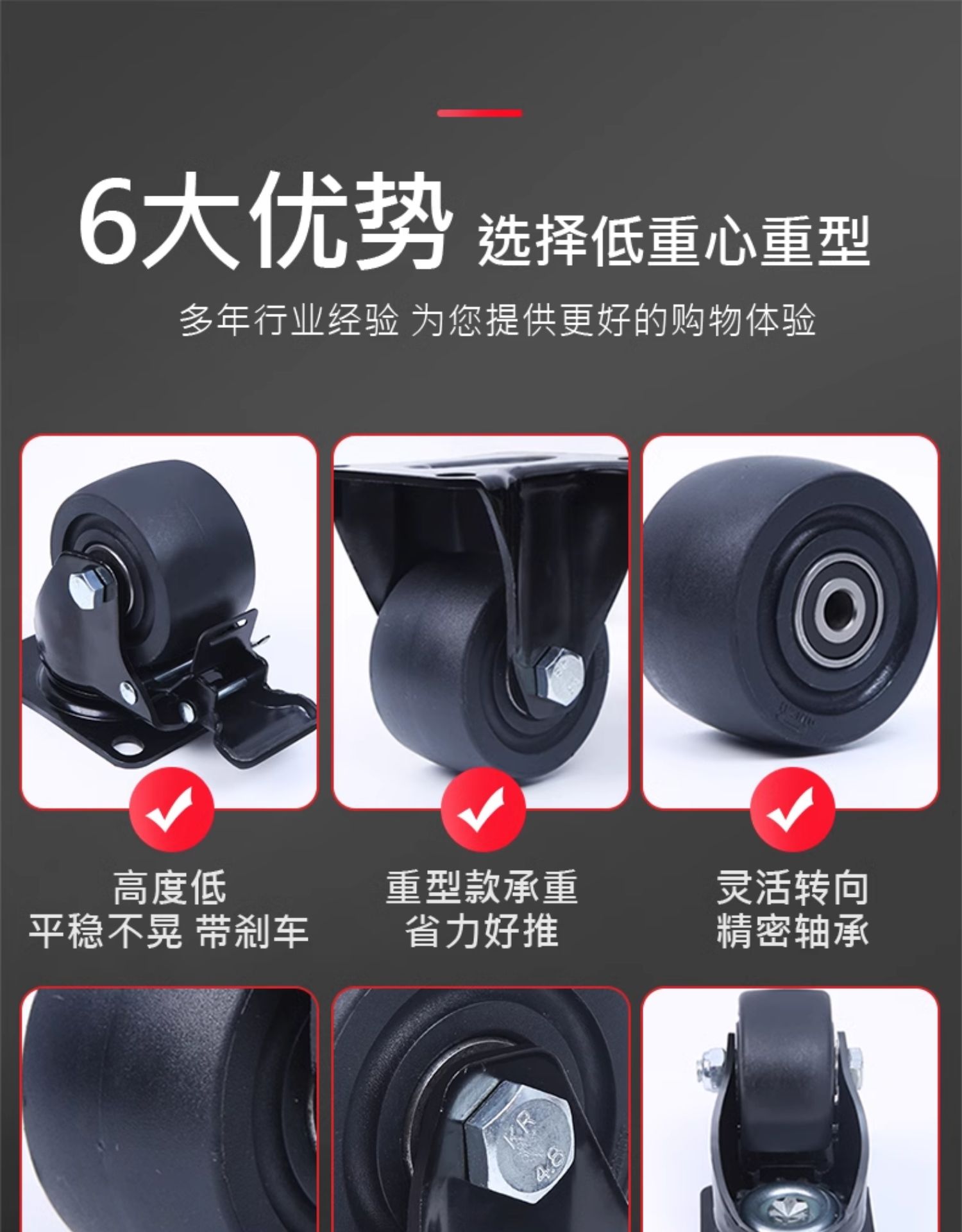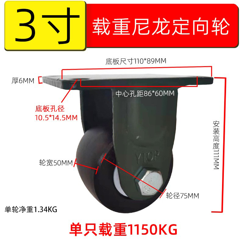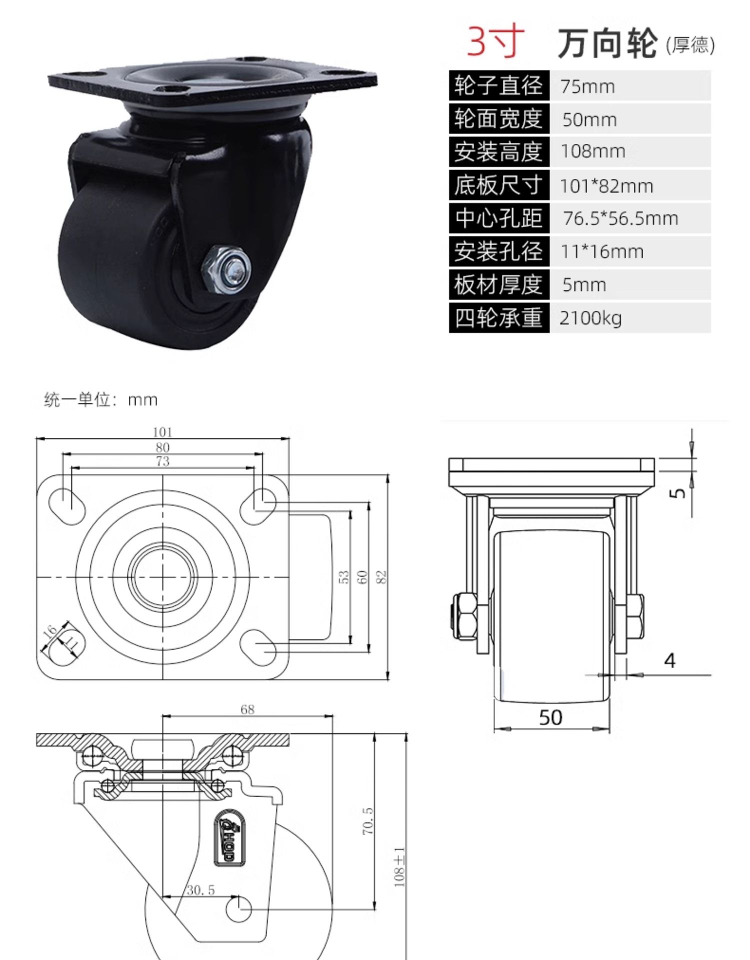 • 4inch 매우 견고한 방향성 단일 휠 베어링 1000kg