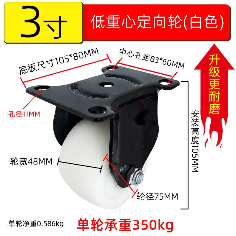 • 3inch 흰색 방향성 단일 휠 베어링 350kg