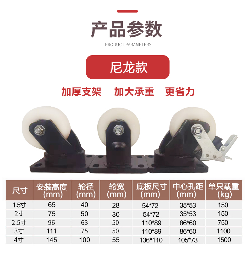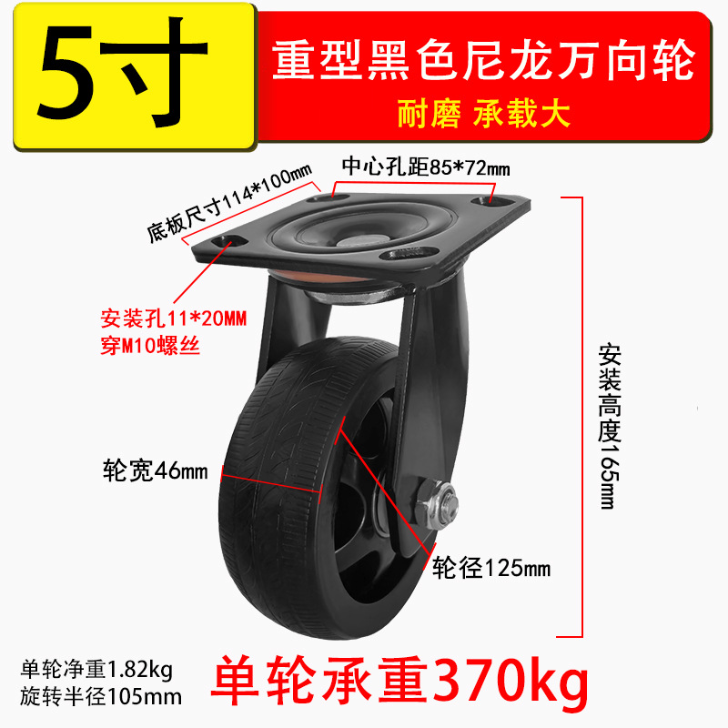 • 5inch 나일론 범용 단일 휠 베어링 370kg