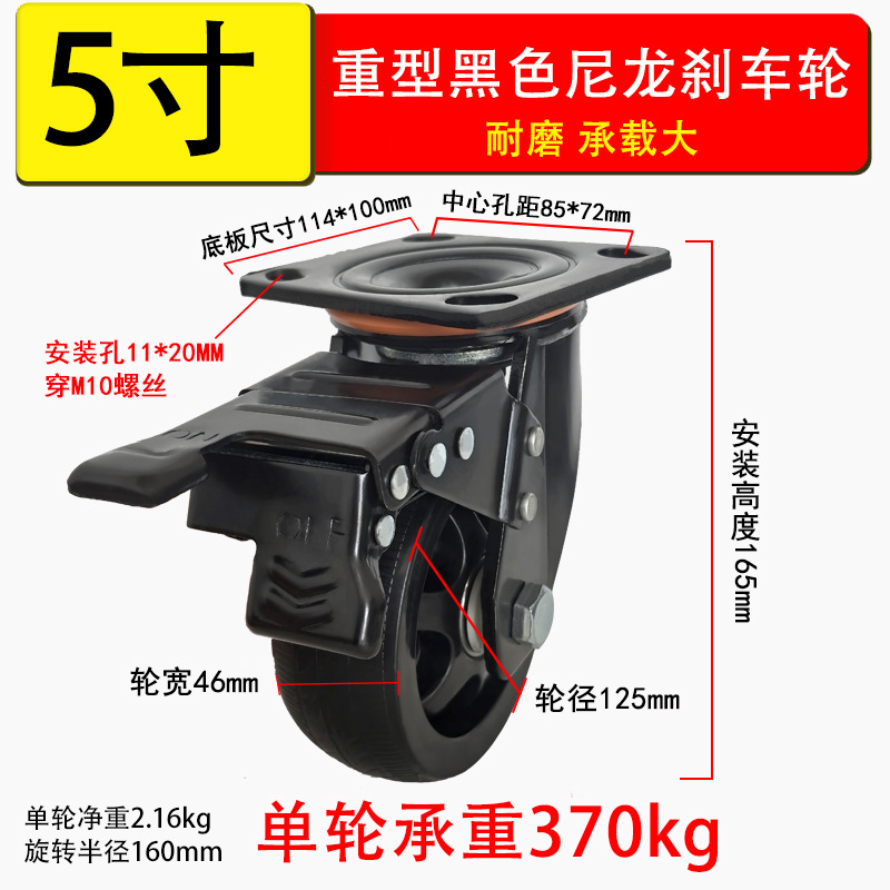 • 5inch 나일론 브레이크 단일 휠 베어링 370kg