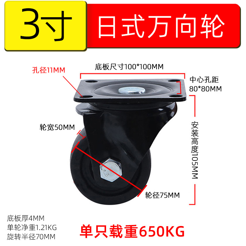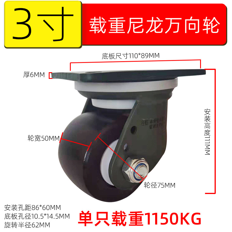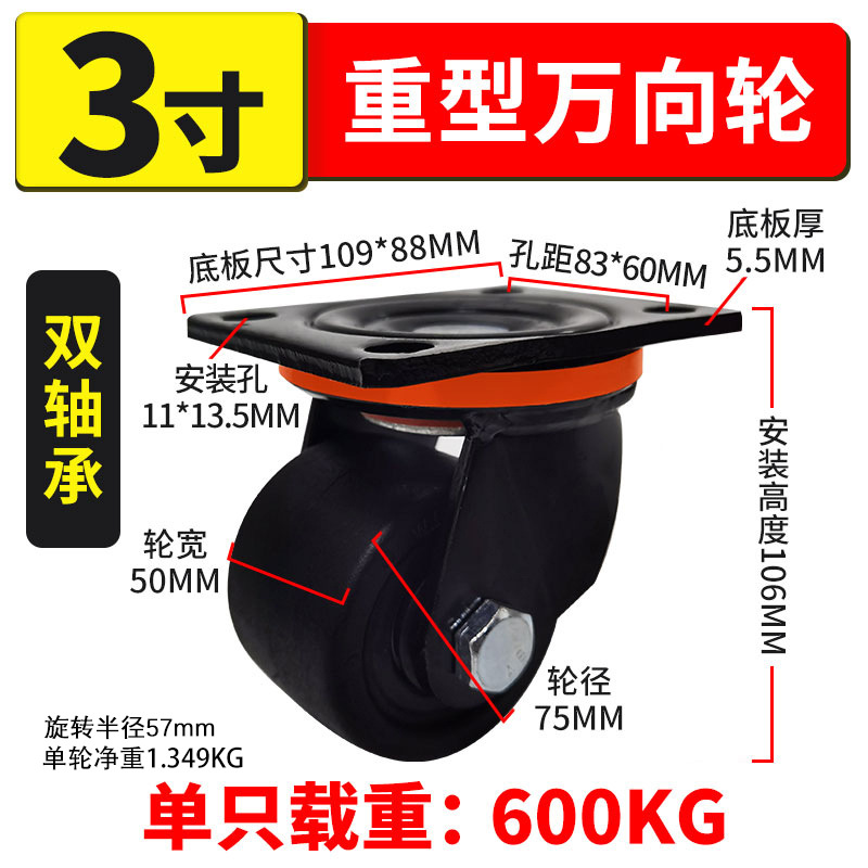 • 3inch 매우 견고한 범용 단일 휠 베어링 1150kg