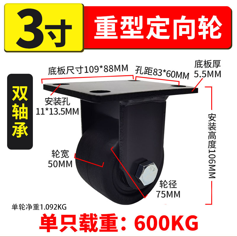• 3inch 매우 견고한 방향성 단일 휠 베어링 1150kg