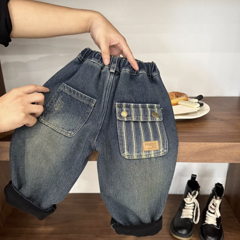 재고! 어린이 면화 재킷 2025 겨울 소년 만화 곰 데님 셔츠 소년 아기 코트 도매스토어 가기
