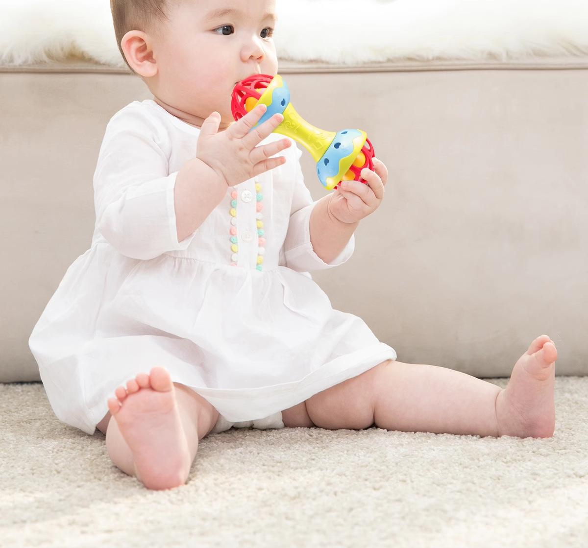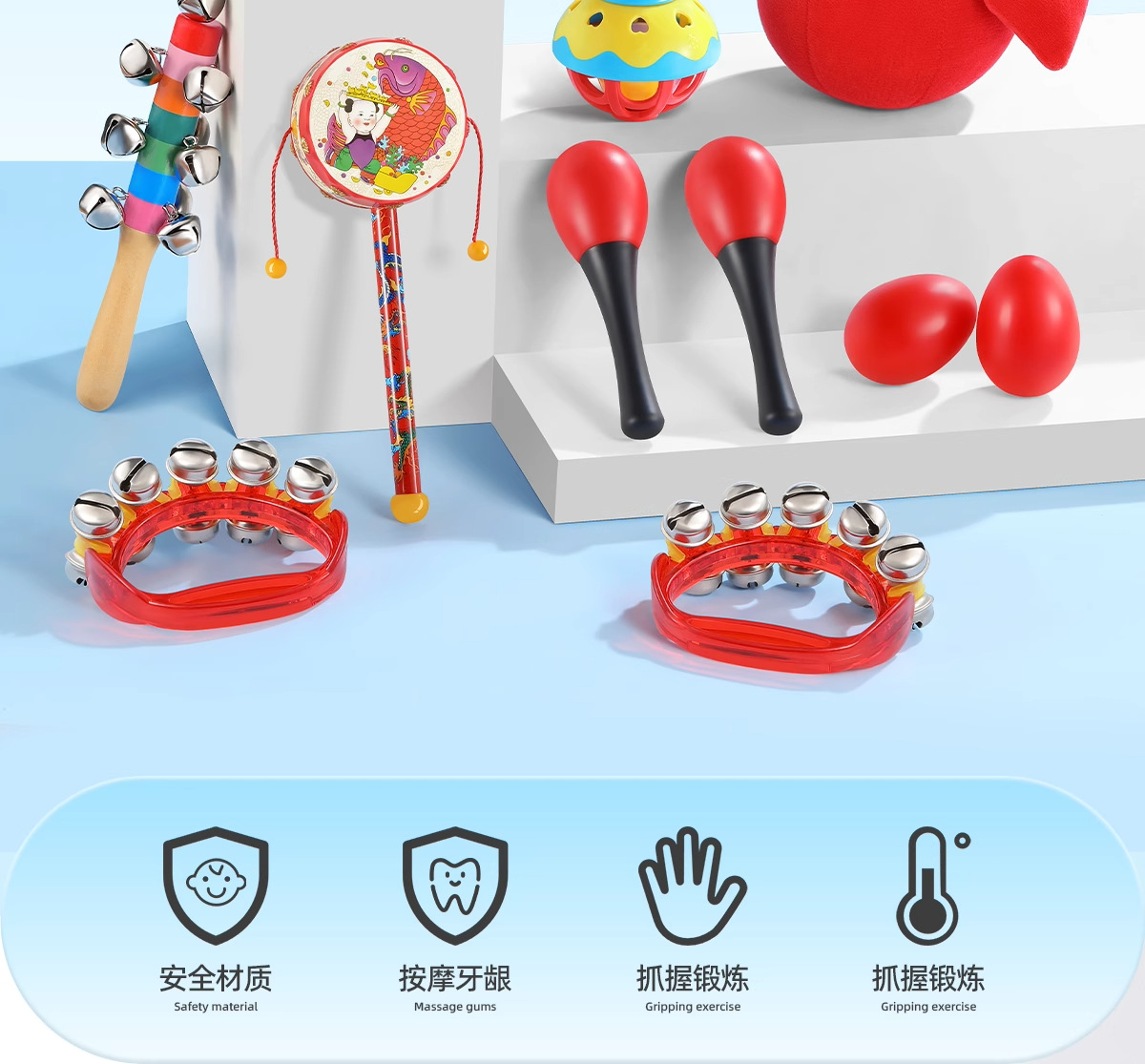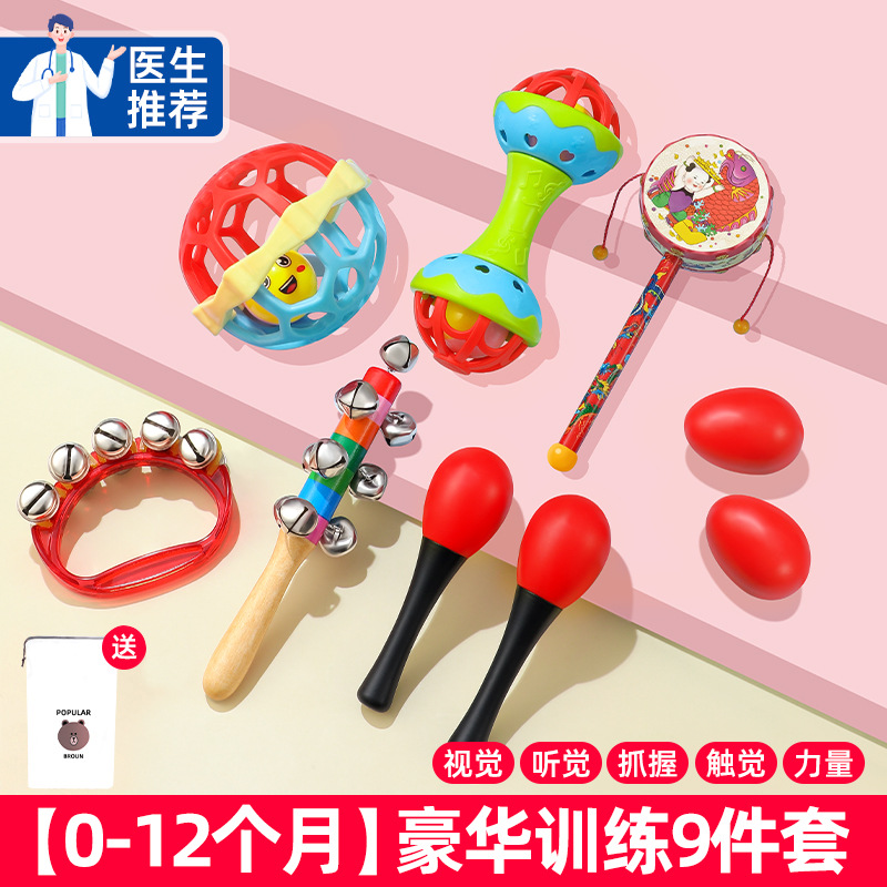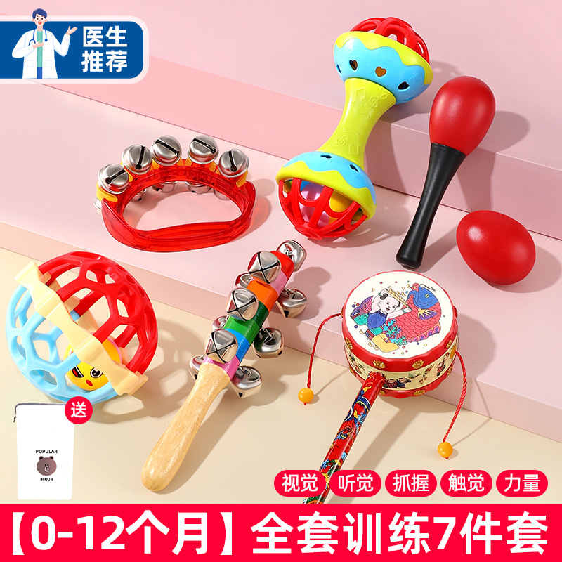 손잡이형 벨 아기 장난감 0-1세 샌드 해머 딸랑이 신생아 3개월 아기 잡기 훈련 장난감스토어 가기