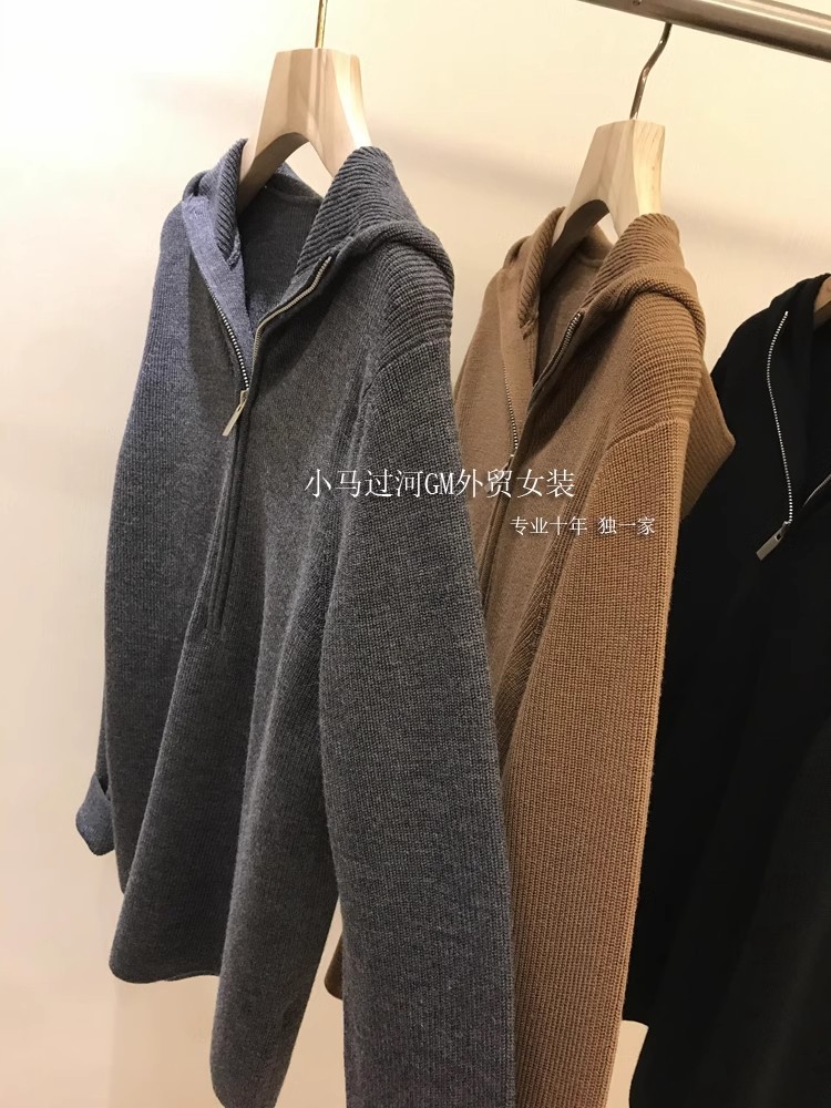 품질 추천! 잘 보이고 착용하기 쉬운 ~ 게으른 폴 등급 간단한 고급 반 지퍼 느슨한 울 니트 스웨터 여성의 겨울스토어 가기
