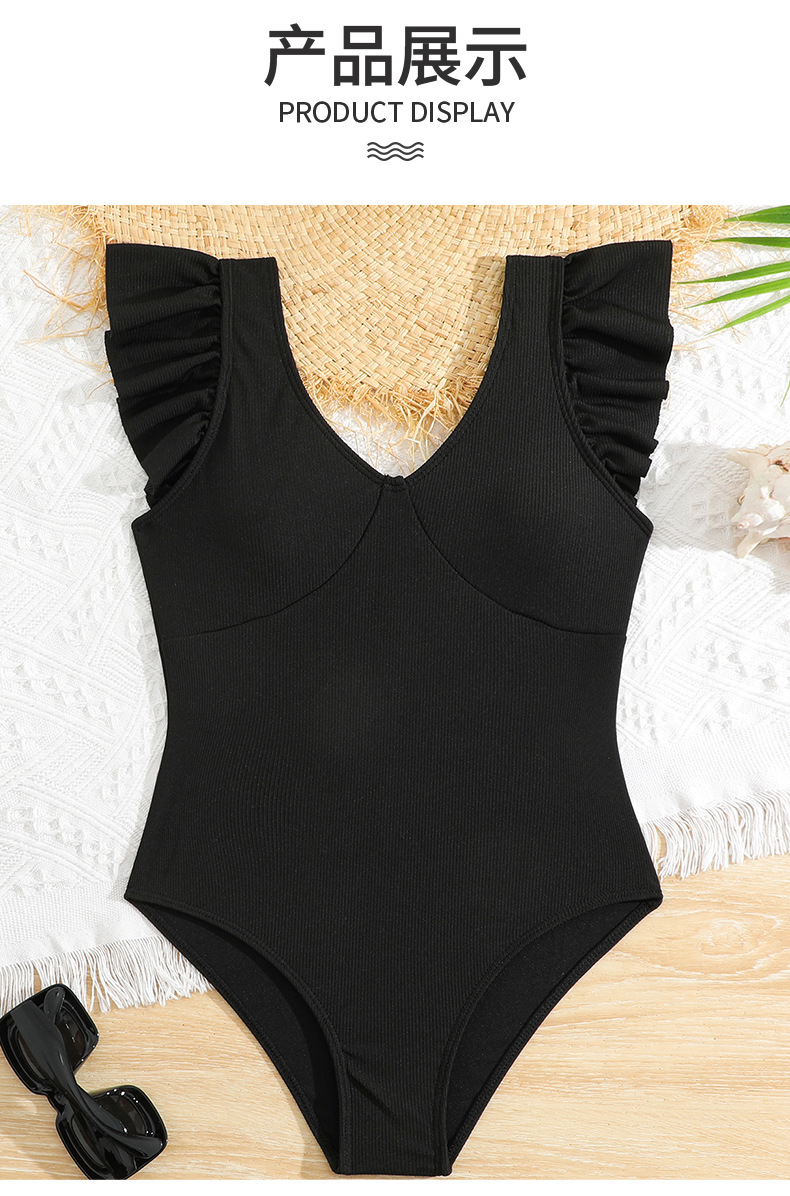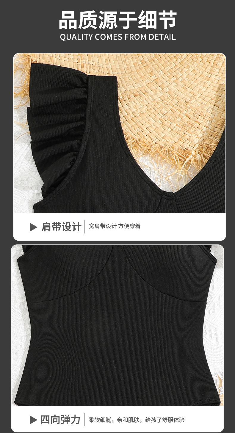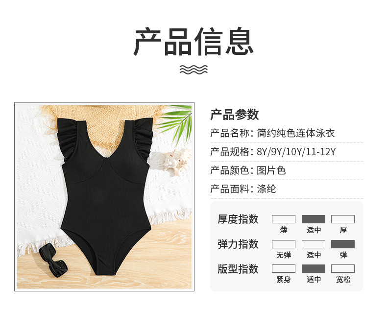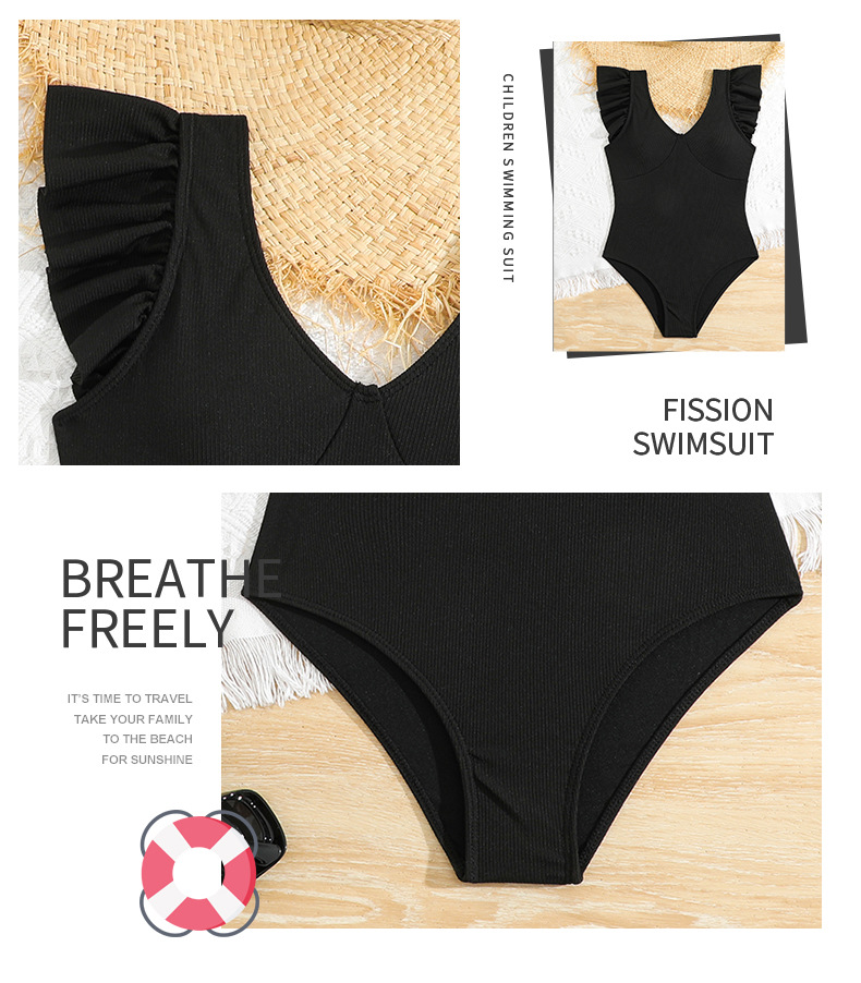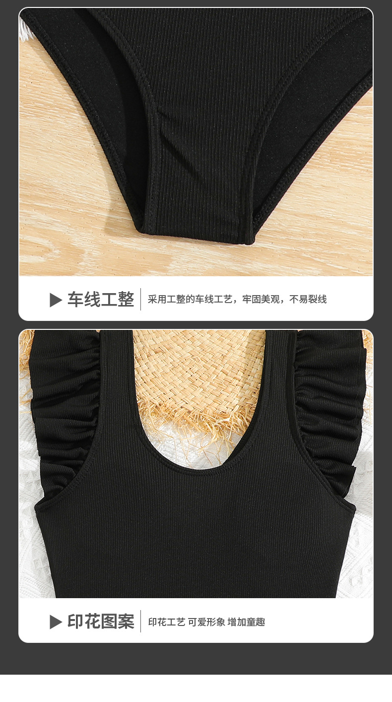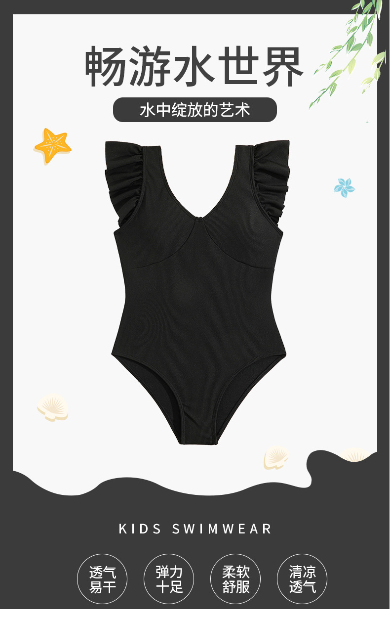 2024 새로운 어린이 원피스 수영복 주름 검은 색 수영복 국경 간 제조 업체 도매 패션 소녀 수영복스토어 가기