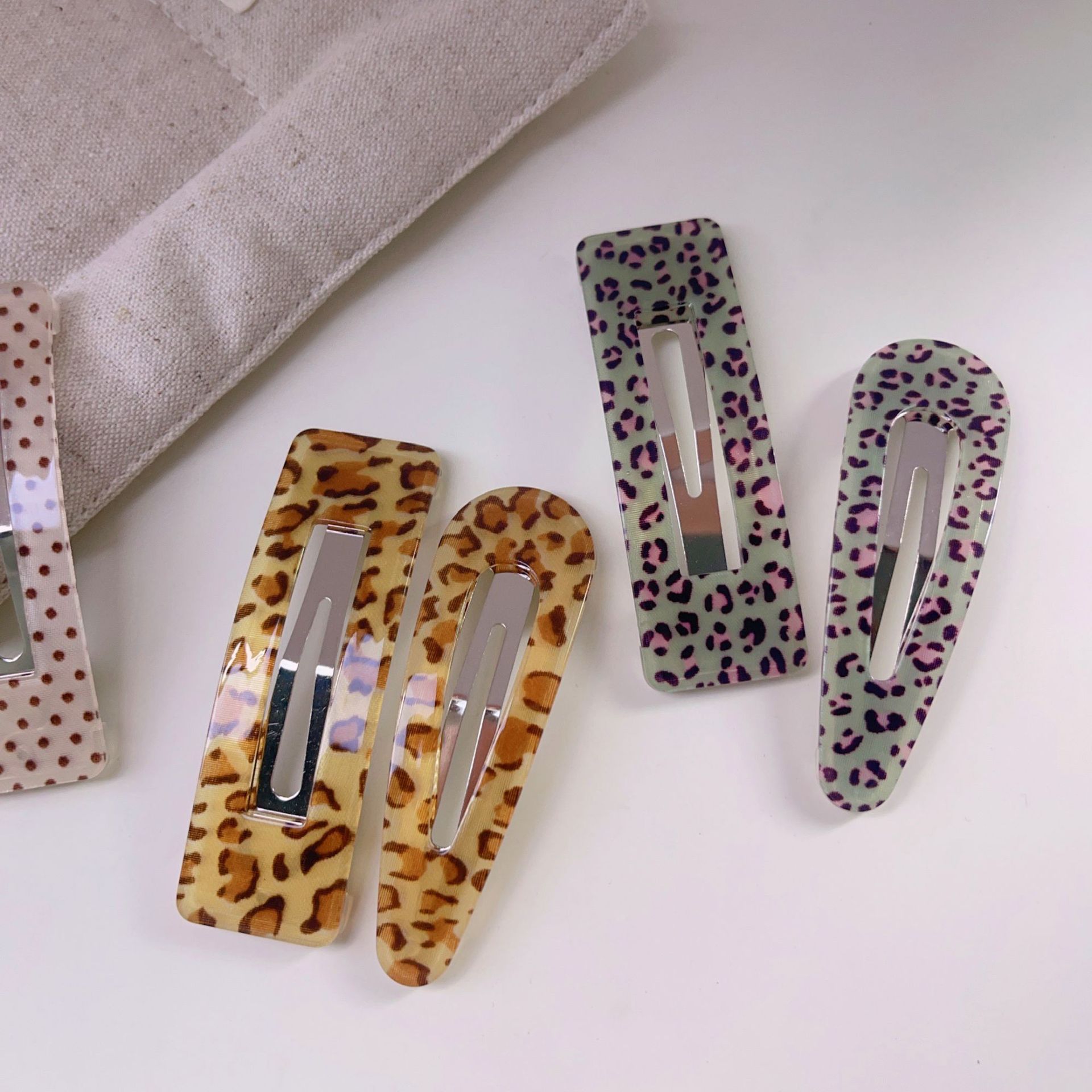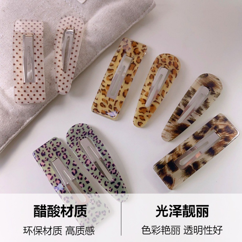 새로운 레오파드 컬러 빈티지 와이프 클립 bb 클립 패션 웨이브 포인트 깨진 헤어 프린지 클립 사이드 클립 여성용 헤어 액세서리 머리 주소