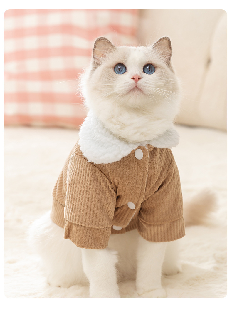 가을과 겨울 고양이 시즌 따뜻한 양가죽 곰 자켓 개 코듀로이 면 옷 테디 애완 동물 고양이 옷