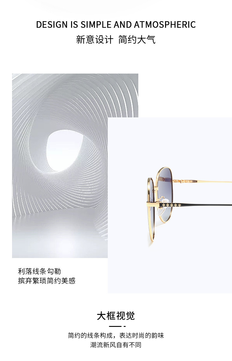 2023 새로운 여성 편광 선글라스 대형 프레임 금속 선글라스, 그물 붉은 성격 일반 그늘 거울 도매스토어 가기