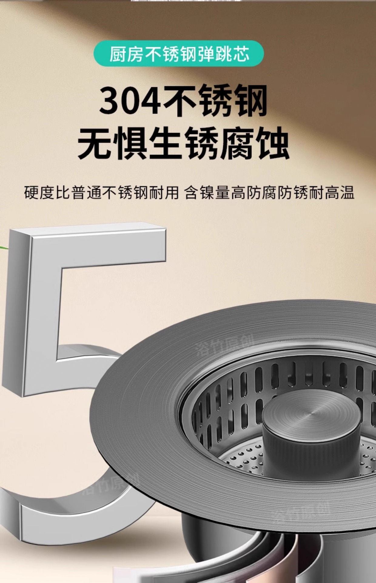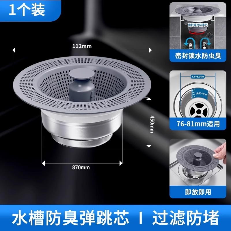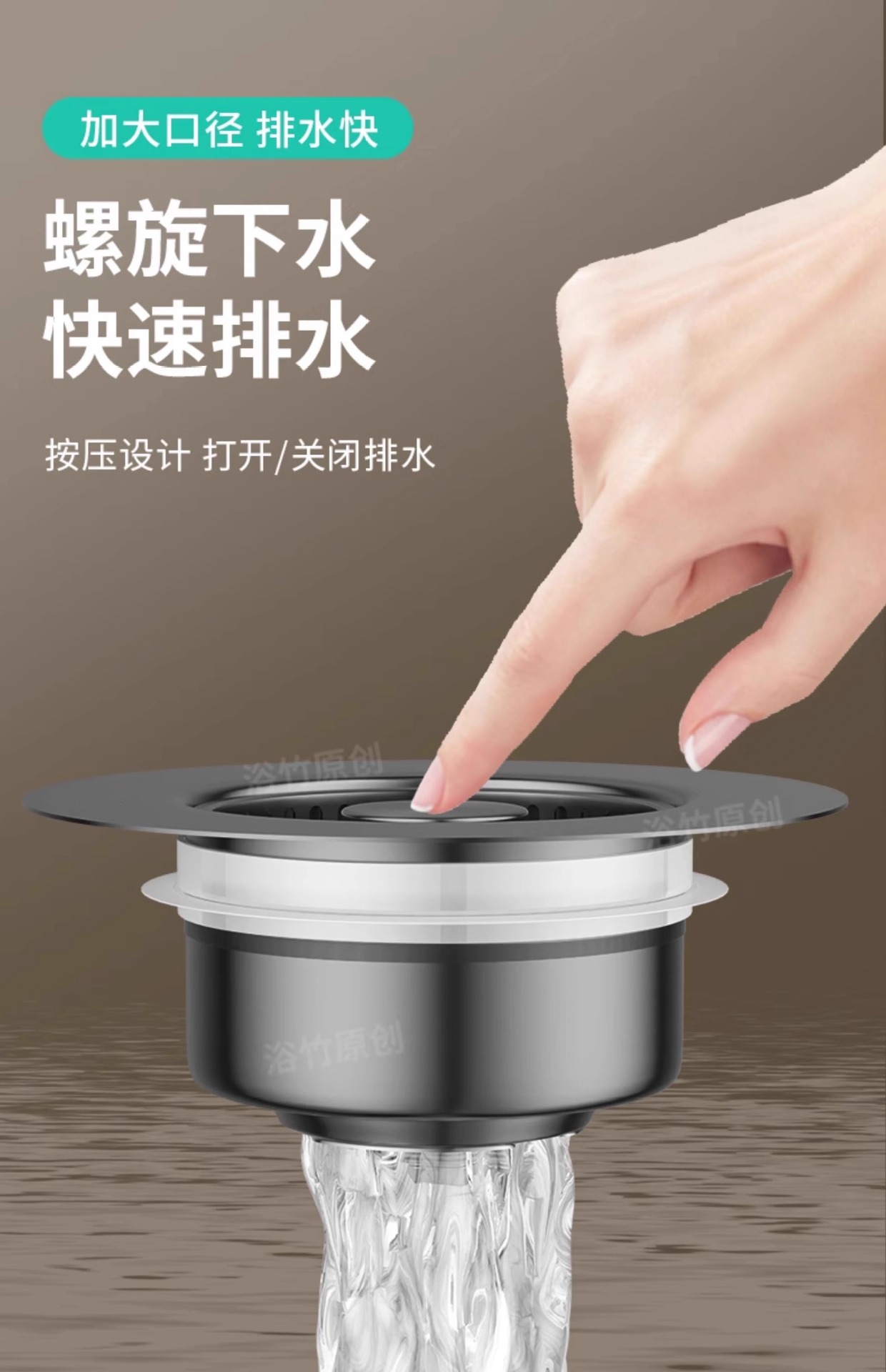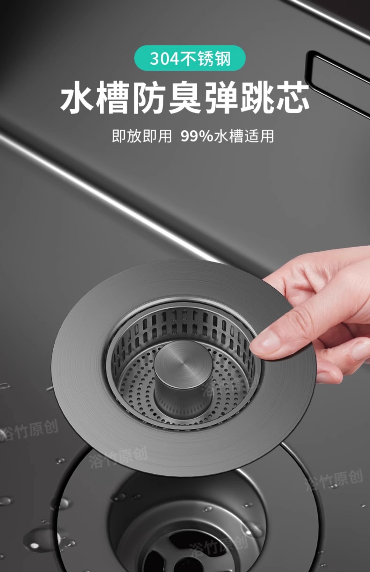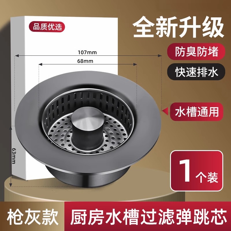 • 건메탈 [업그레이드된 두께의 스테인리스 스틸] 주방 싱크대 팝업 배수구
