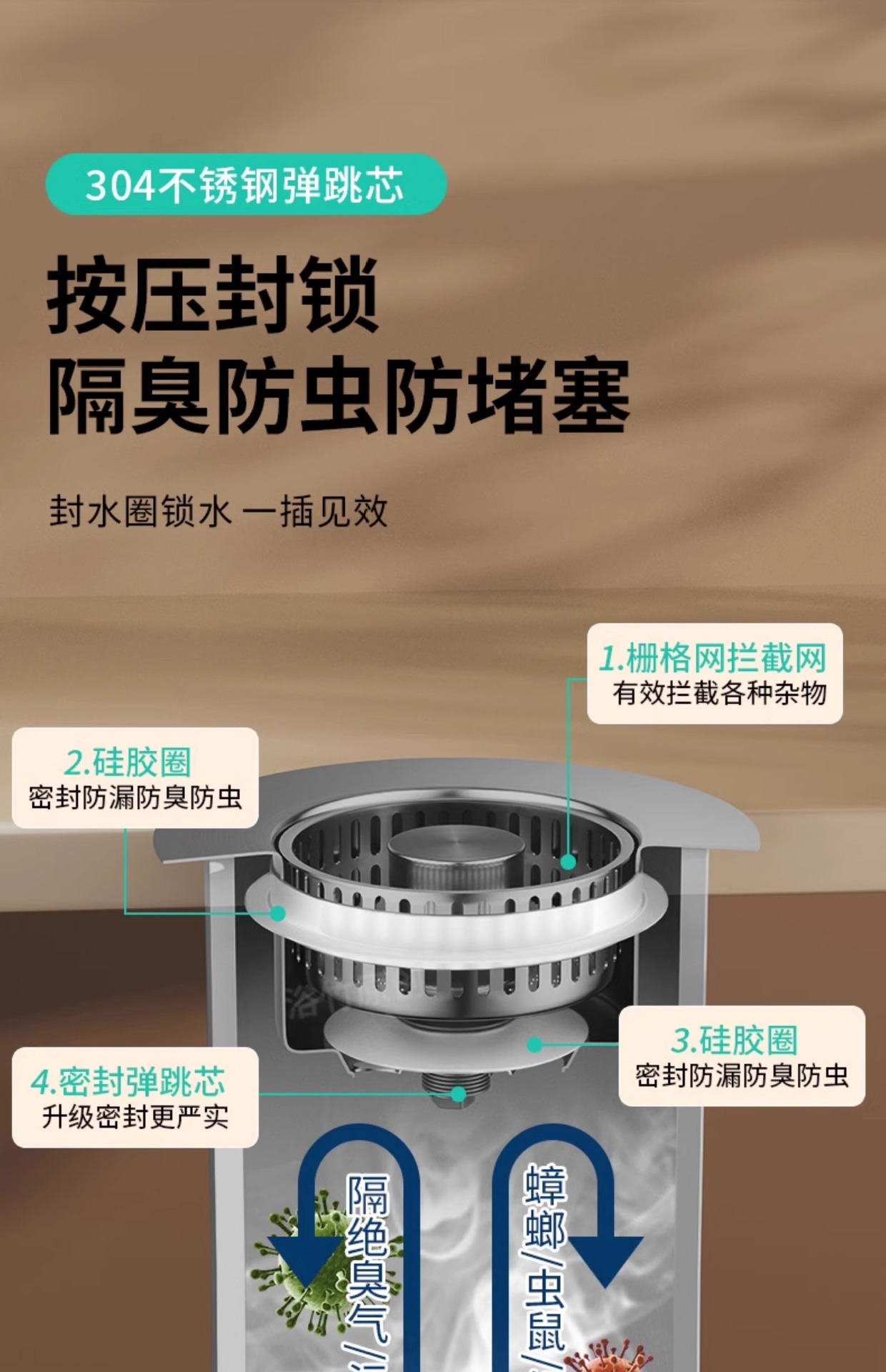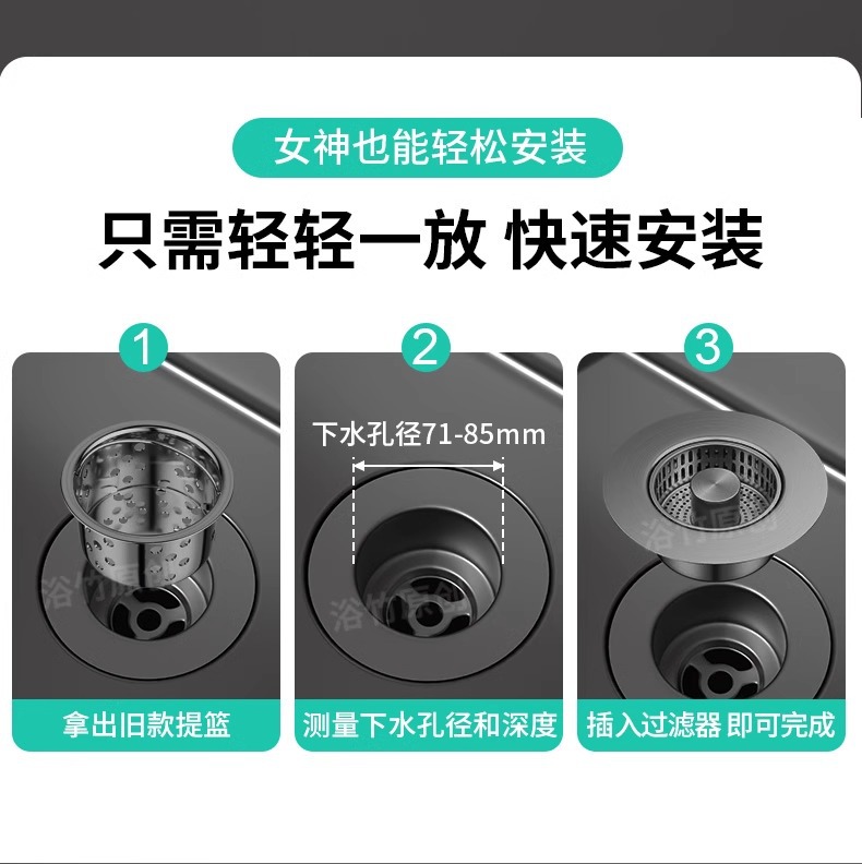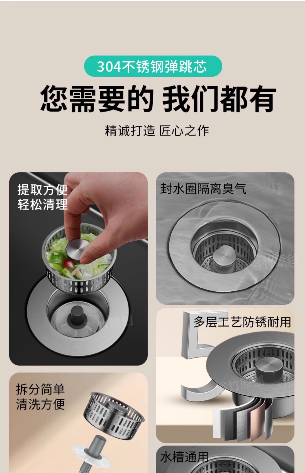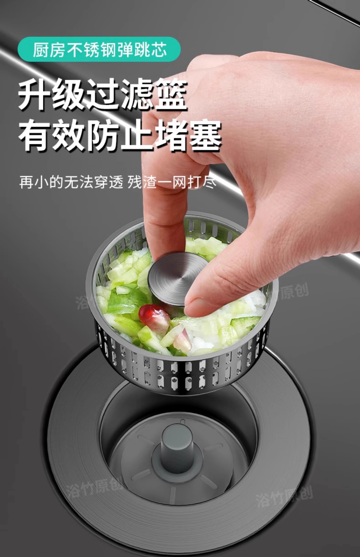 • 건메탈 [업그레이드된 두께의 스테인리스 스틸] 주방 싱크대 팝업 배수구