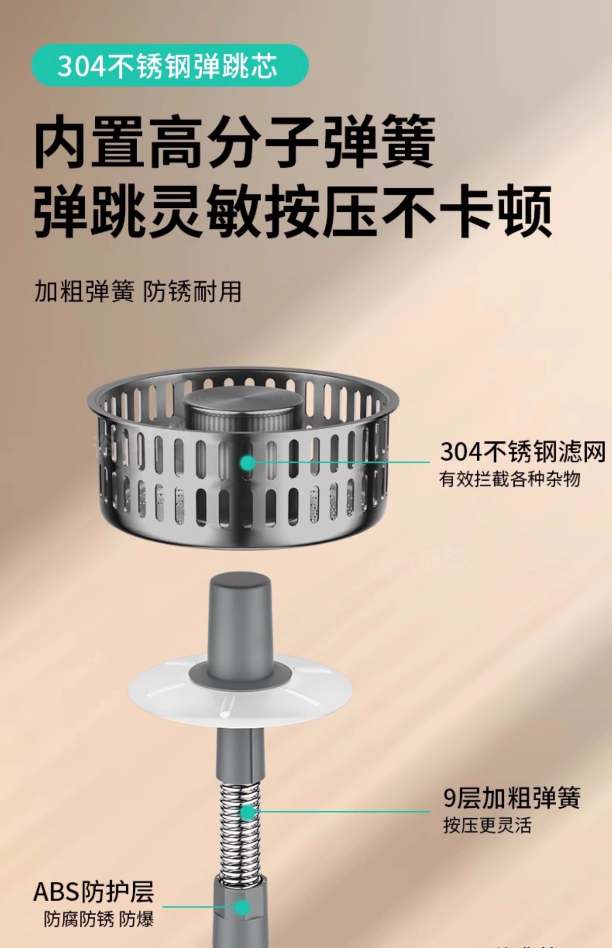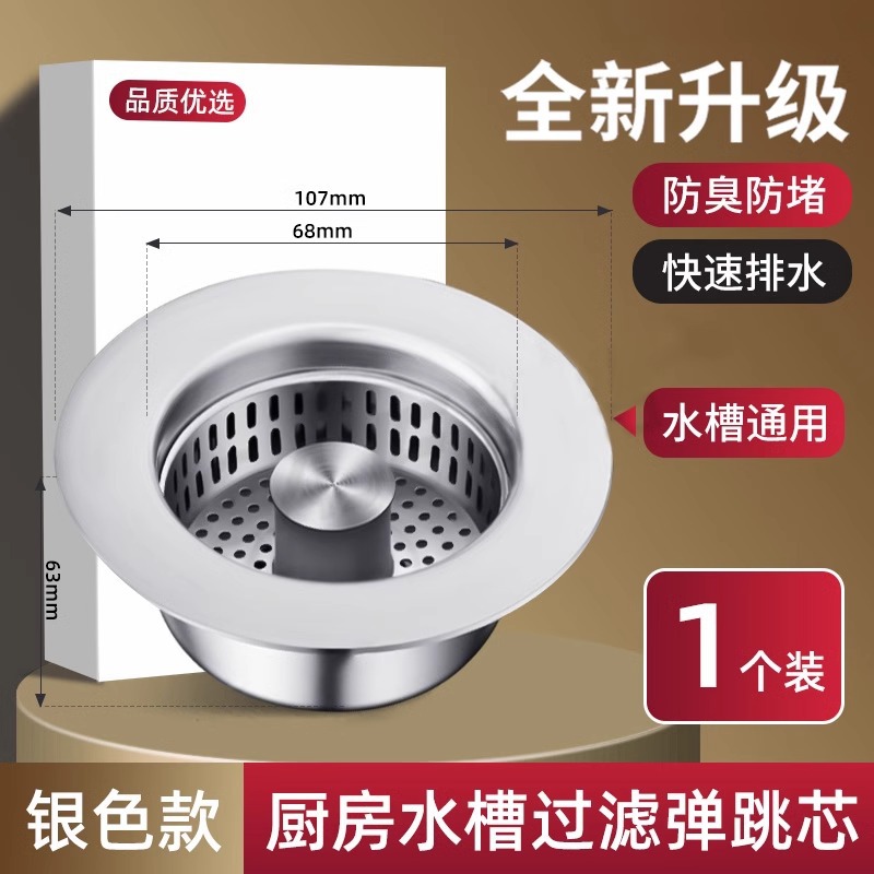 주방 싱크 배수 플러그 필터 스크린 스테인레스 스틸 바운스 코어 필터 싱크 유니버설 접시 분지 배수 플러그