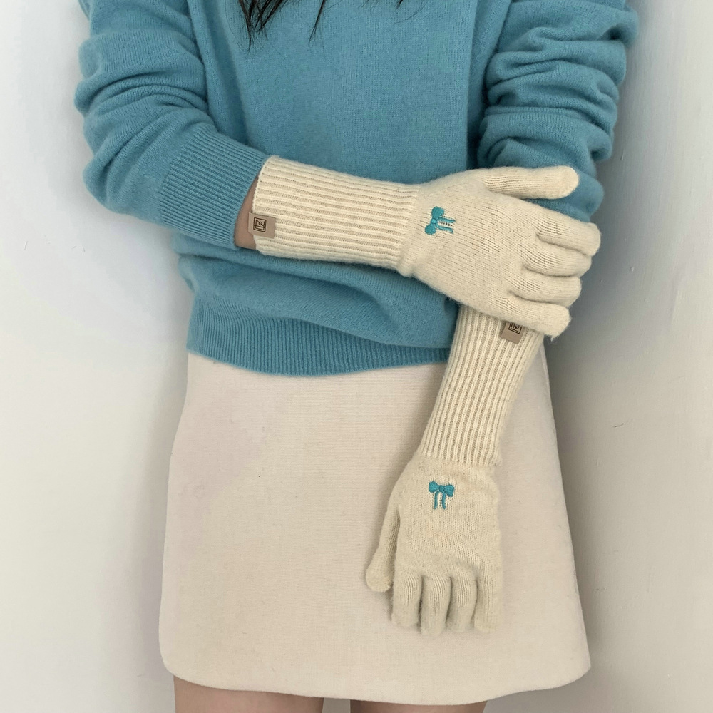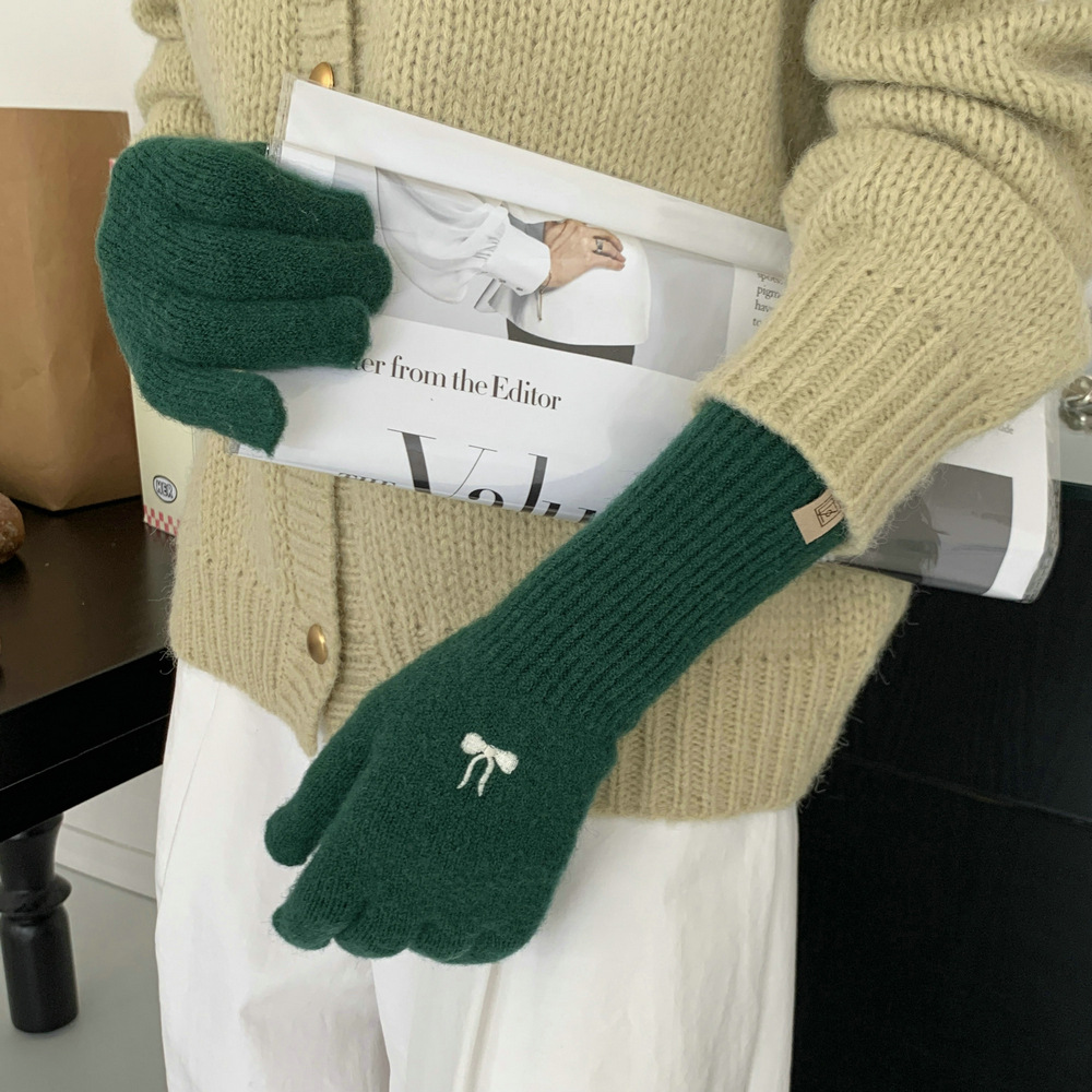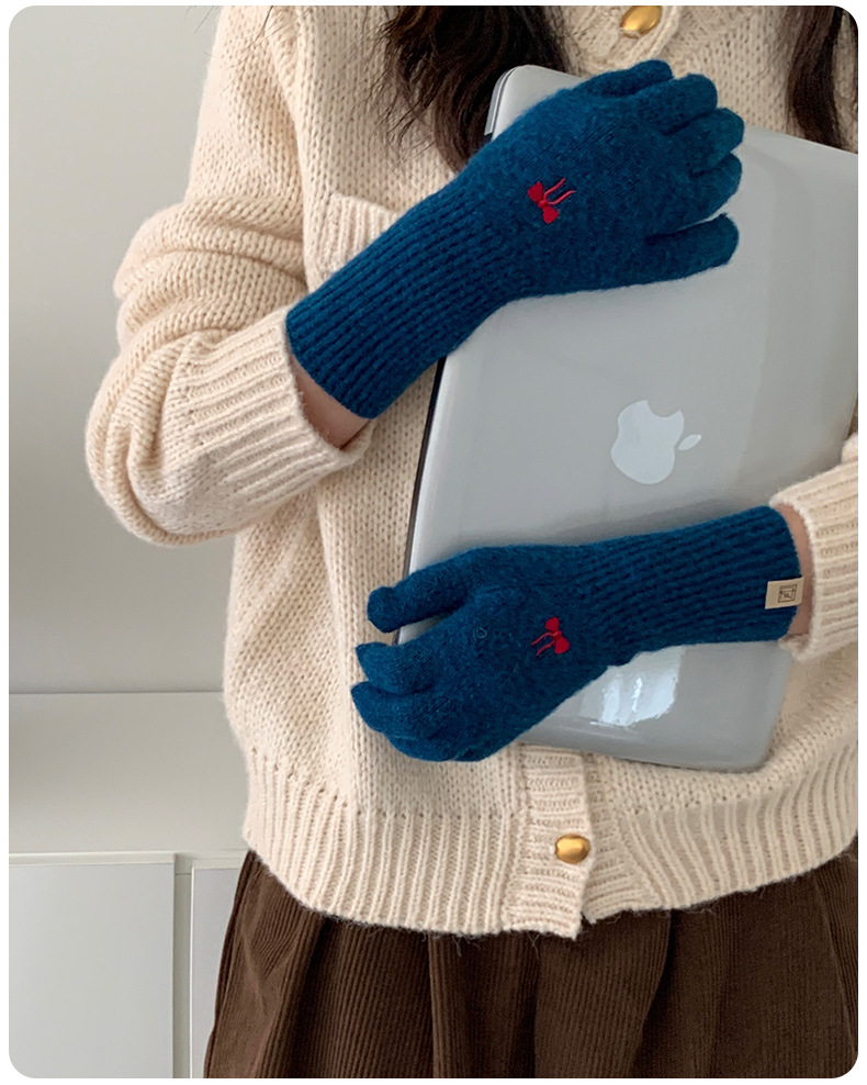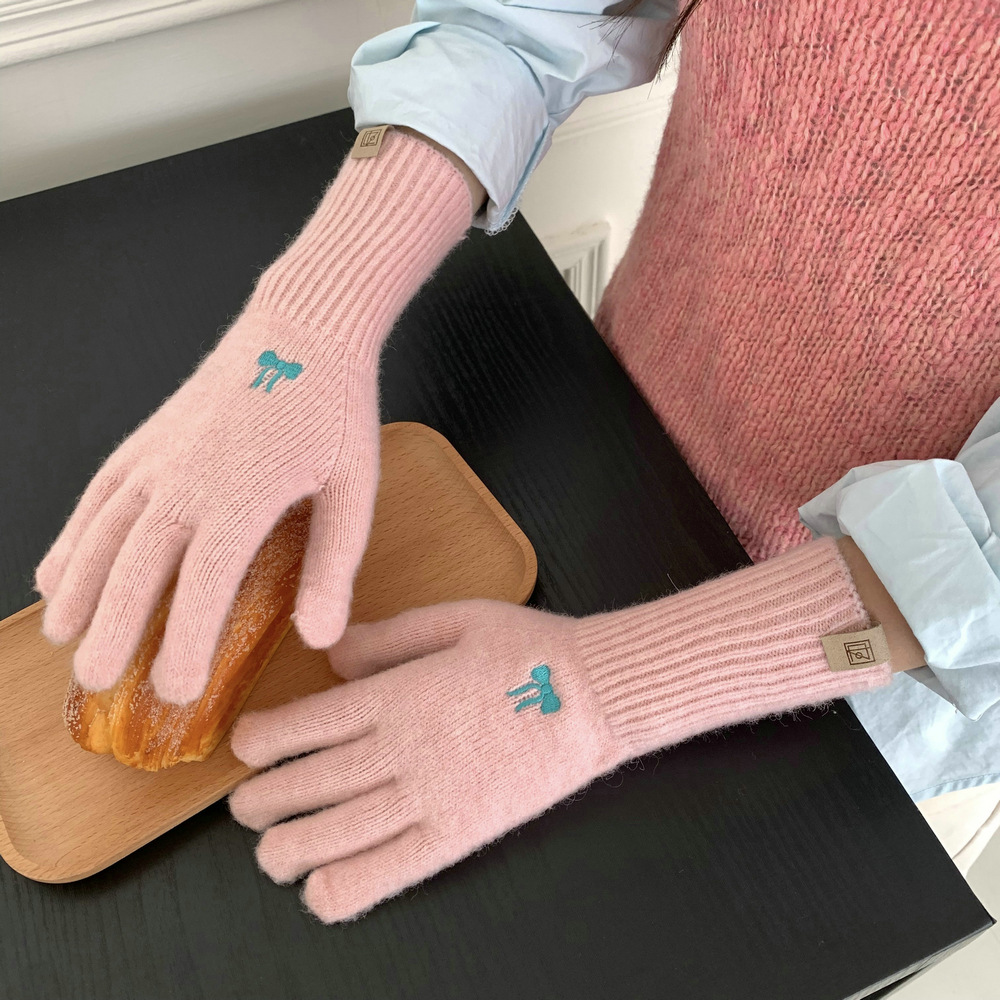 한국식 소녀 레이어드 활 자수 핑크 니트 장갑 가을 · 겨울 학생용 따뜻한 매일 착용