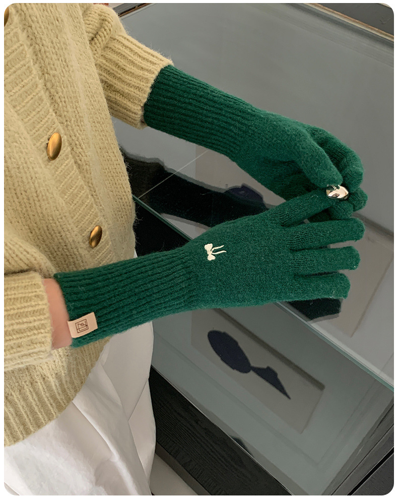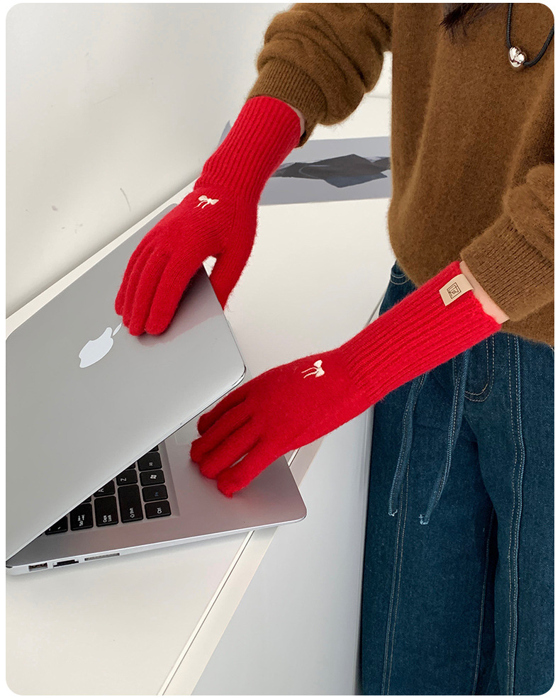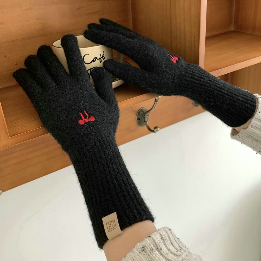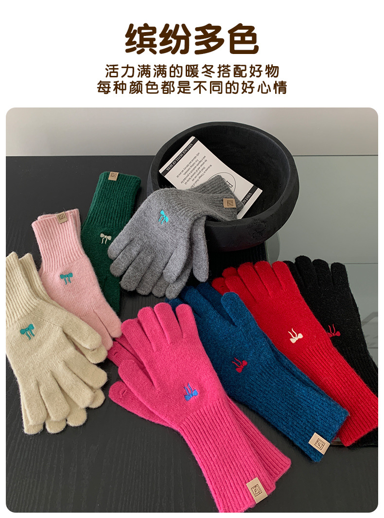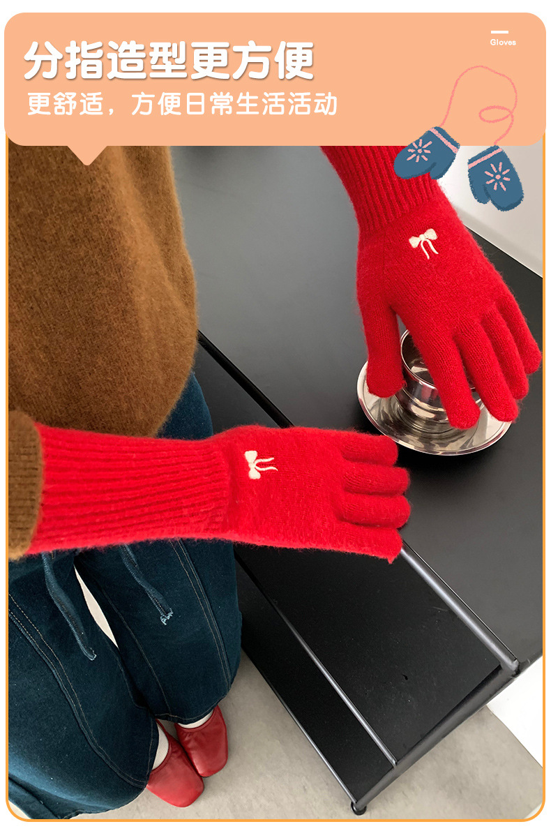한국식 소녀 레이어드 활 자수 핑크 니트 장갑 가을 · 겨울 학생용 따뜻한 매일 착용