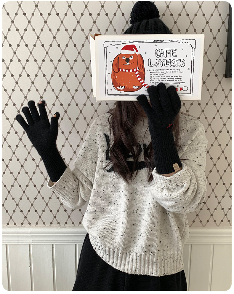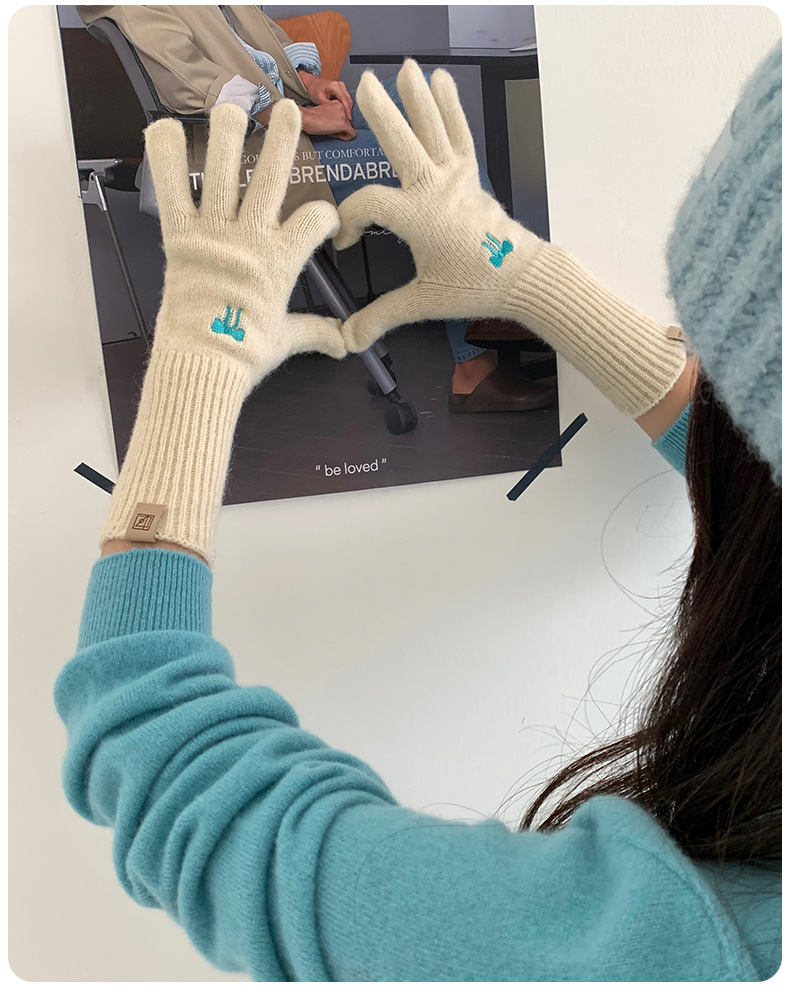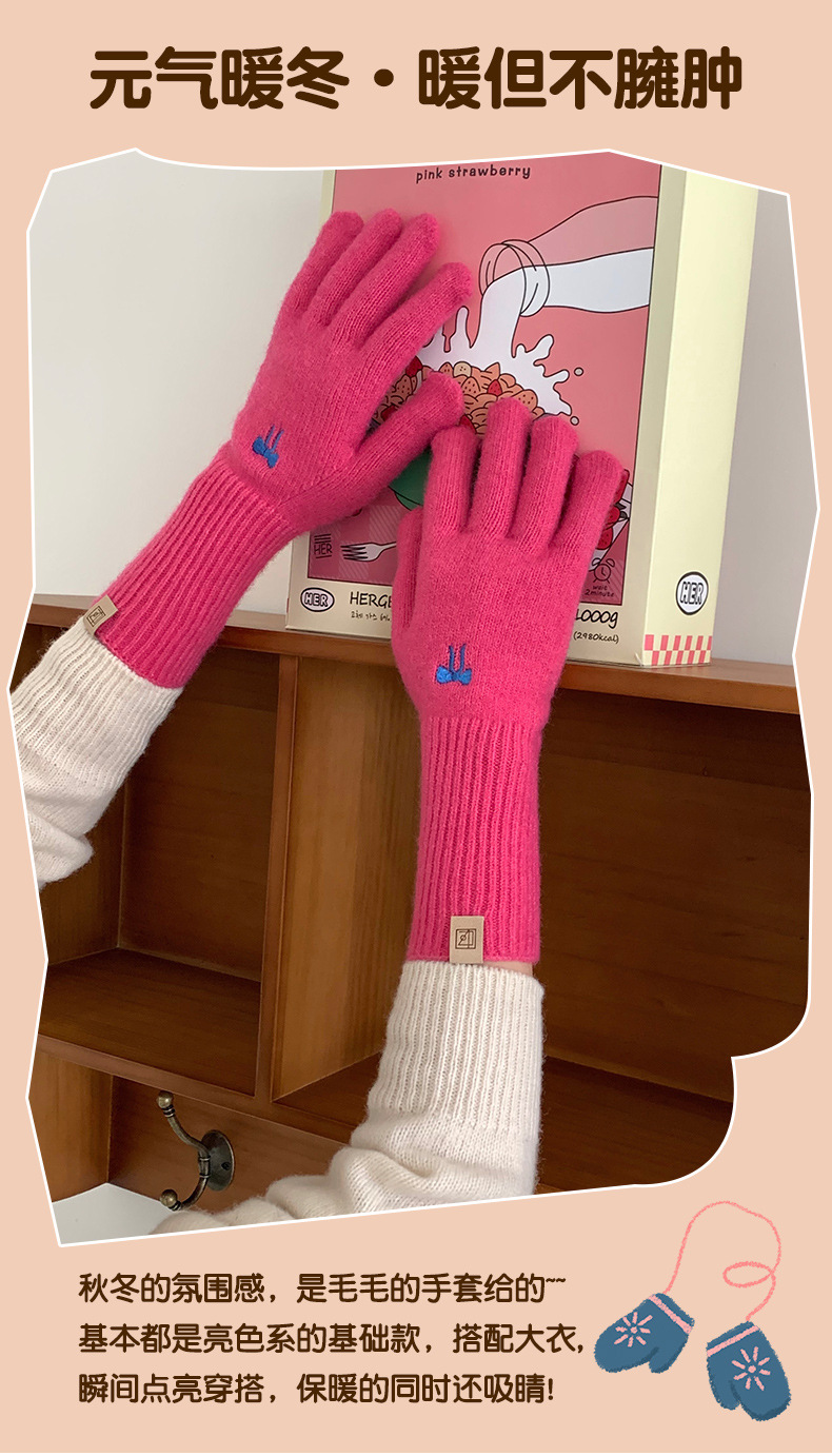 한국식 소녀 레이어드 활 자수 핑크 니트 장갑 가을 · 겨울 학생용 따뜻한 매일 착용스토어 가기
