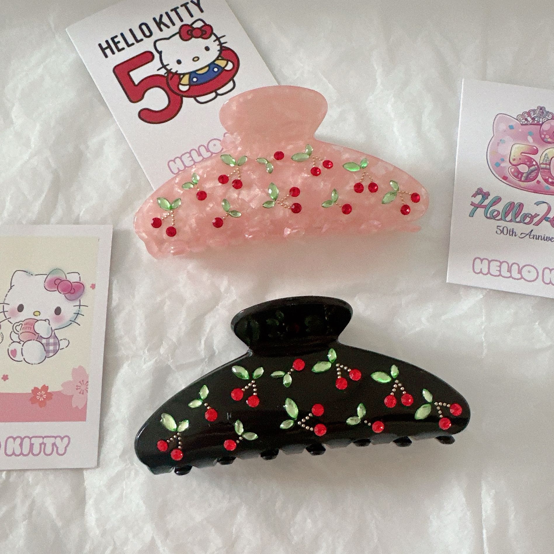 일본과 한국 스타일 체리 Acetic Acid Hairpin Rhinestone 달콤한 우아한 복고풍 빛 럭셔리 헤어 상어 클립 신선한 헤어 액세서리스토어 가기